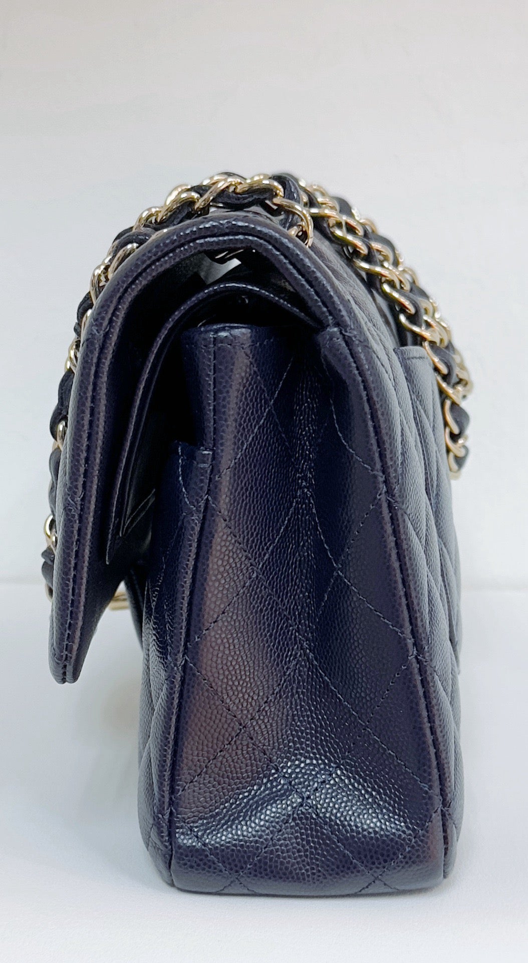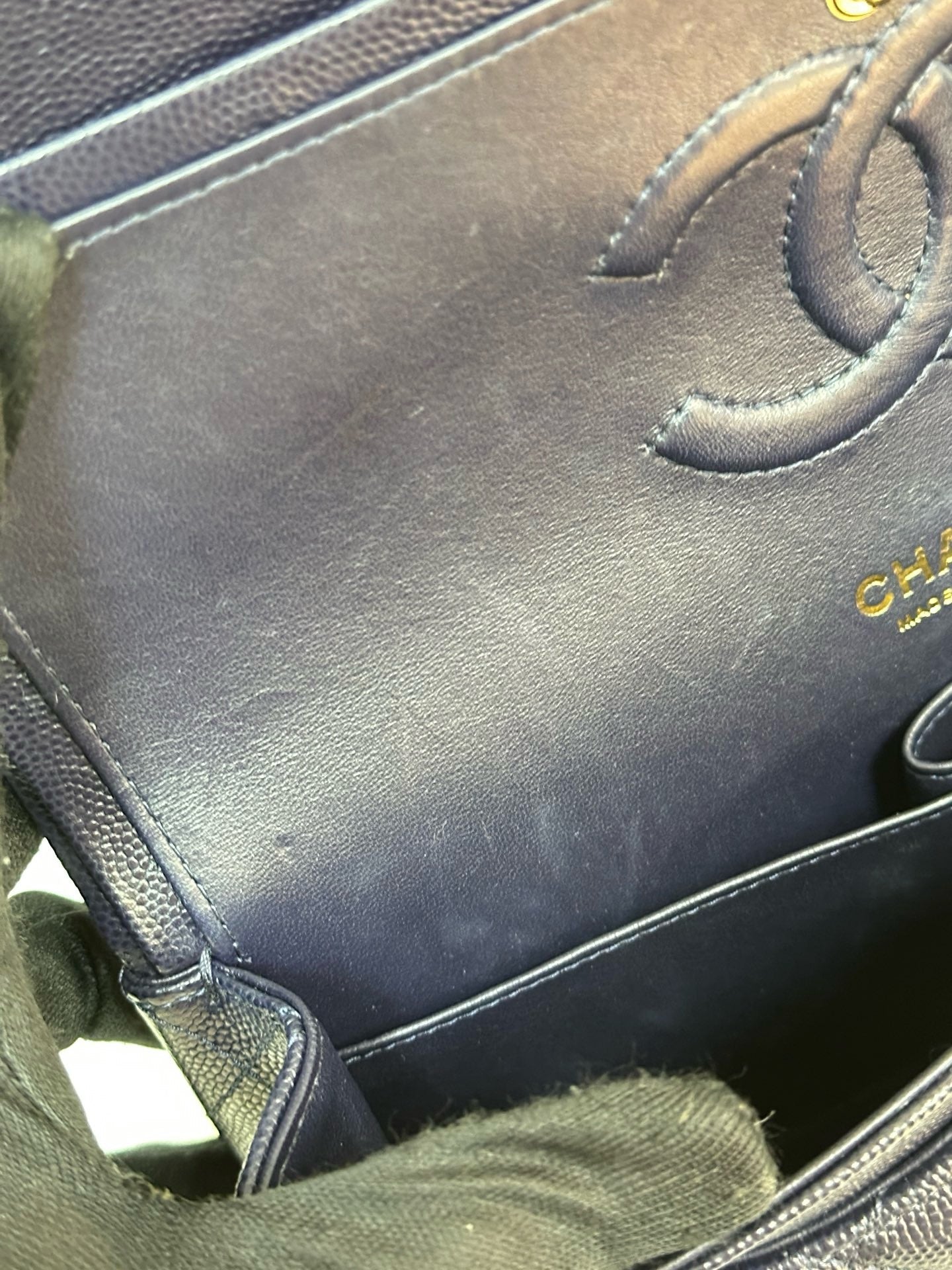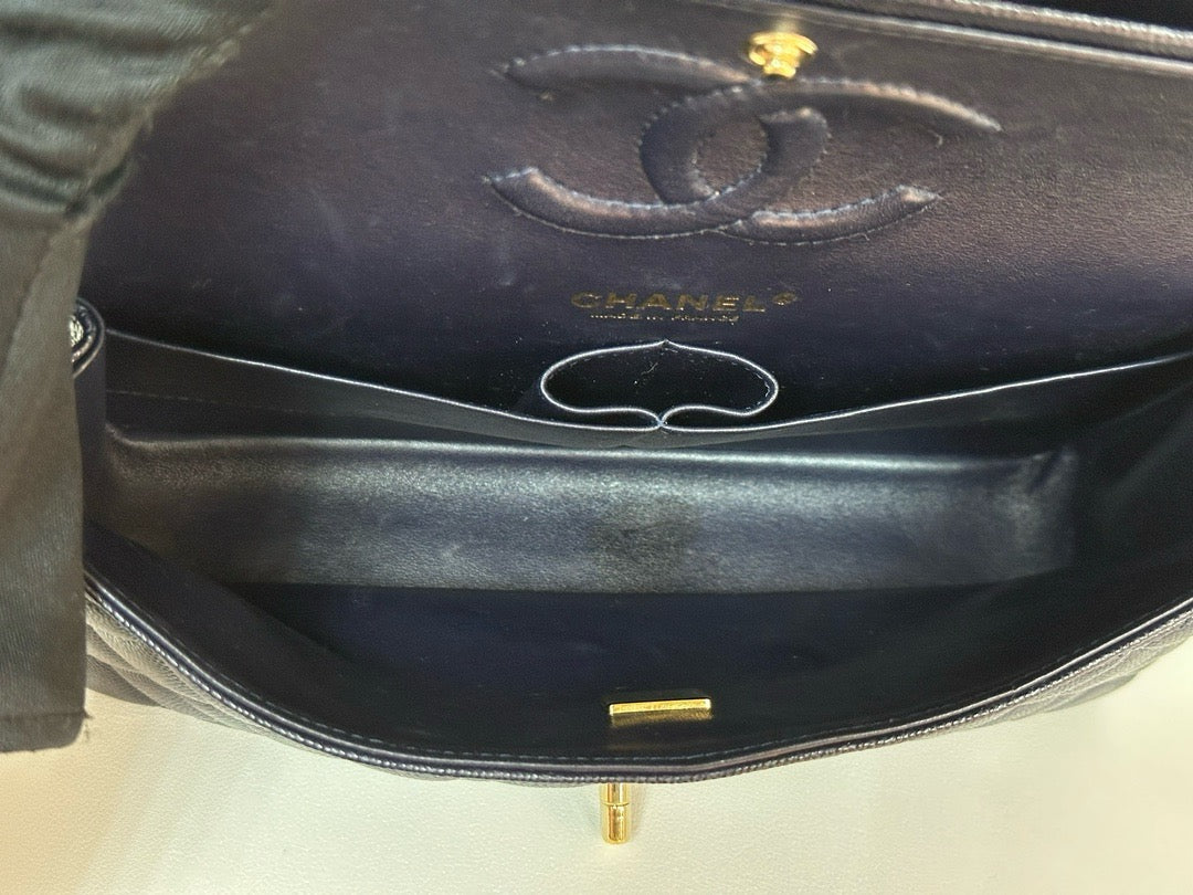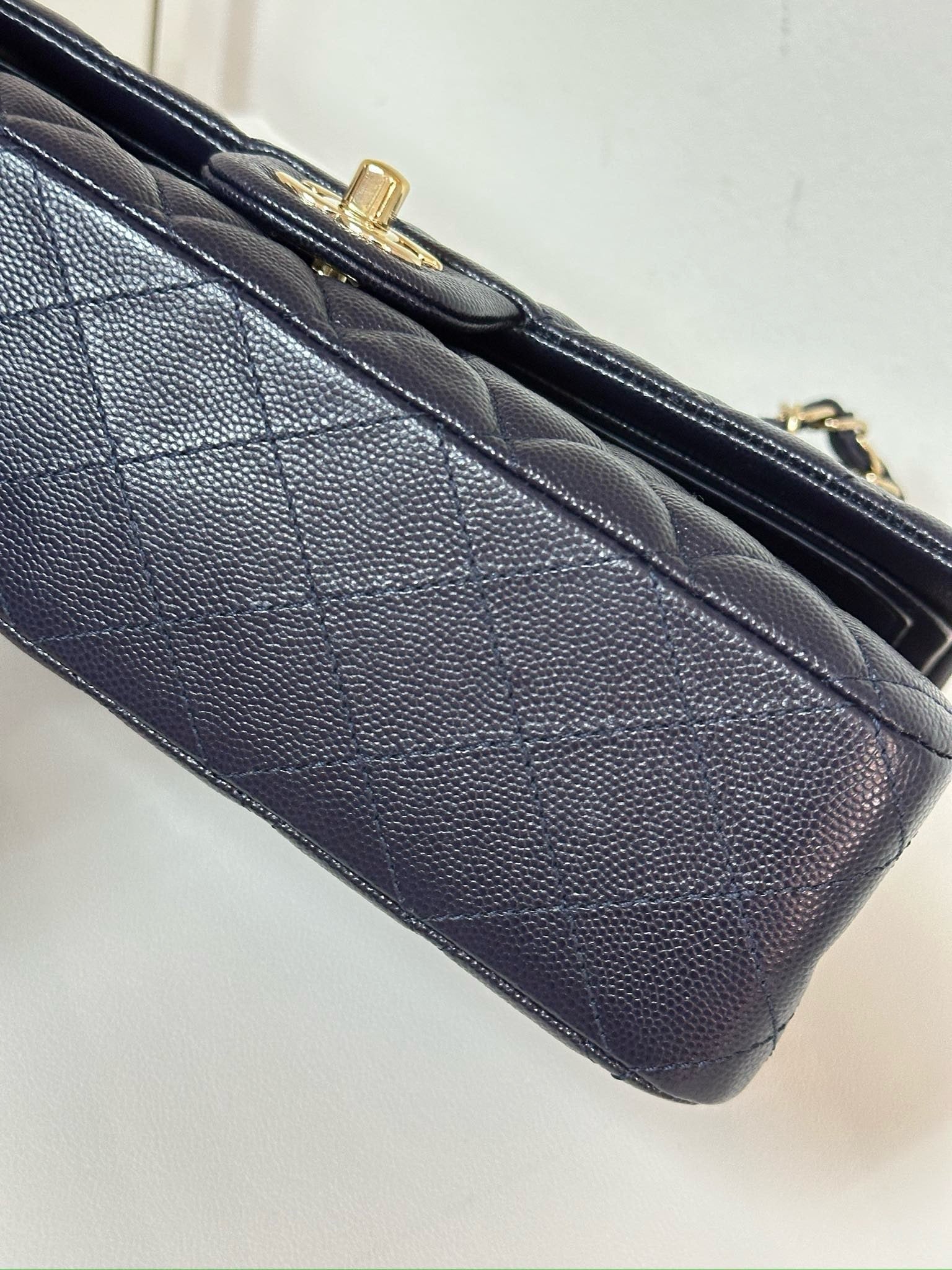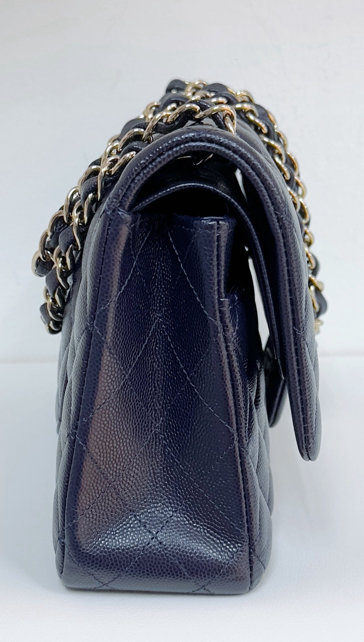 Chanel Medium Classic Caviar Double Flap Navy Blue Bag LSHW 2021year Microchip