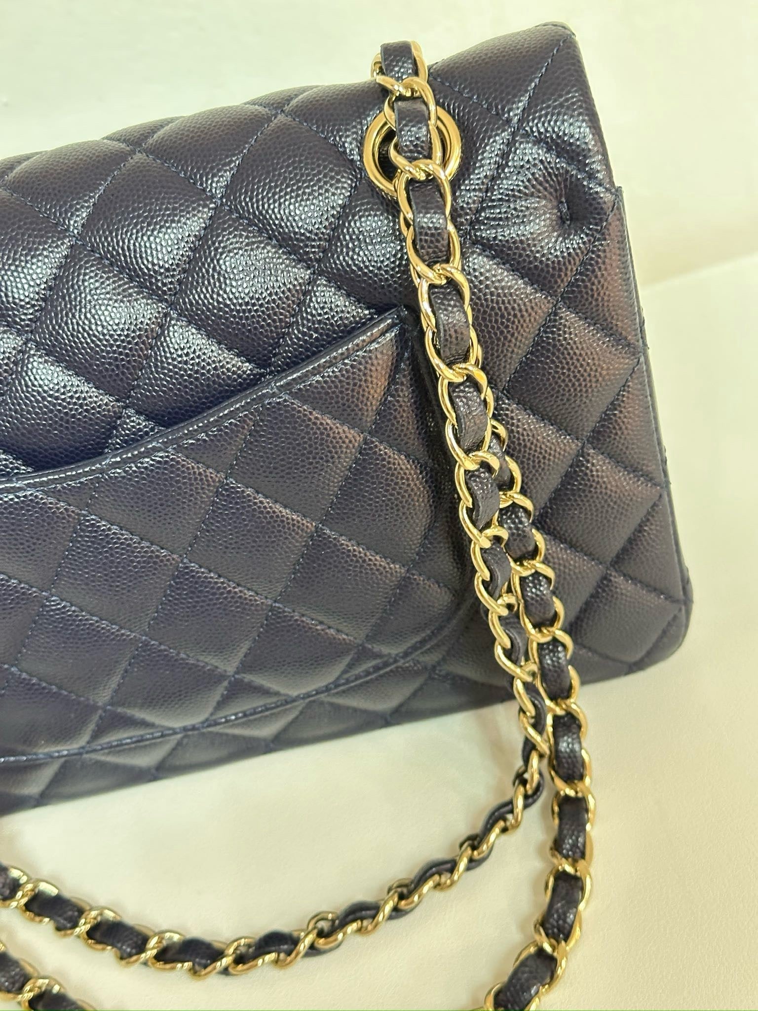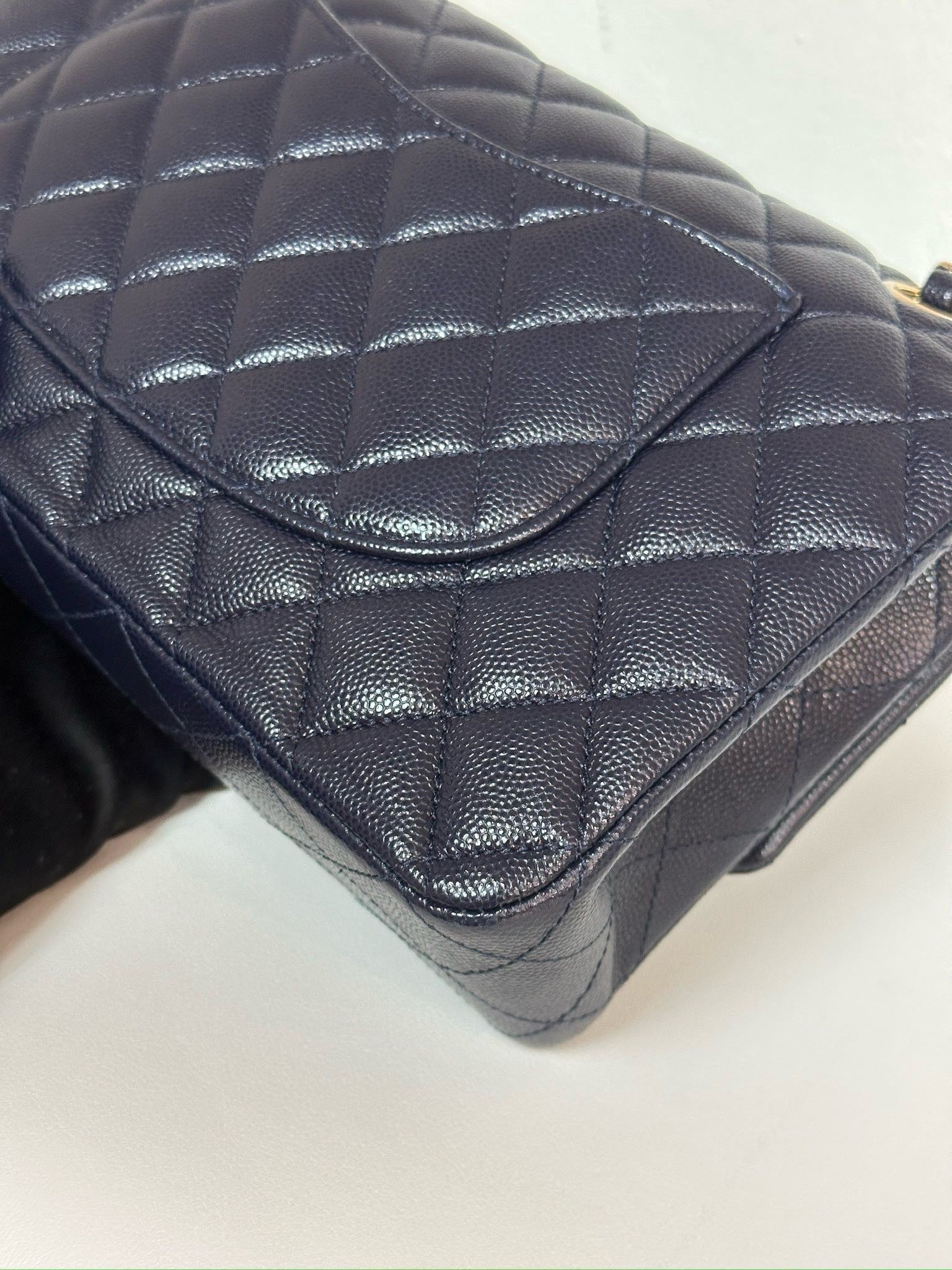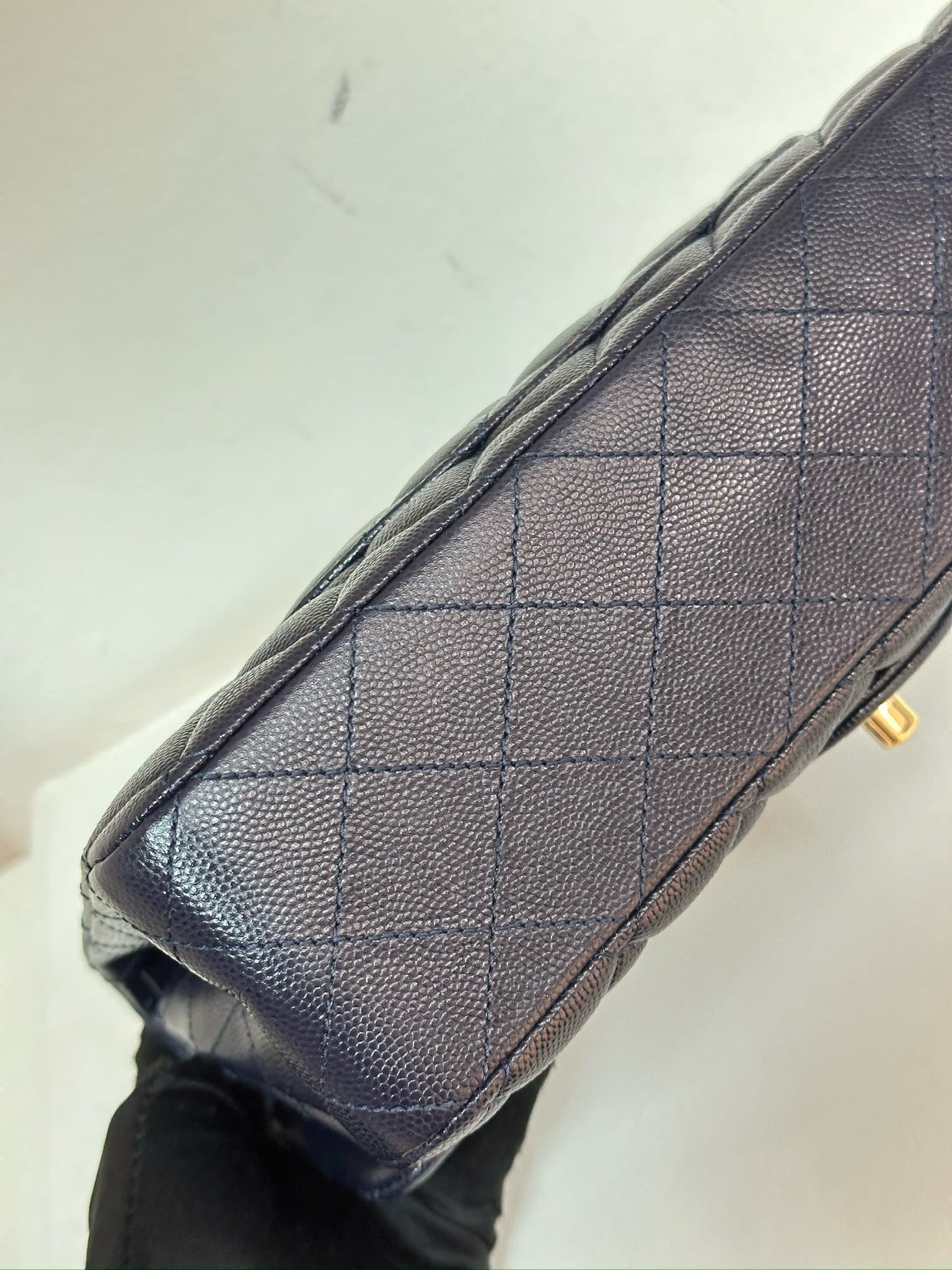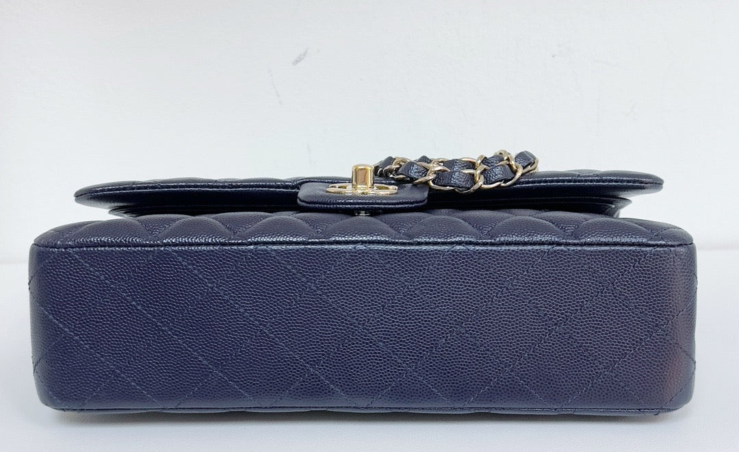 Chanel Medium Classic Caviar Double Flap Navy Blue Bag LSHW 2021year Microchip