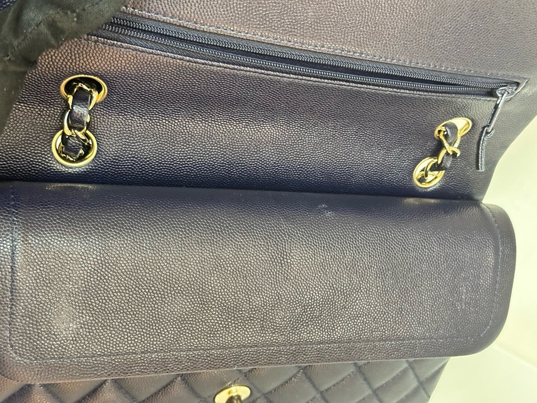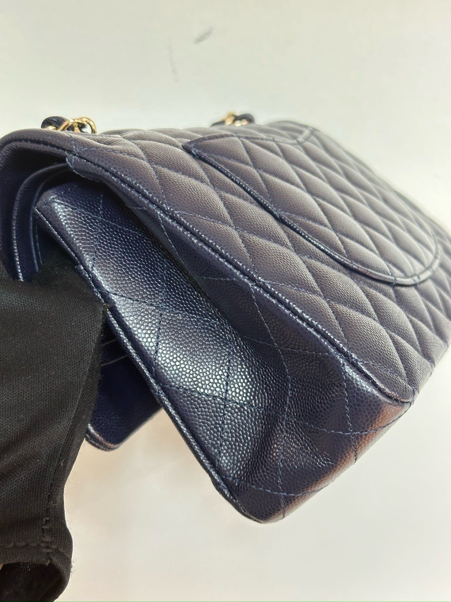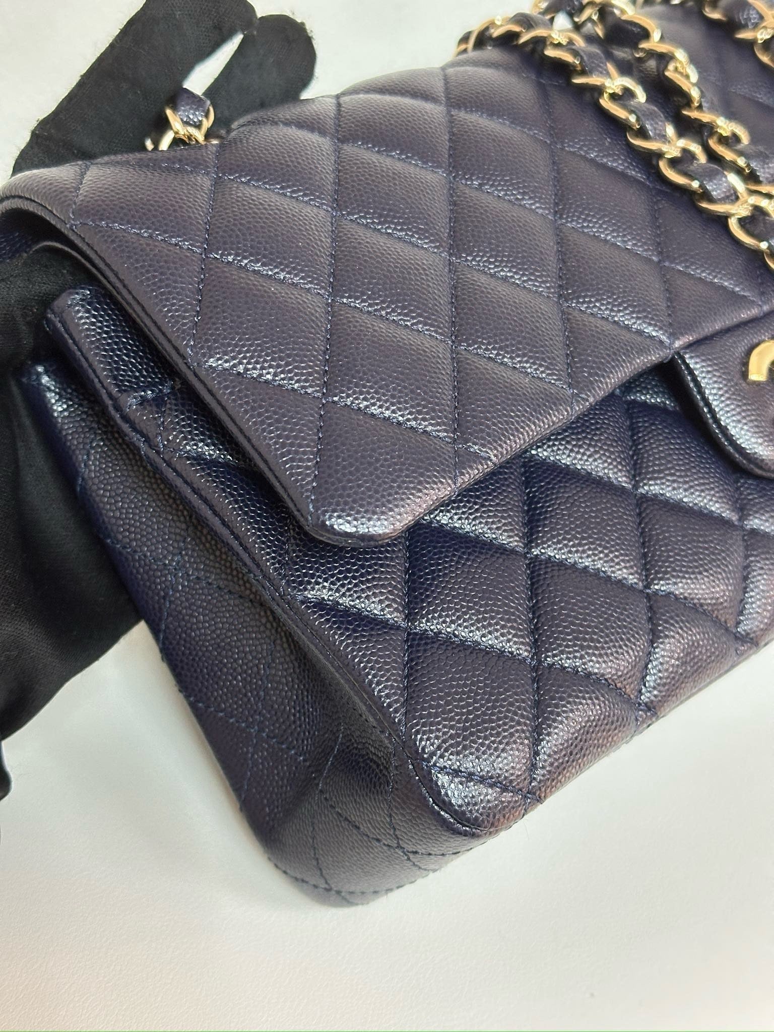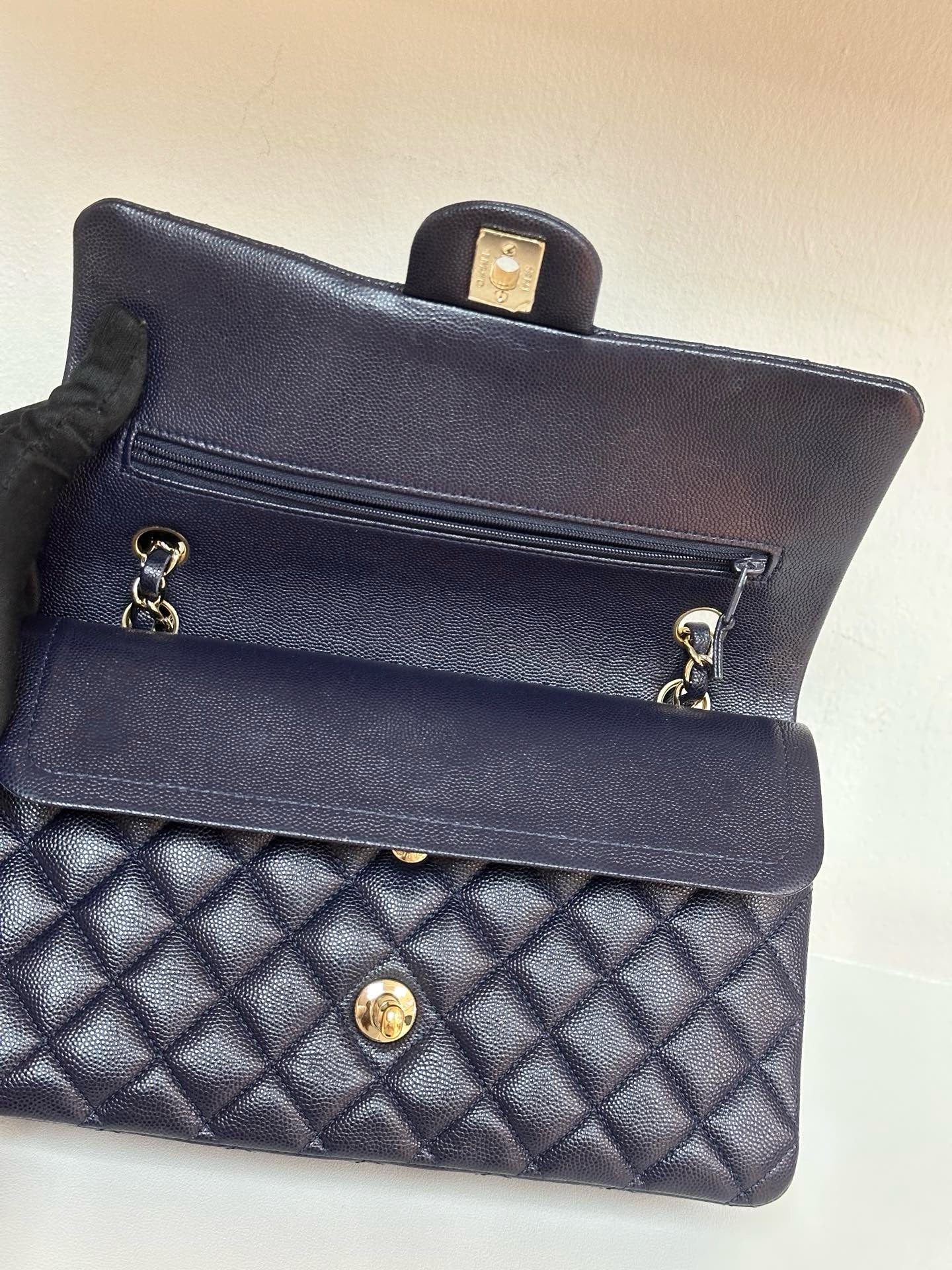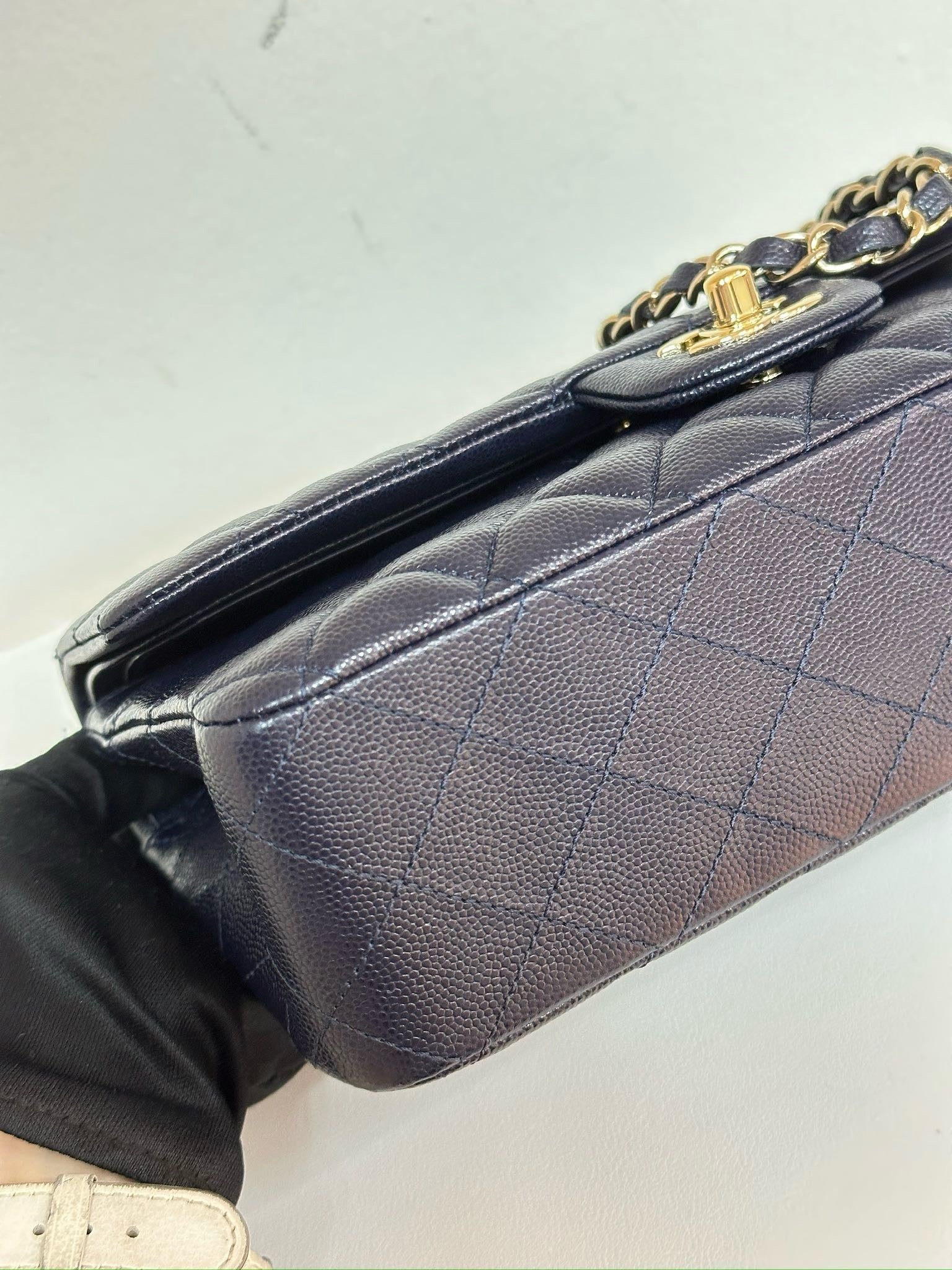 Chanel Medium Classic Caviar Double Flap Navy Blue Bag LSHW 2021year Microchip