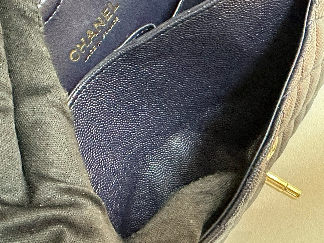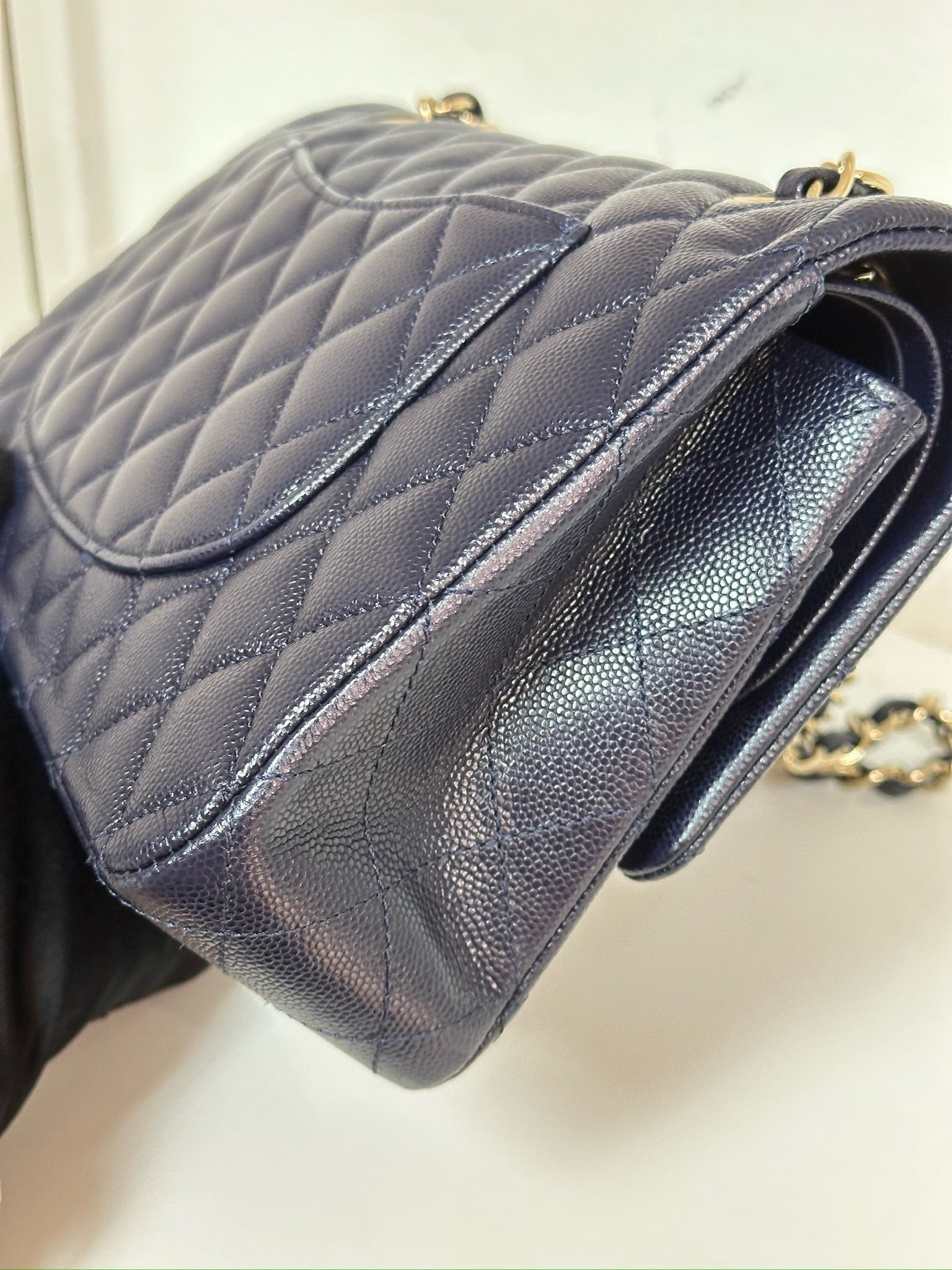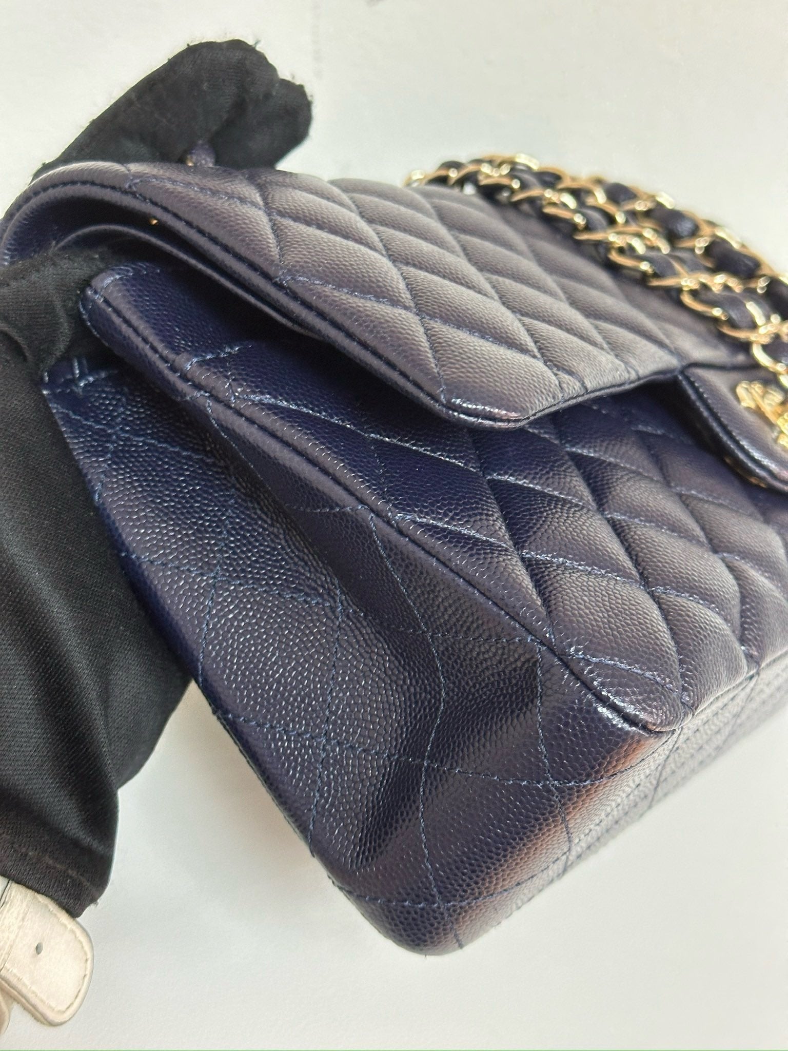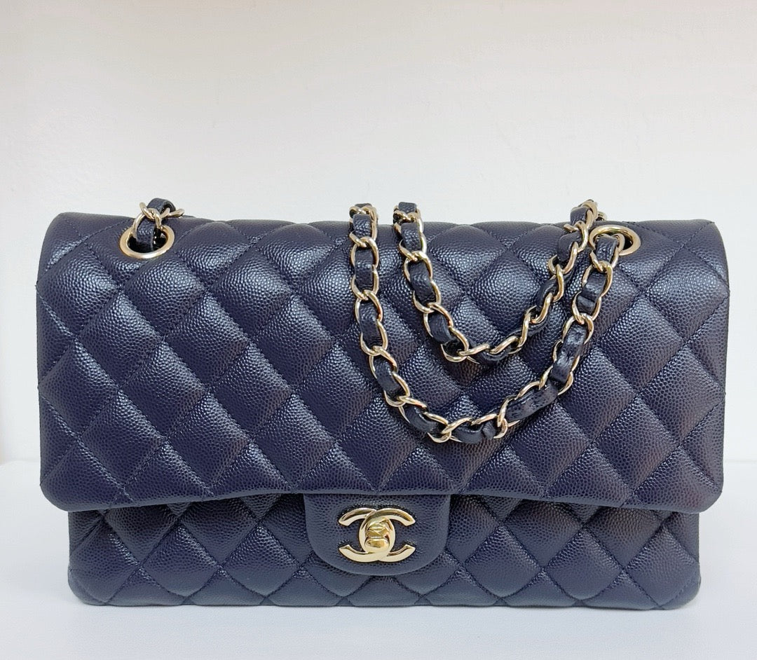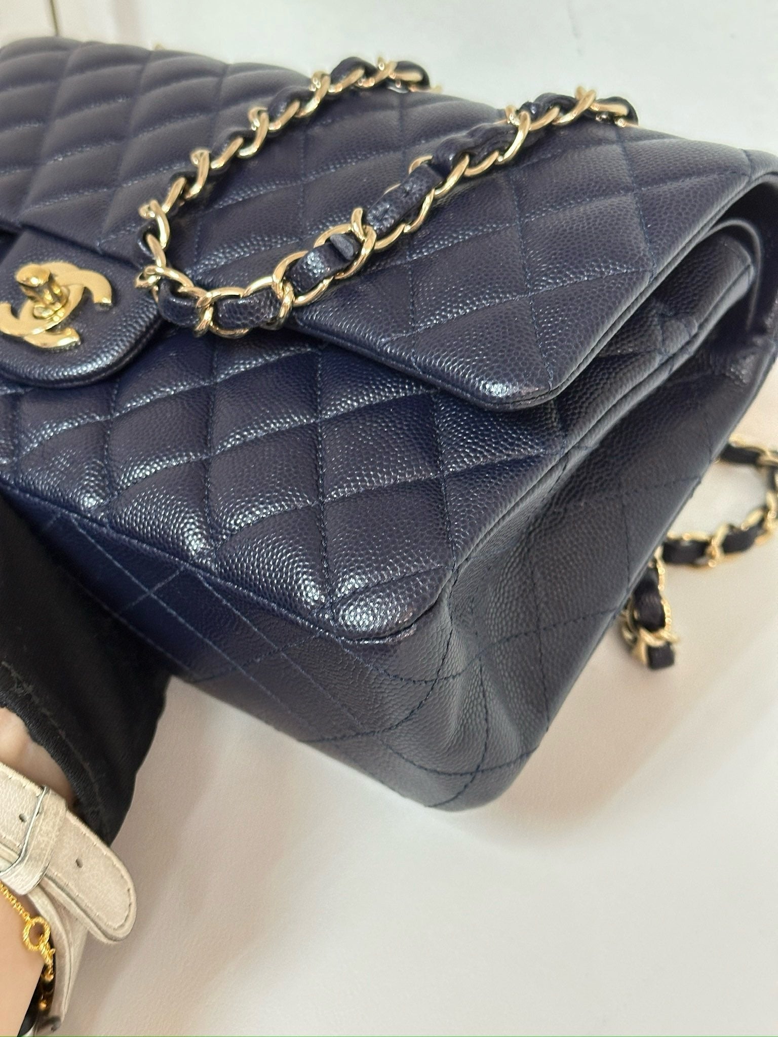Chanel Medium Classic Caviar Double Flap Navy Blue Bag LSHW 2021year Microchip