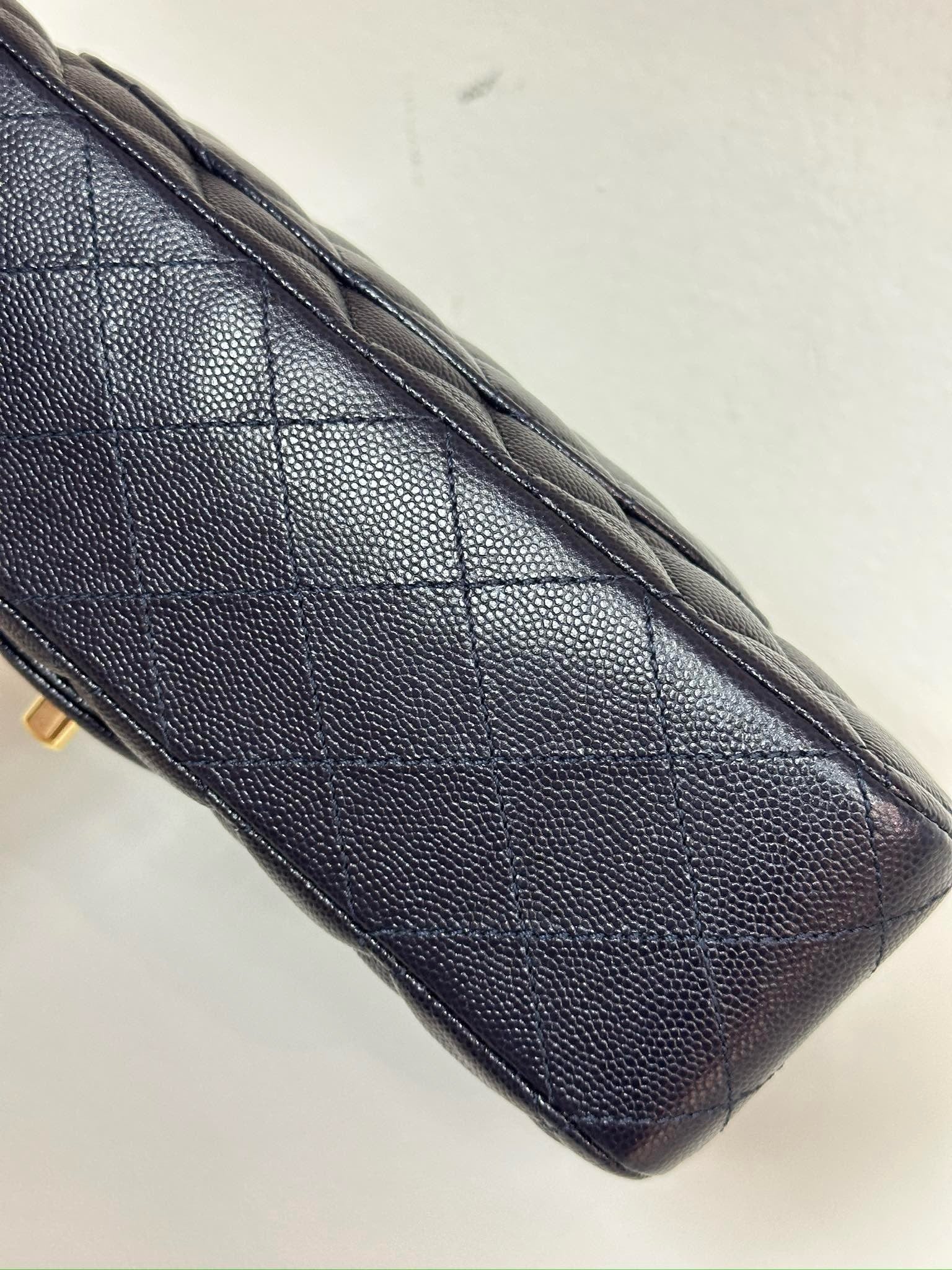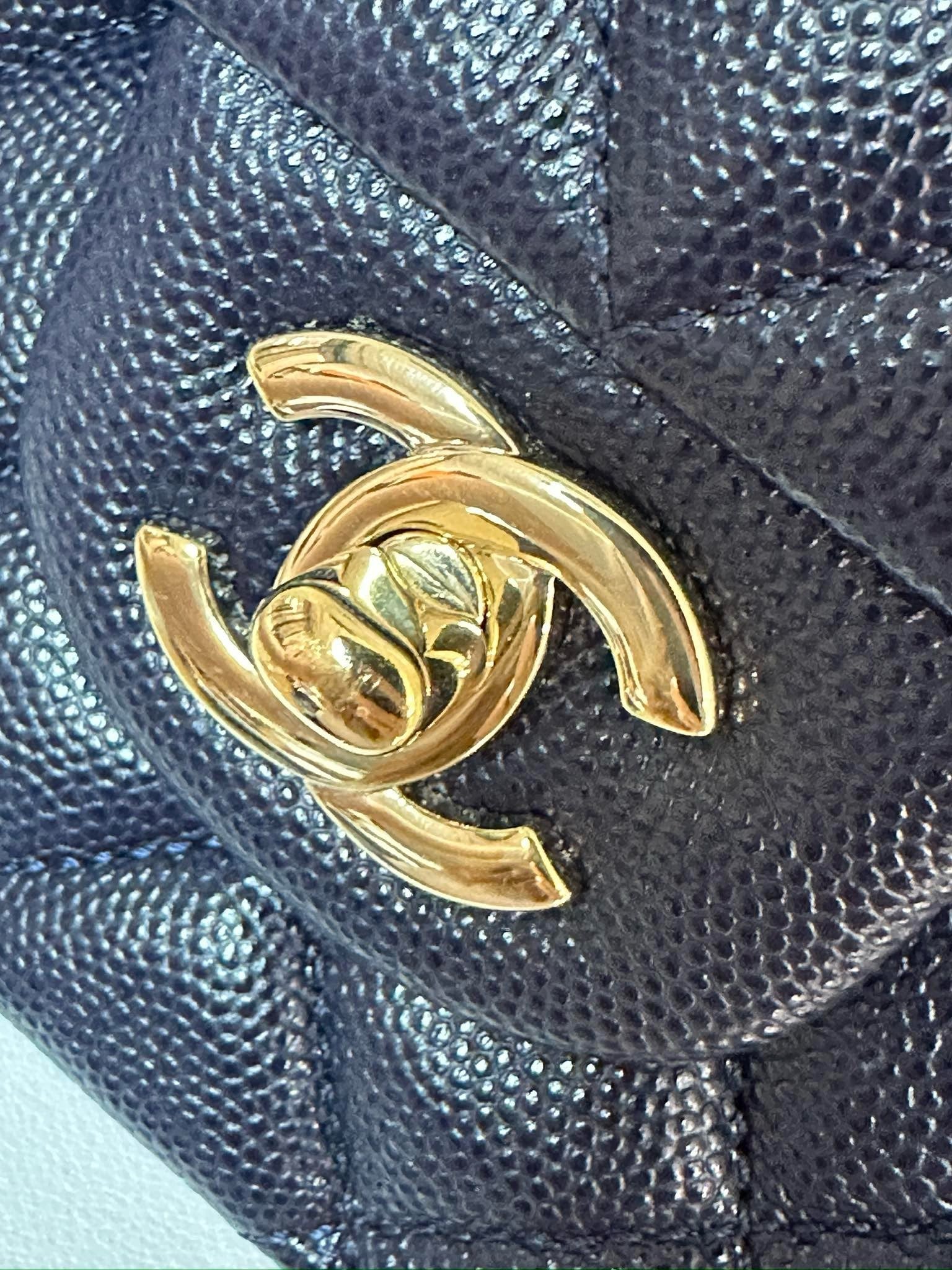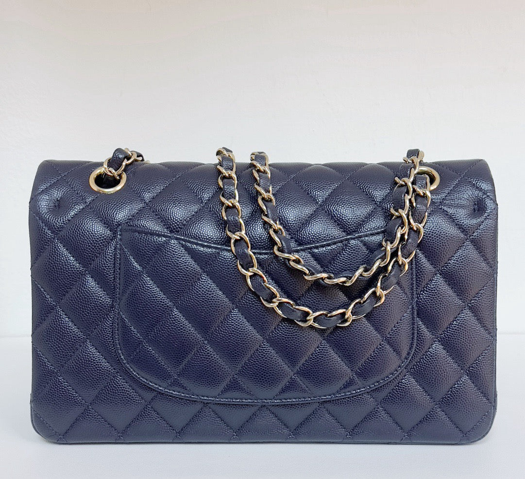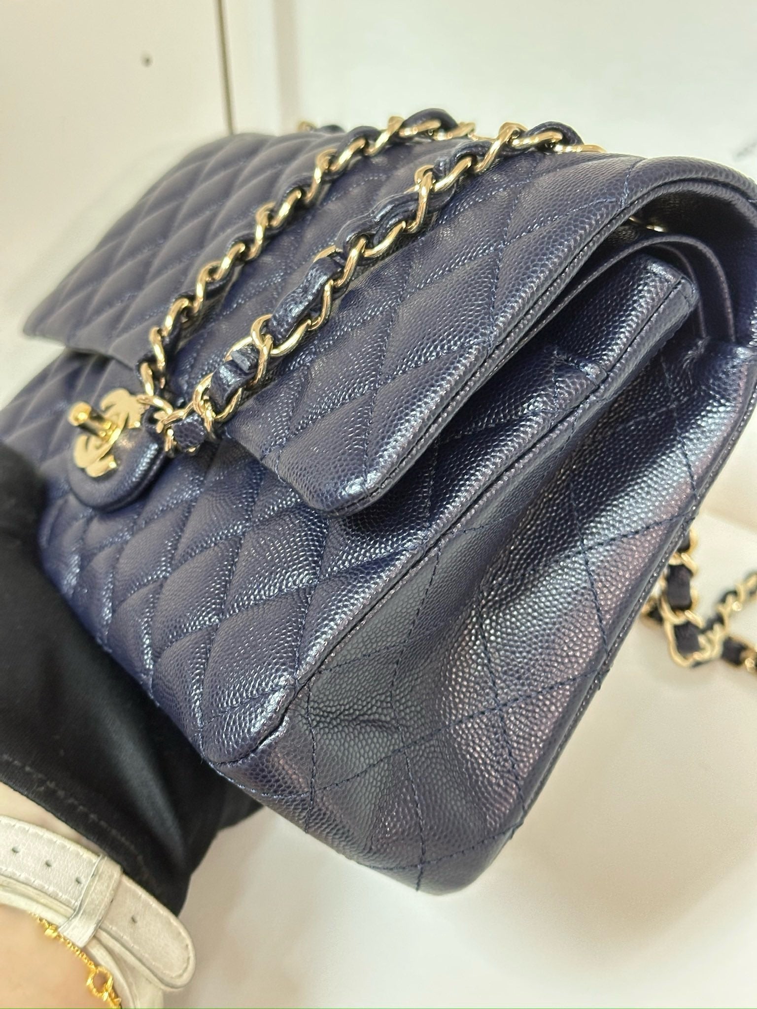 Chanel Medium Classic Caviar Double Flap Navy Blue Bag LSHW 2021year Microchip