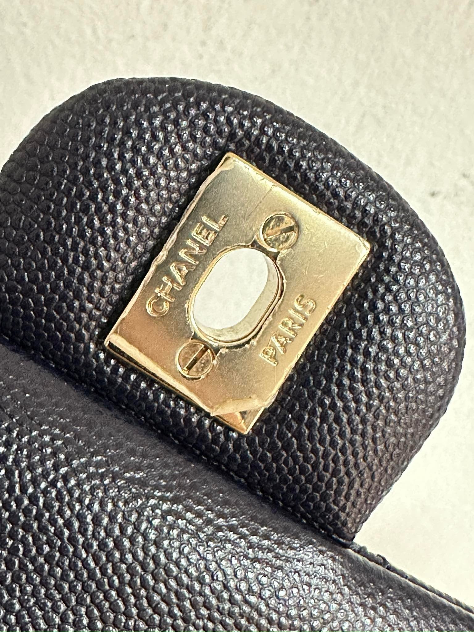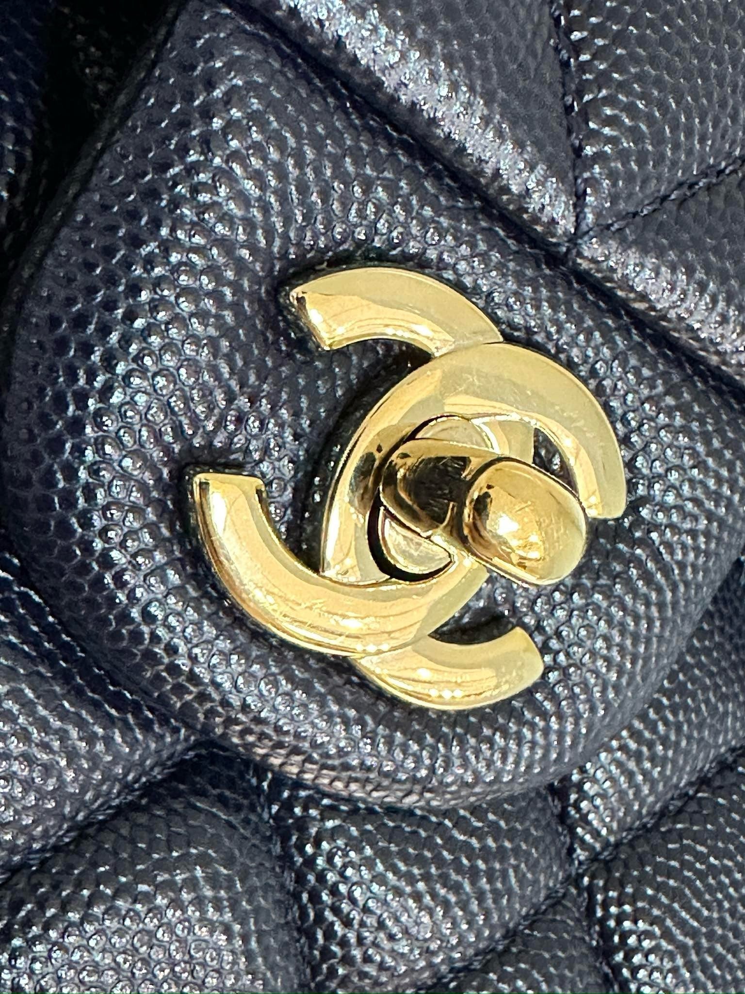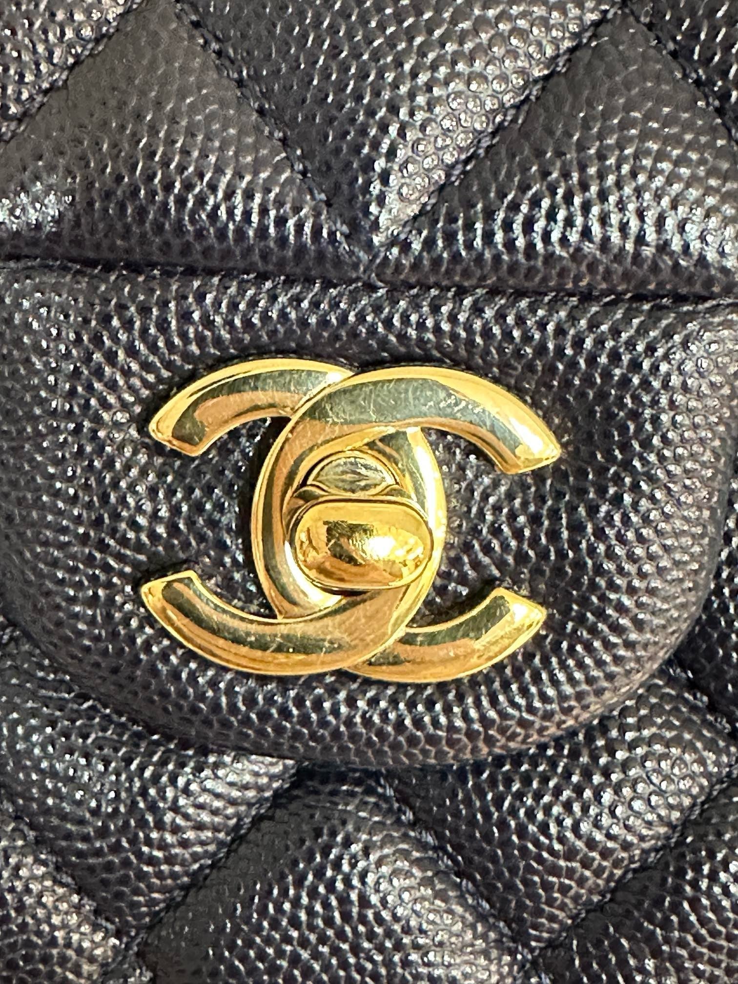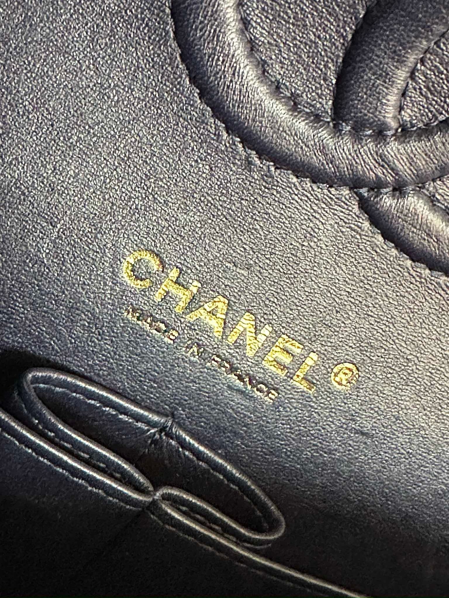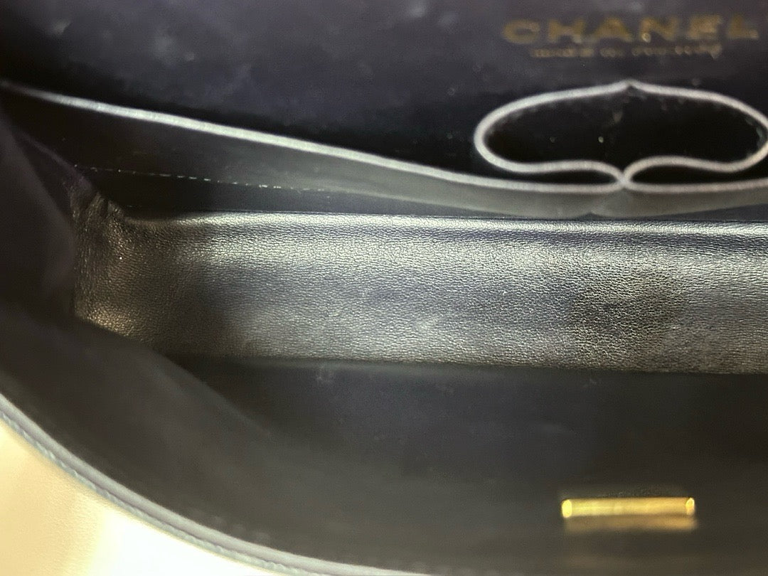 Chanel Medium Classic Caviar Double Flap Navy Blue Bag LSHW 2021year Microchip