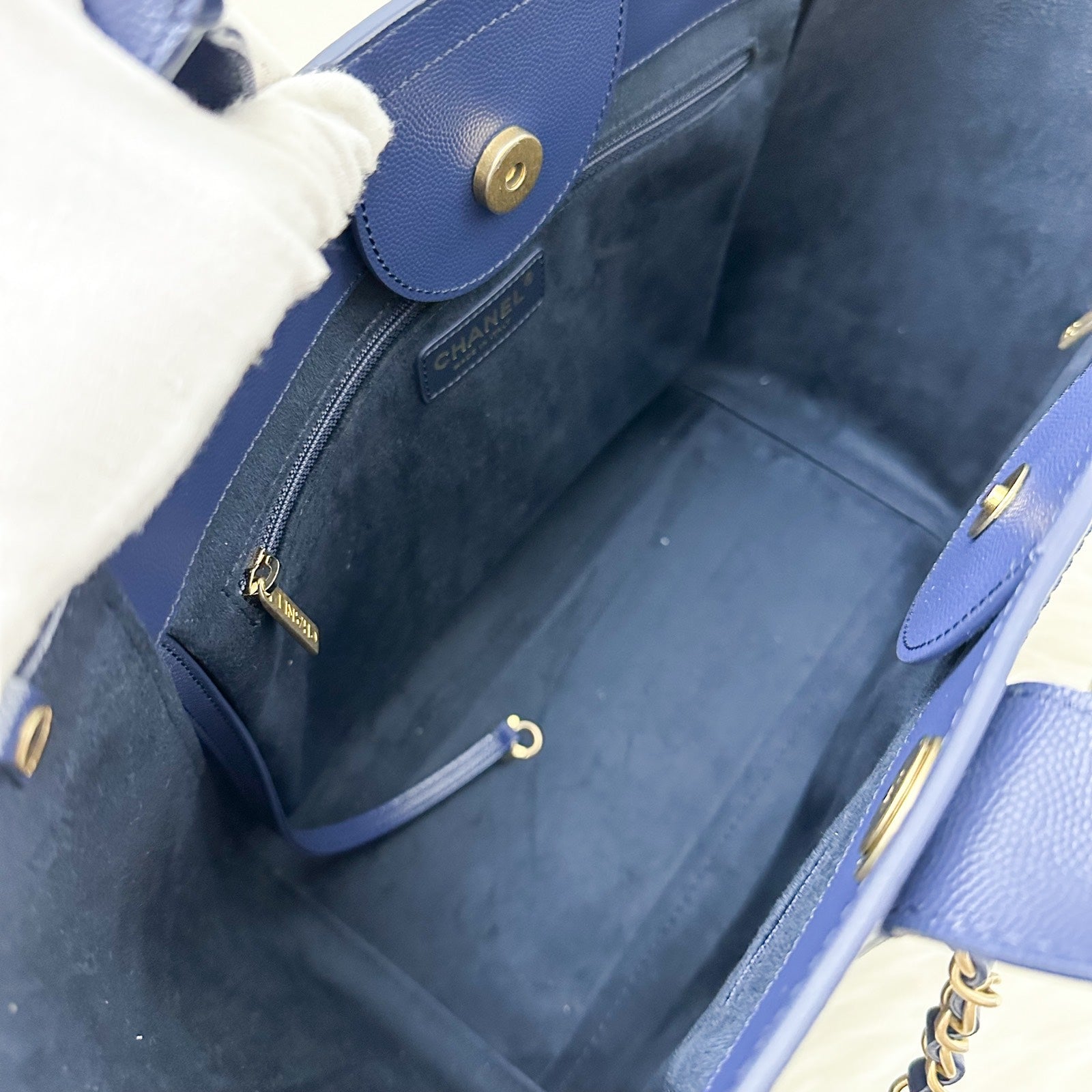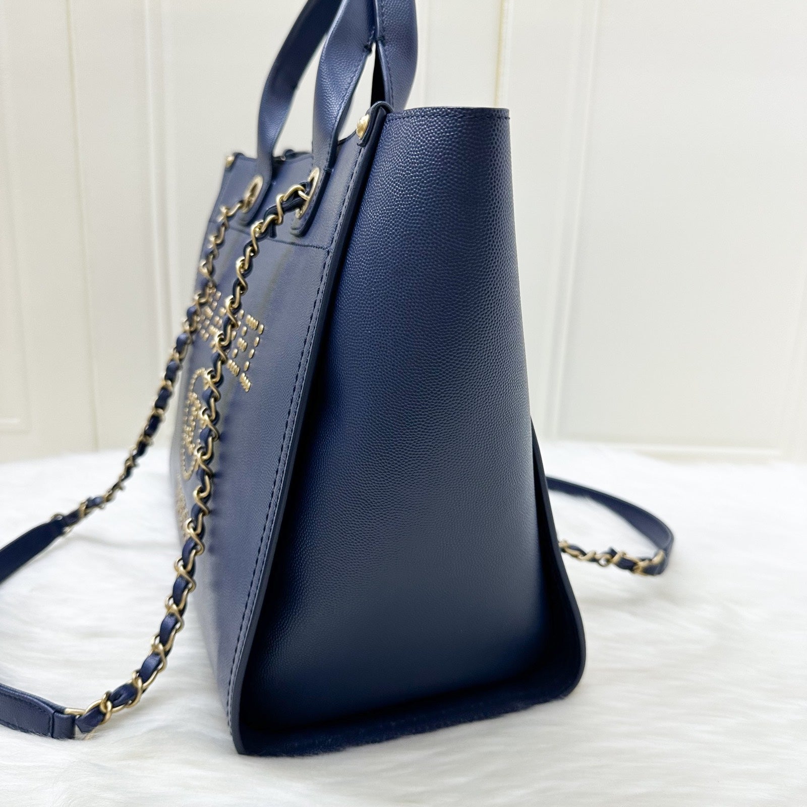 Chanel Small / Medium Deauville Tote in Navy Caviar and AGHW