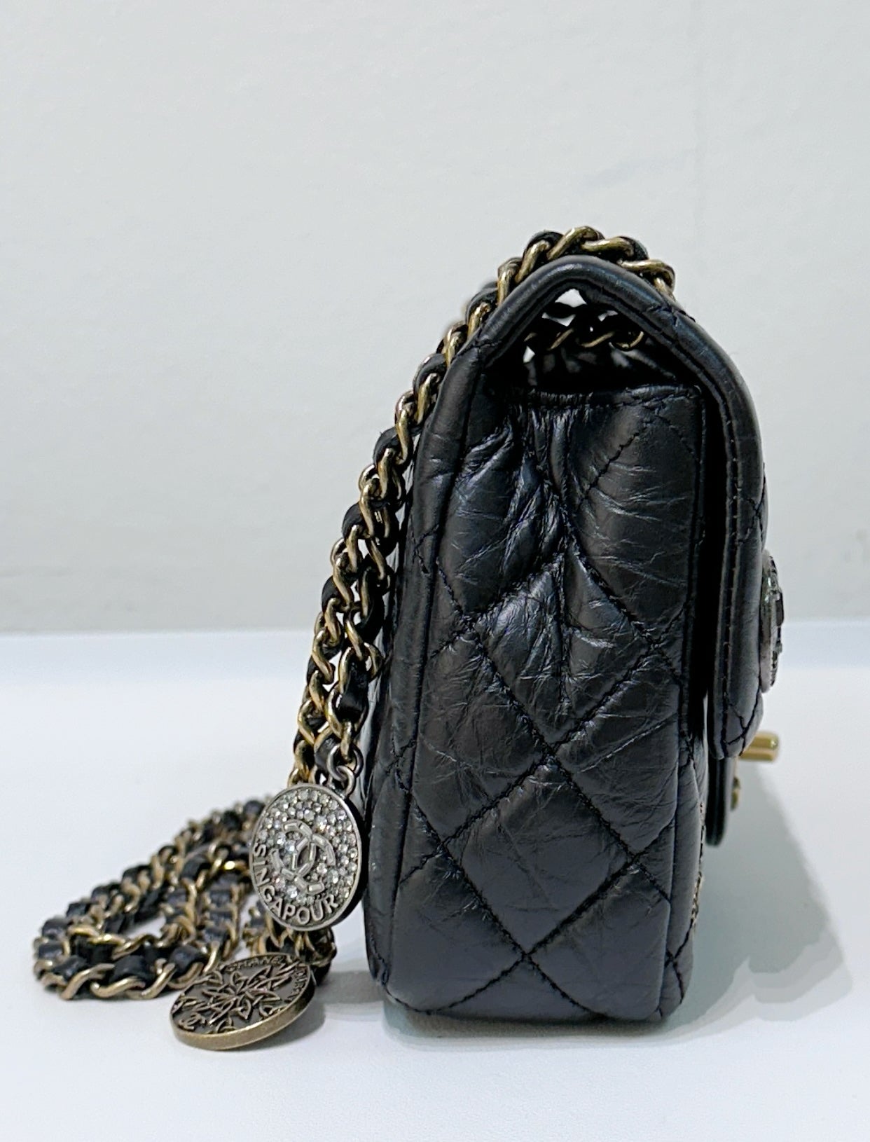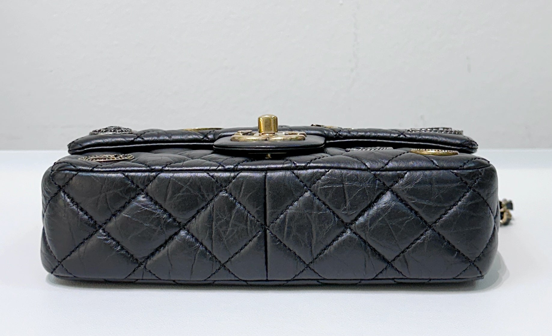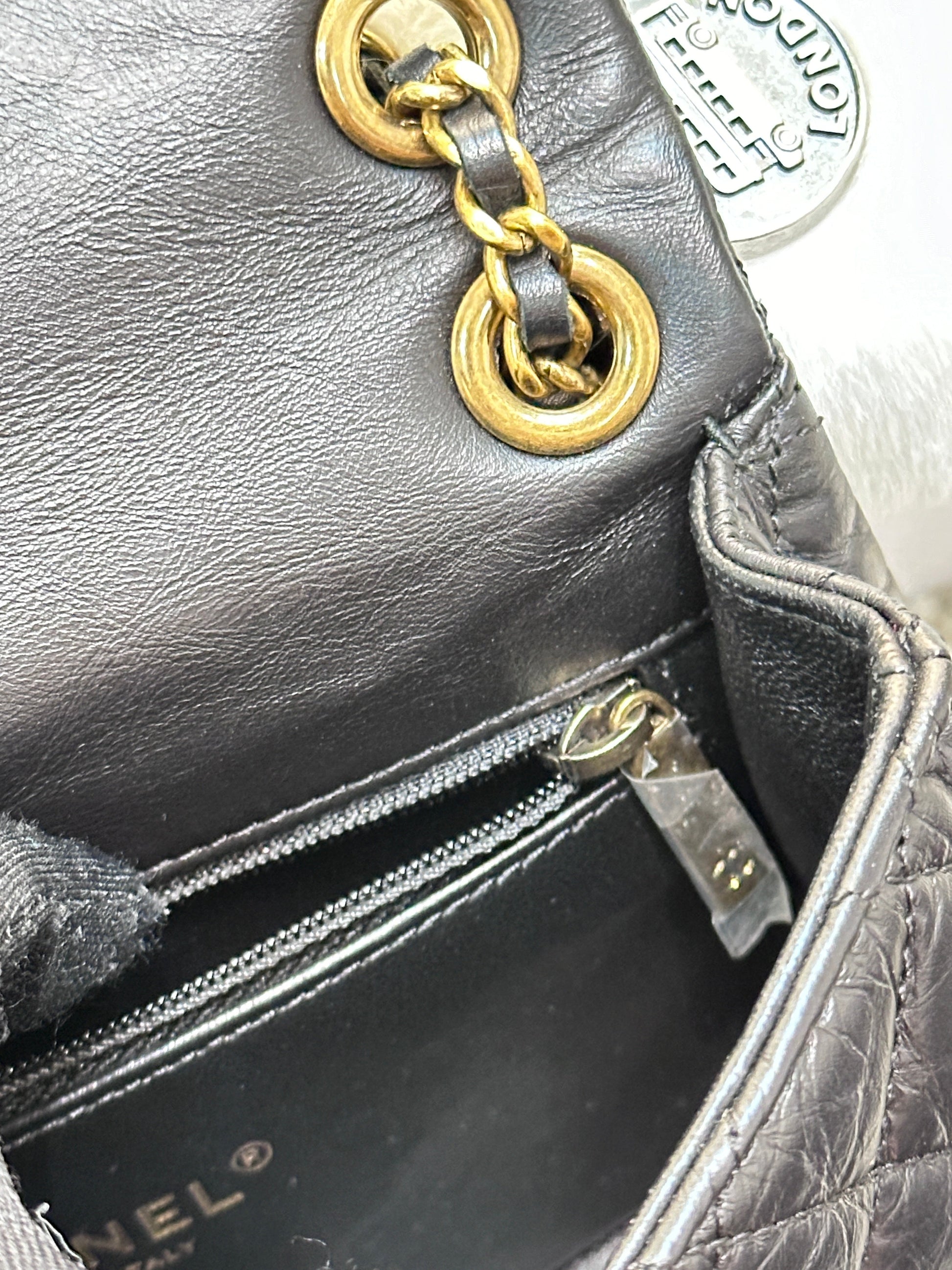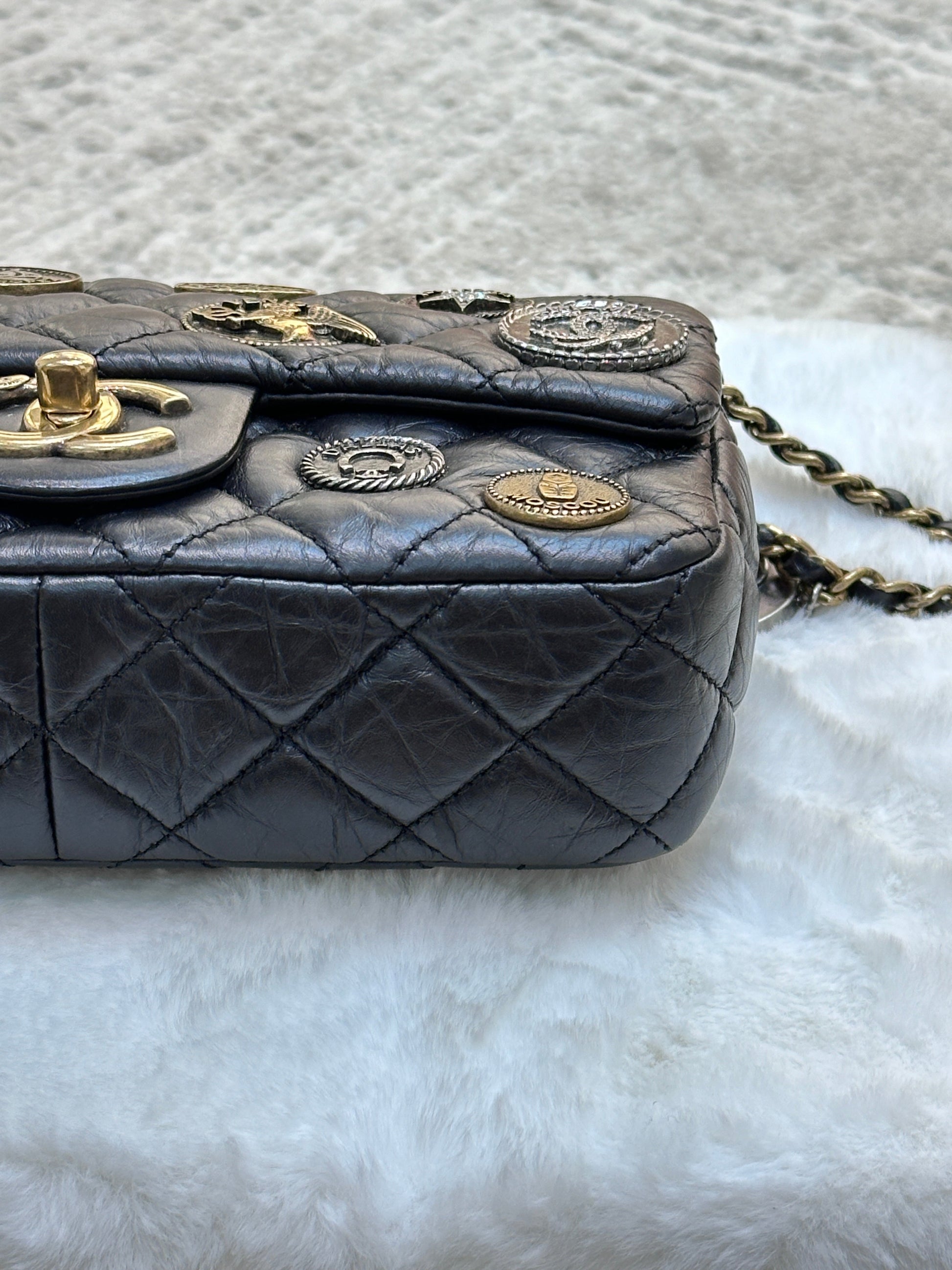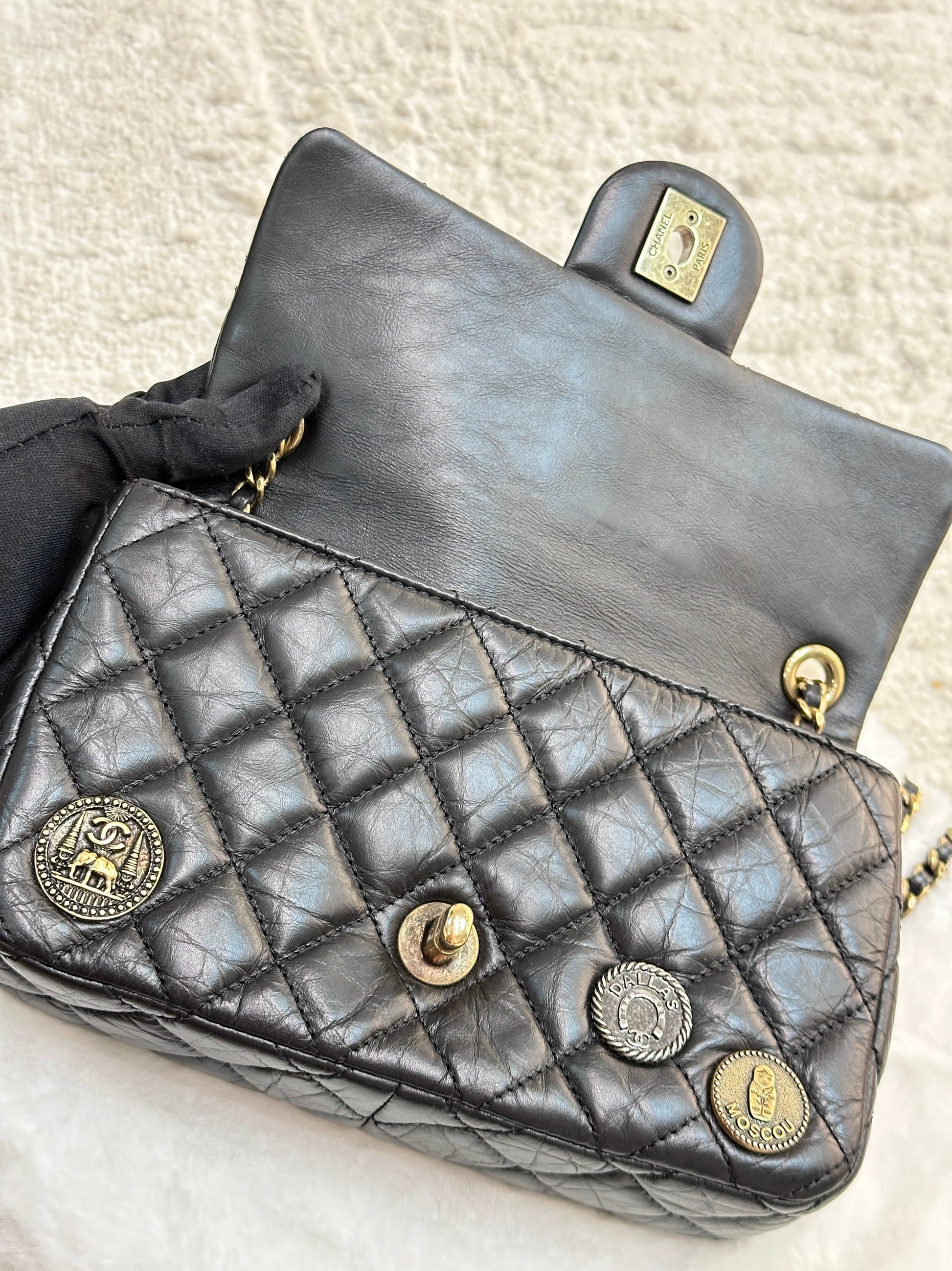 Chanel Mini Limited Edition Aged Calfskin Quilted Medallion Flap Black GHW