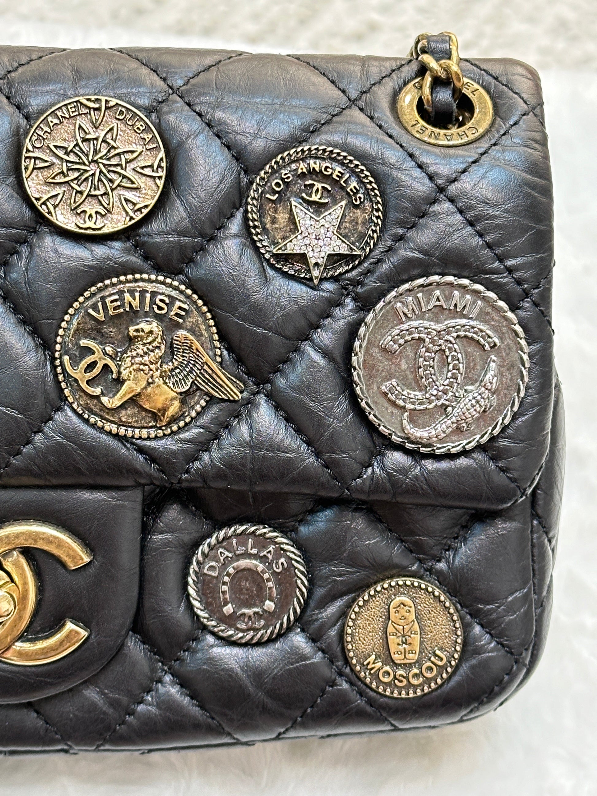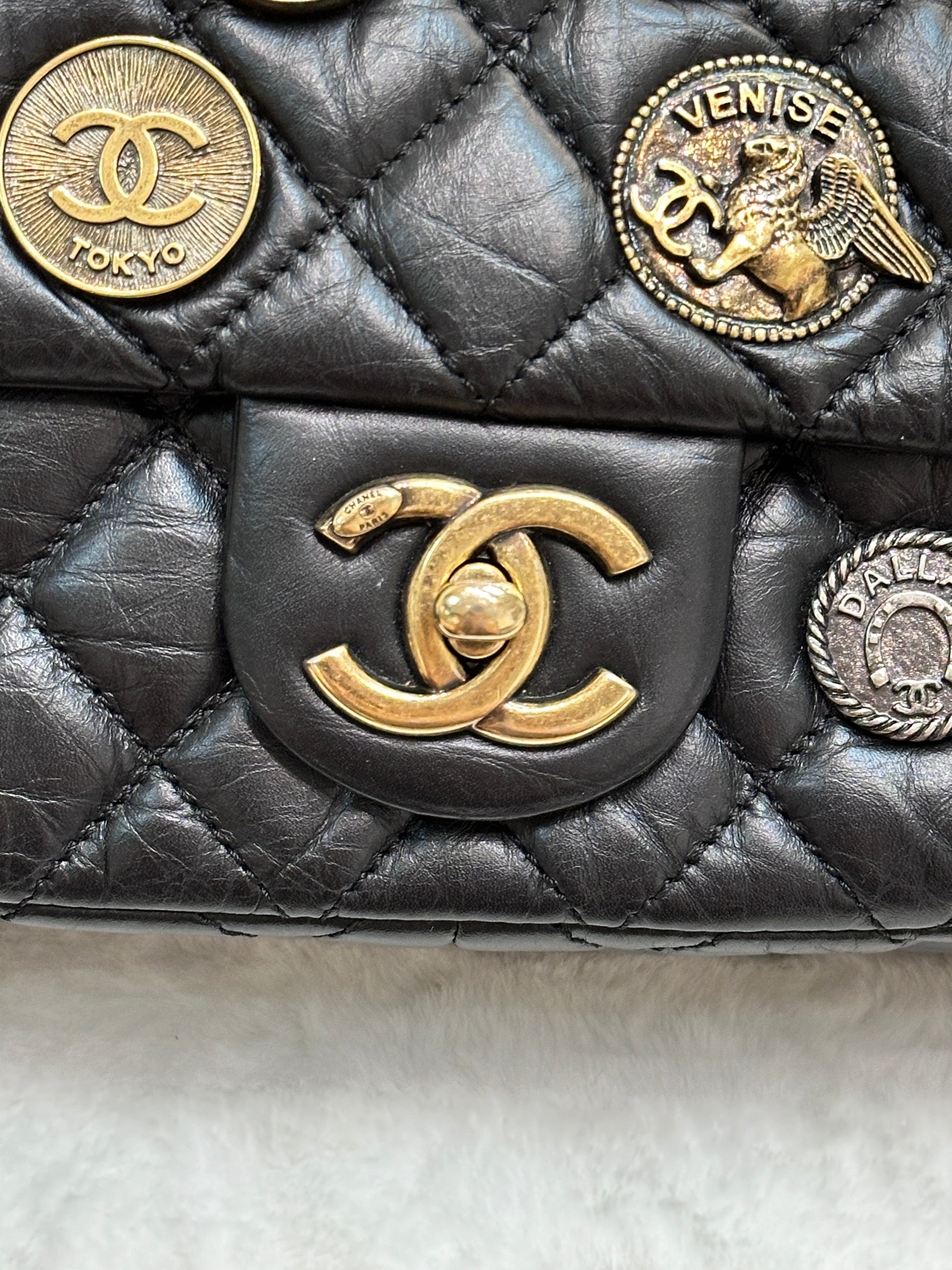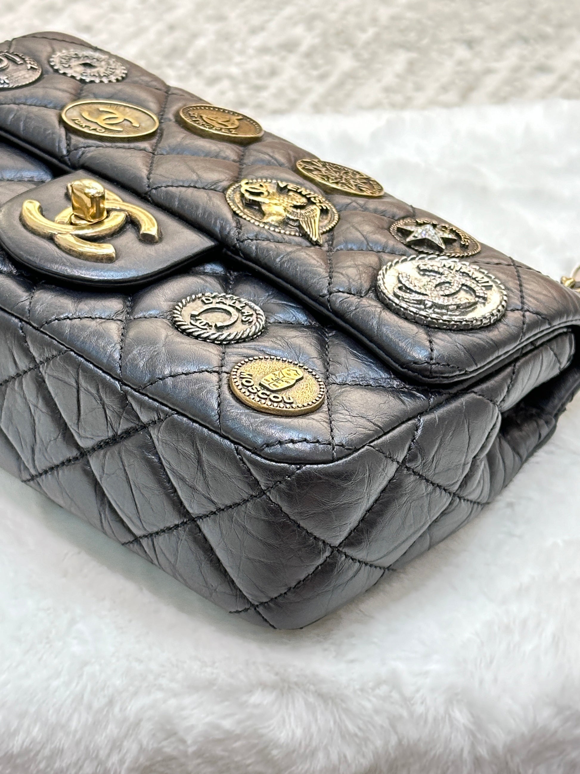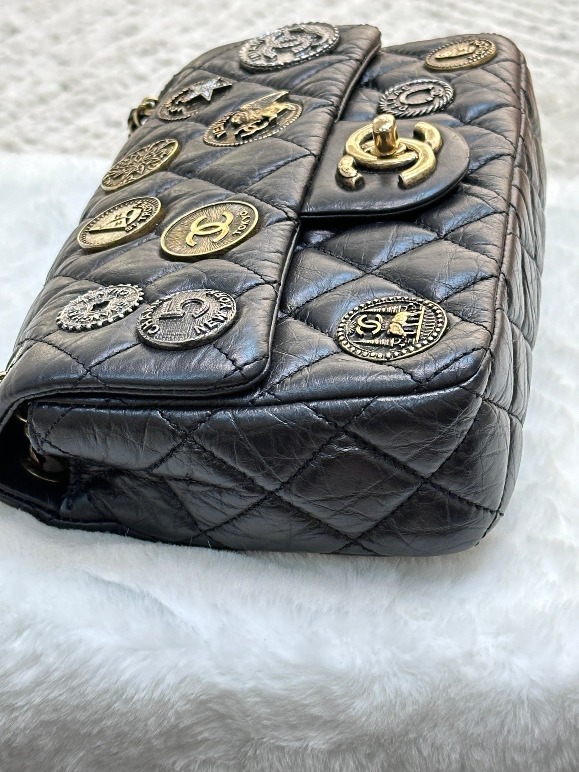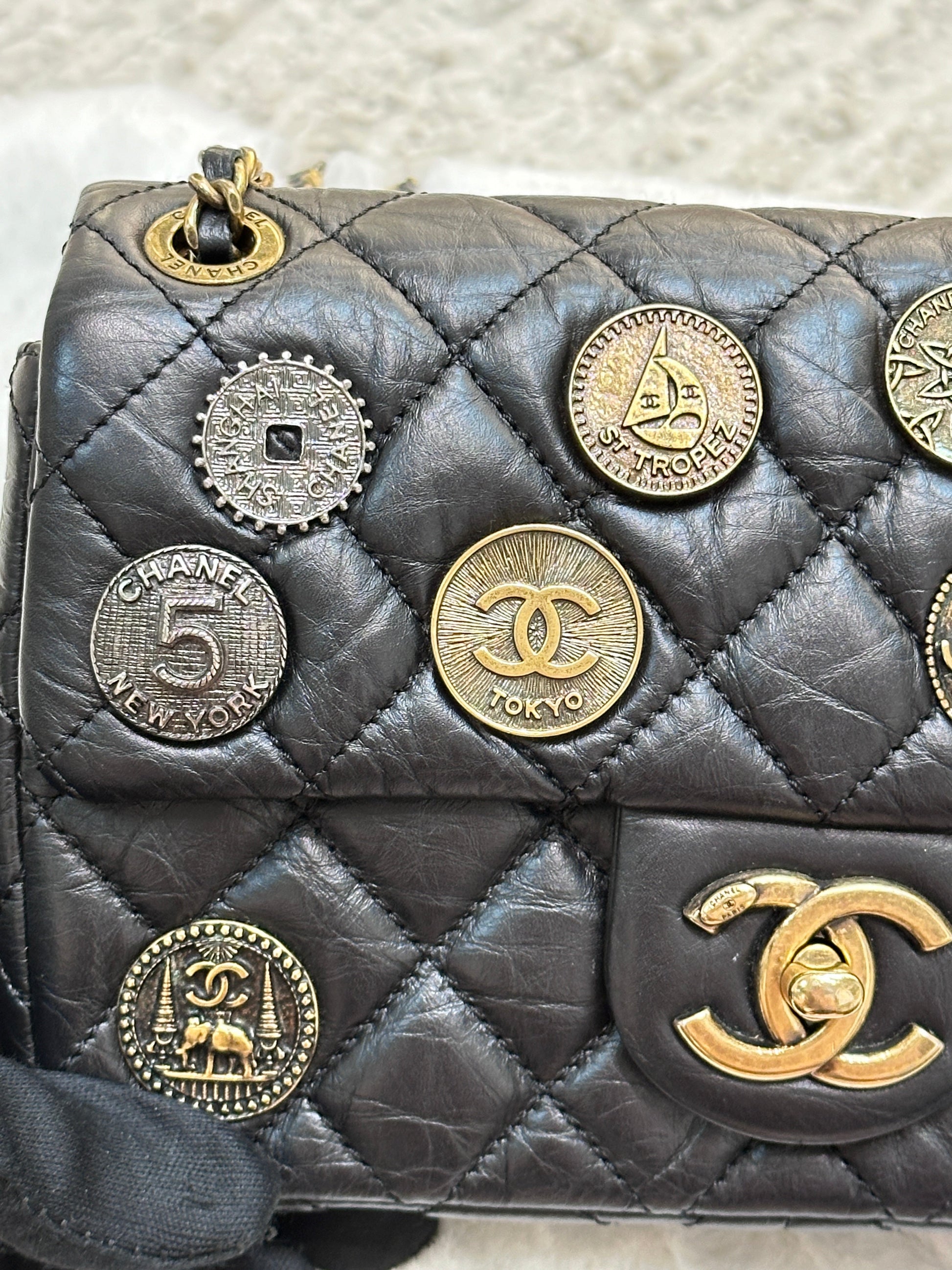 Chanel Mini Limited Edition Aged Calfskin Quilted Medallion Flap Black GHW