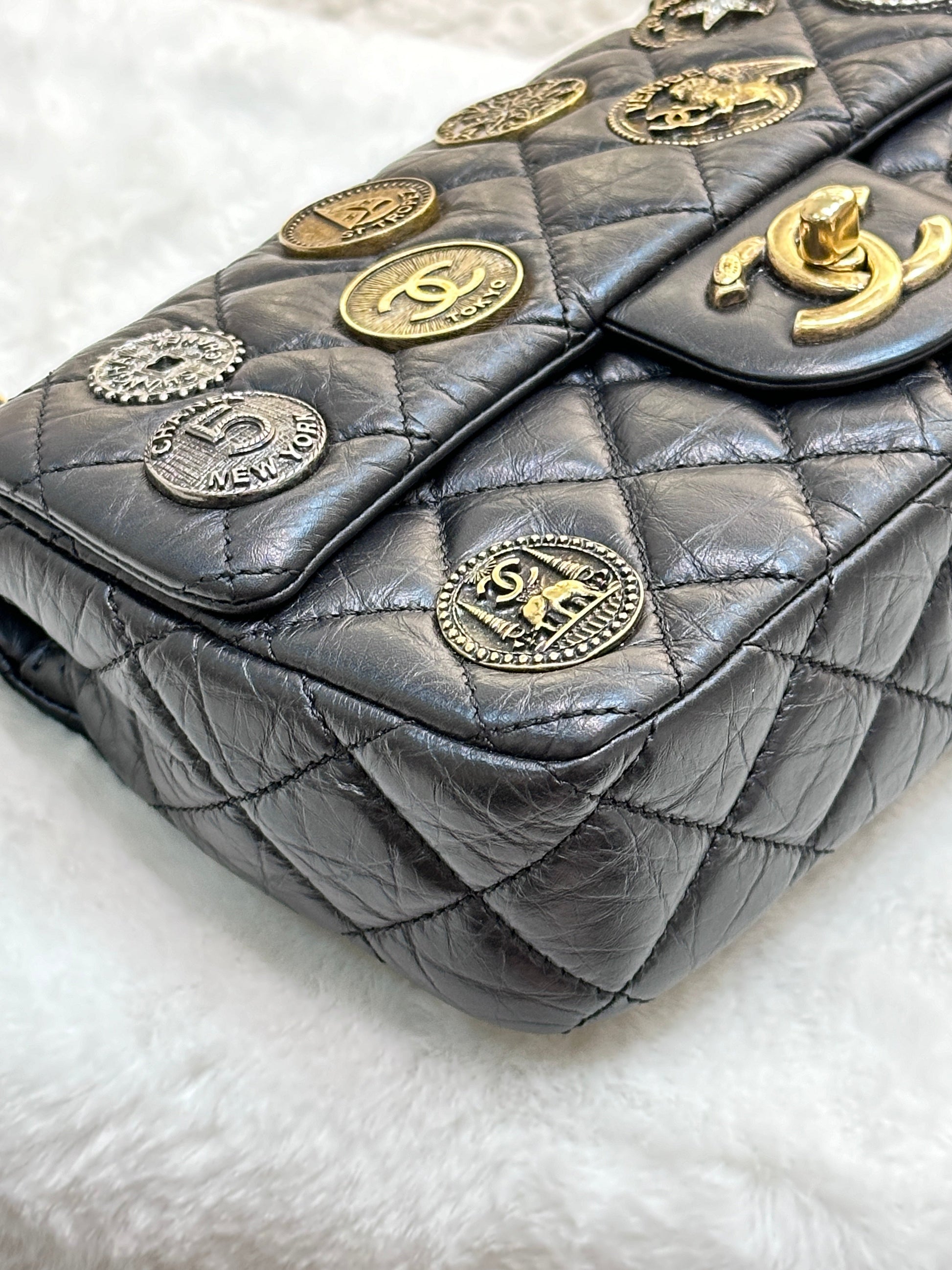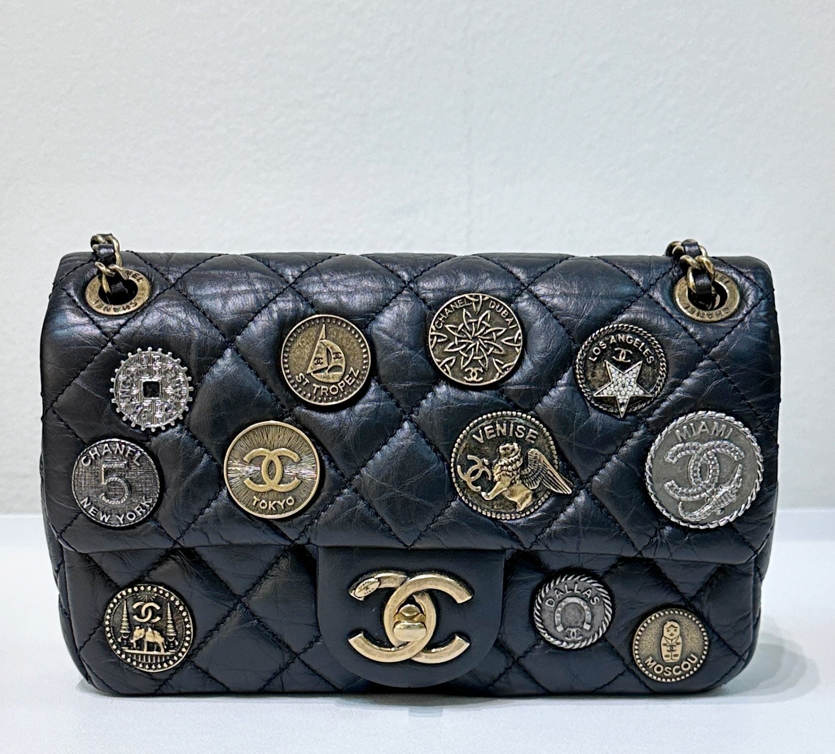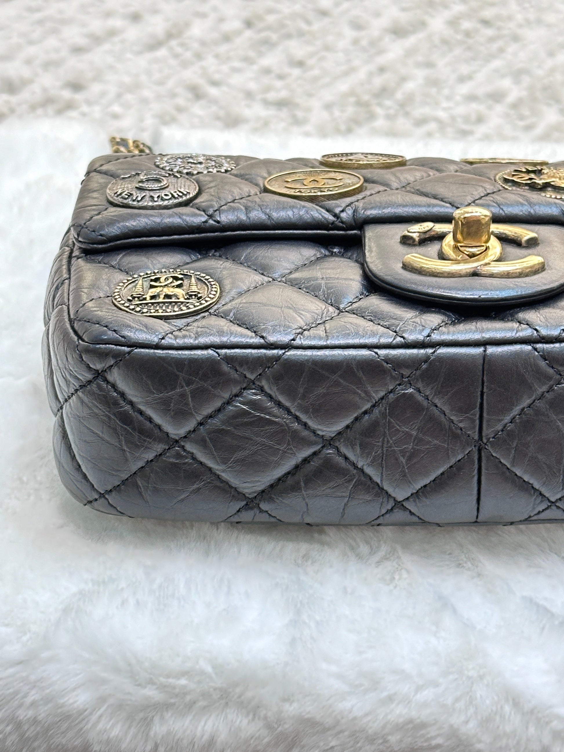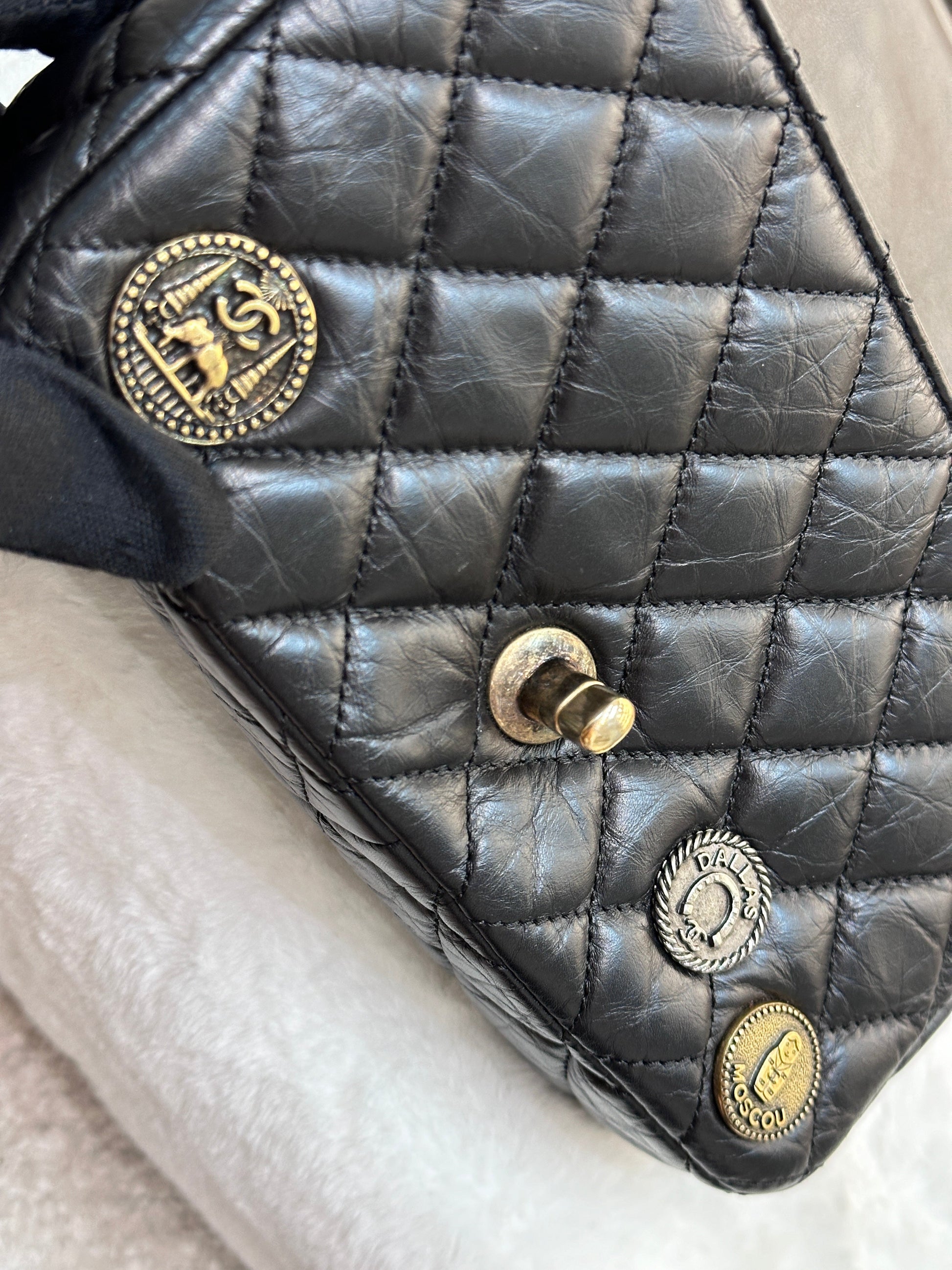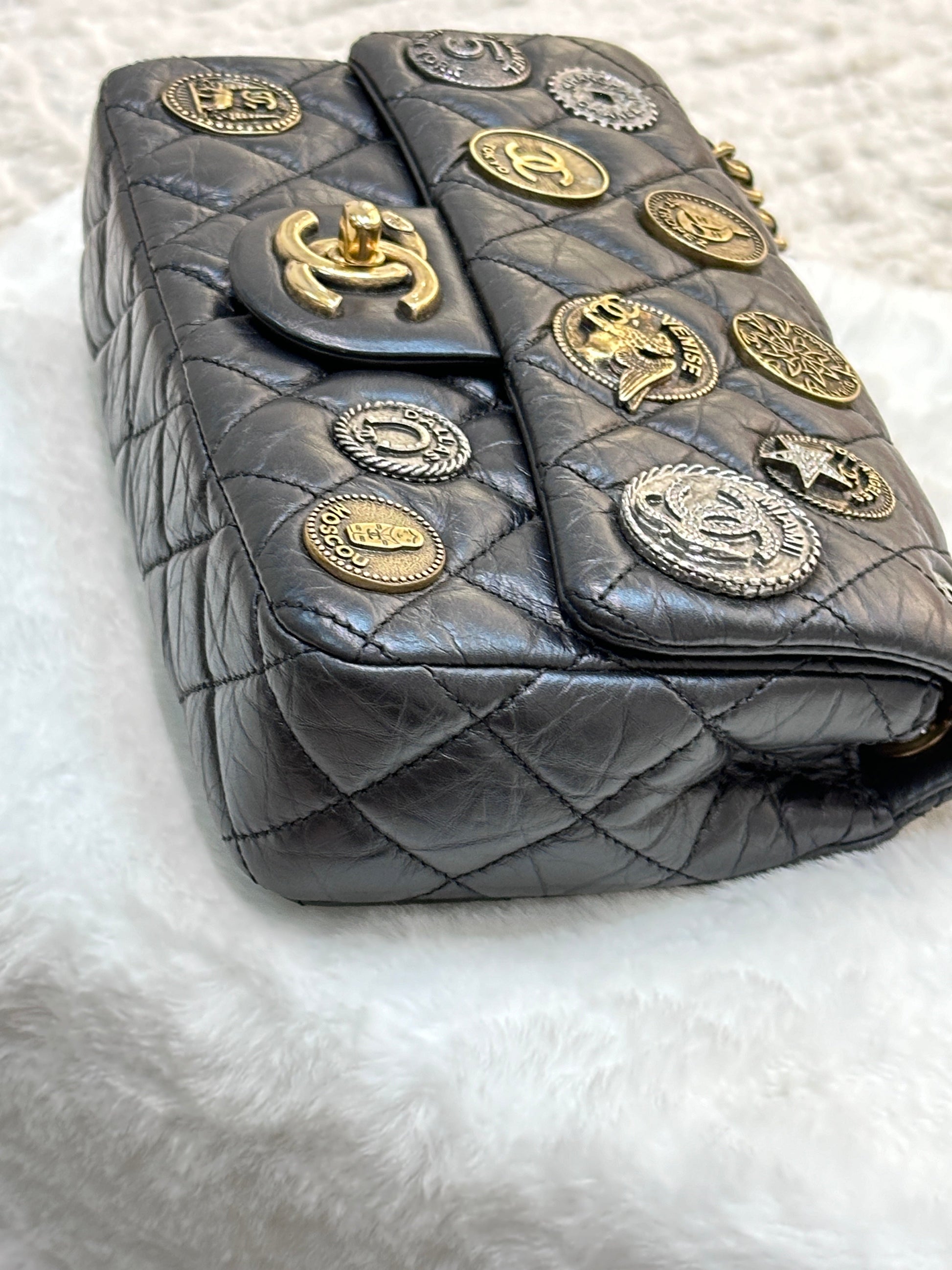 Chanel Mini Limited Edition Aged Calfskin Quilted Medallion Flap Black GHW