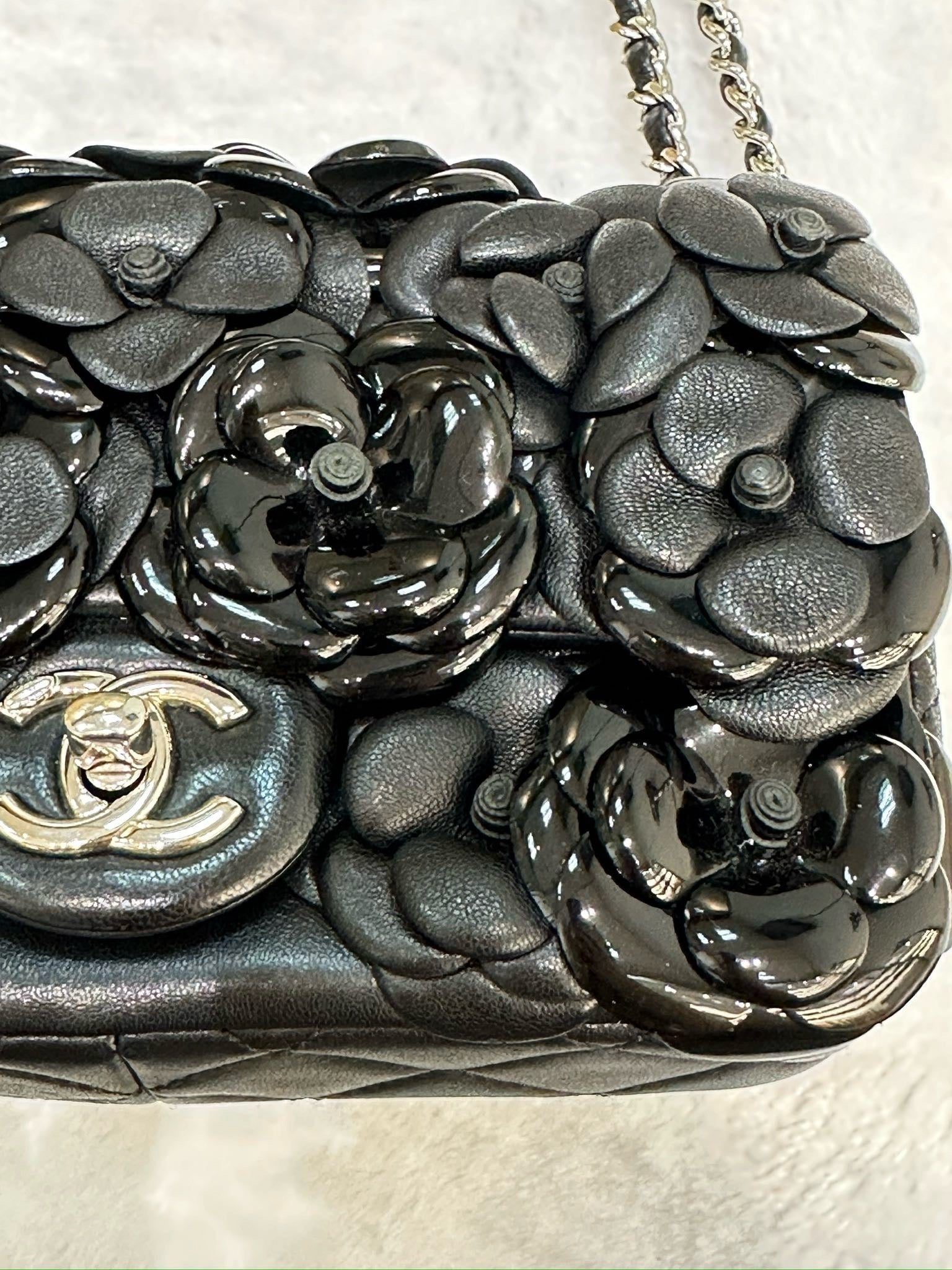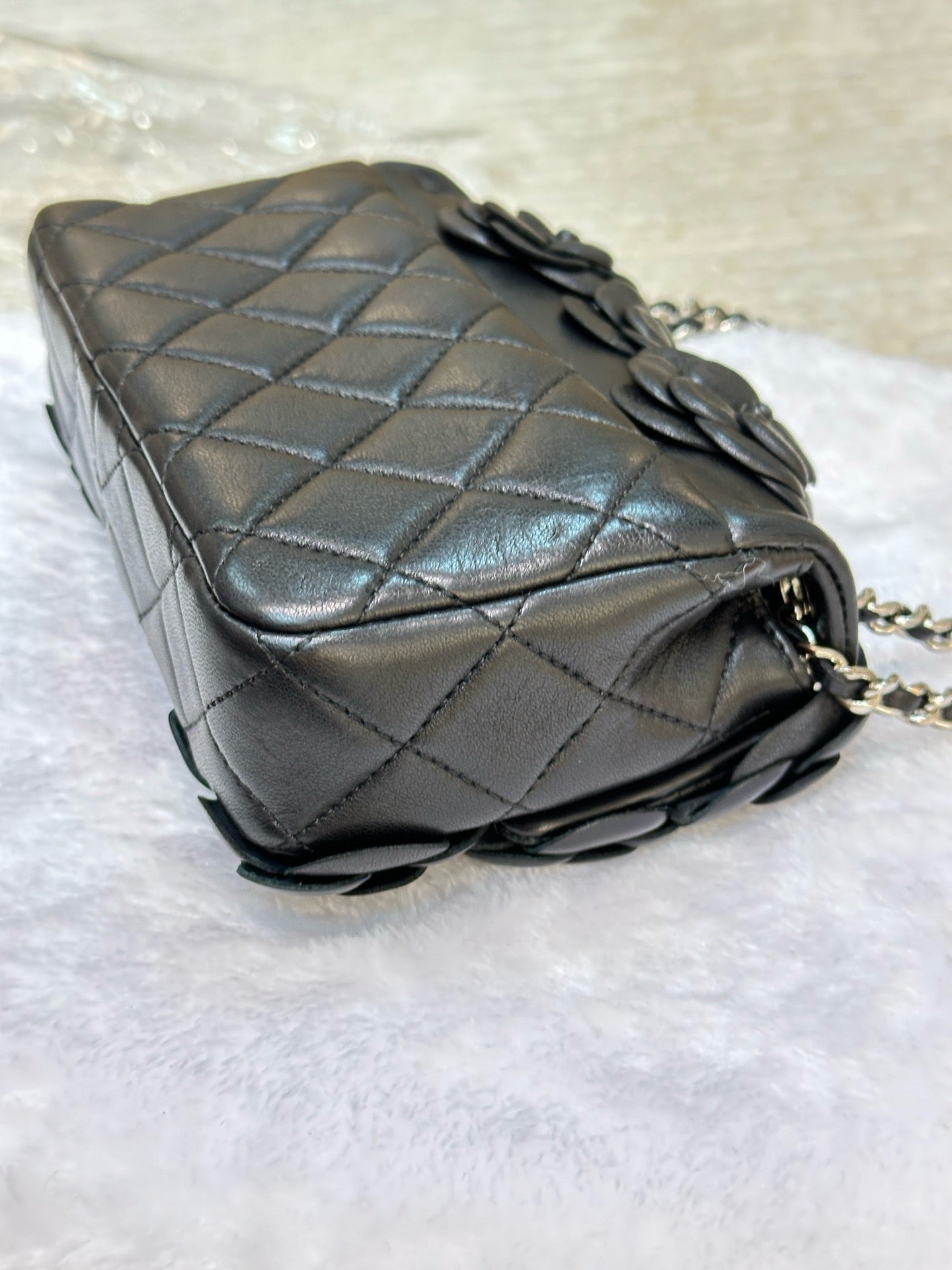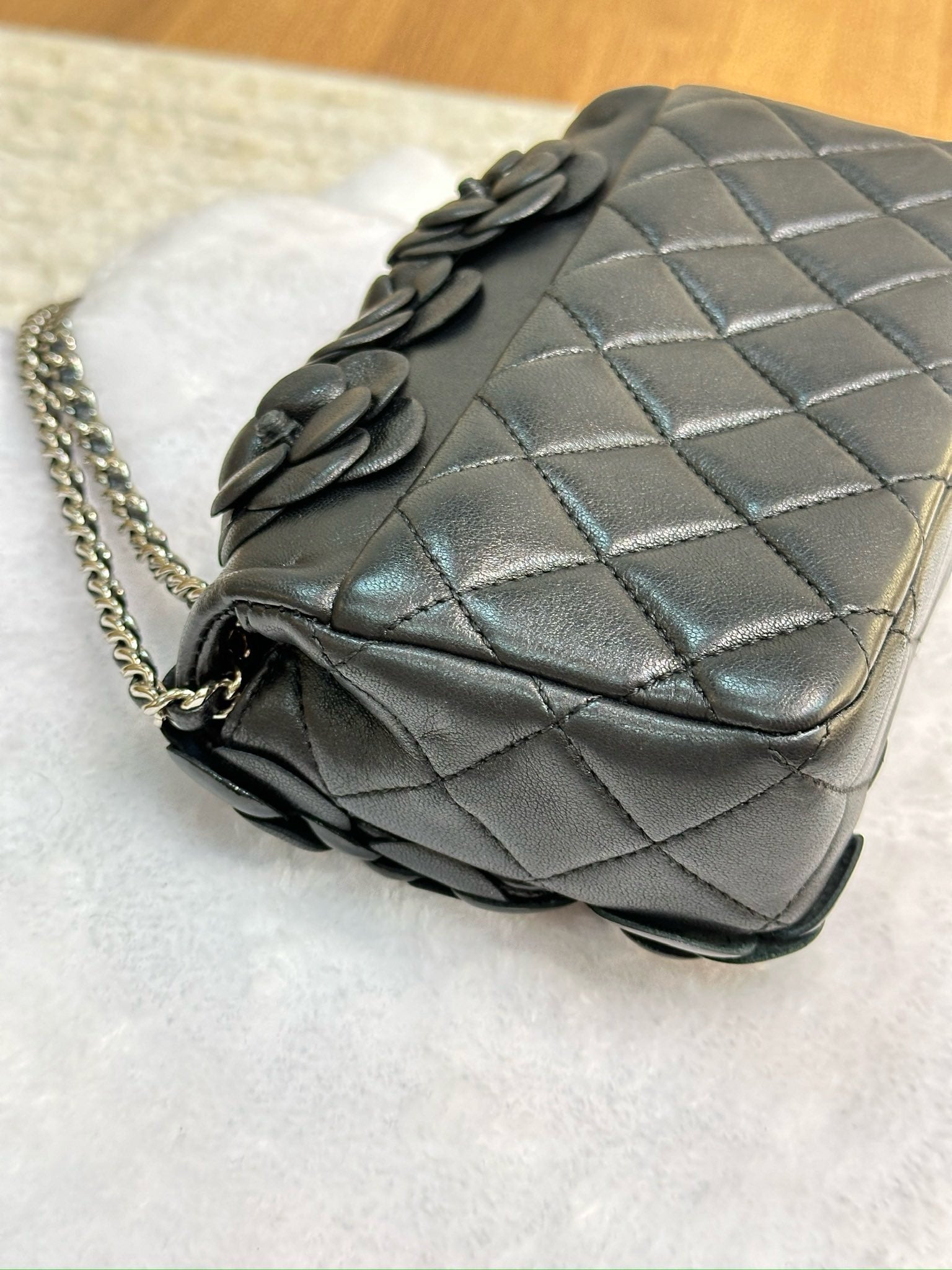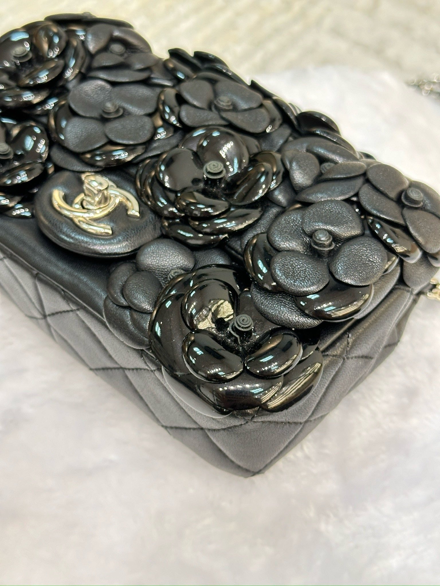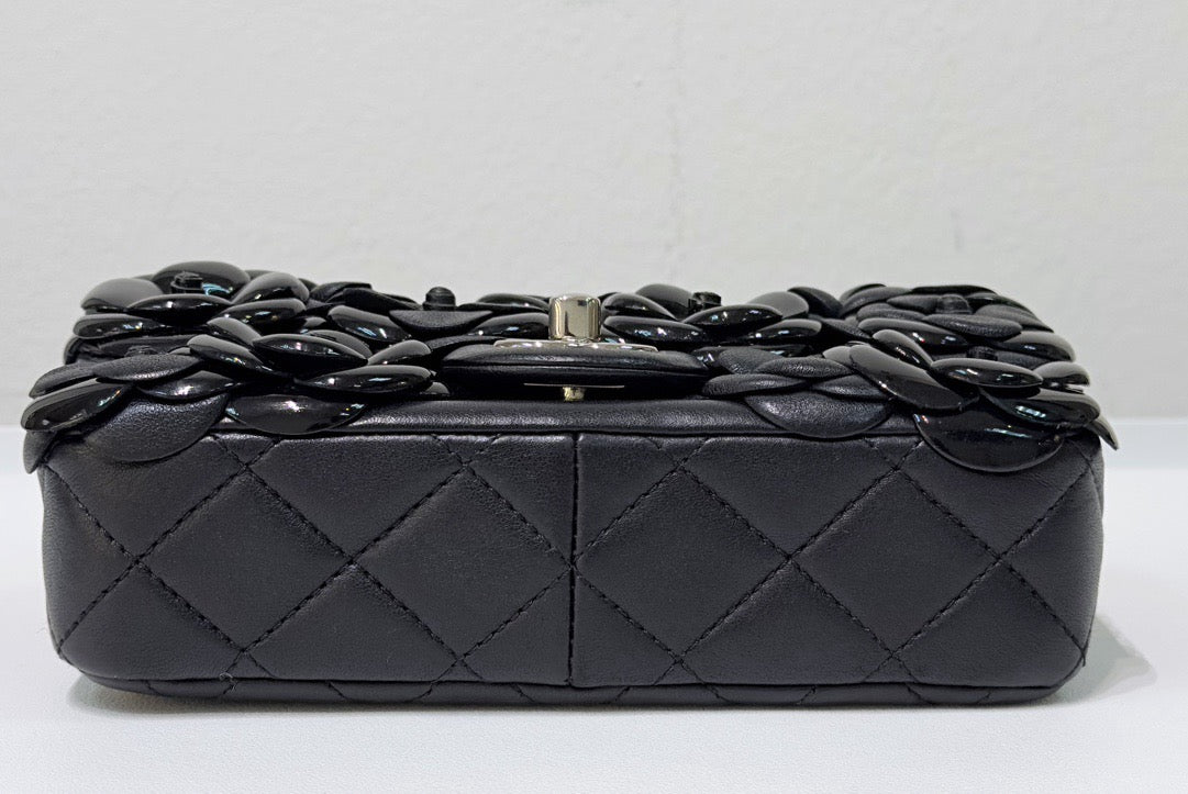 Chanel Mini Limited Edition Black Camellia Lambskin Flap Bag