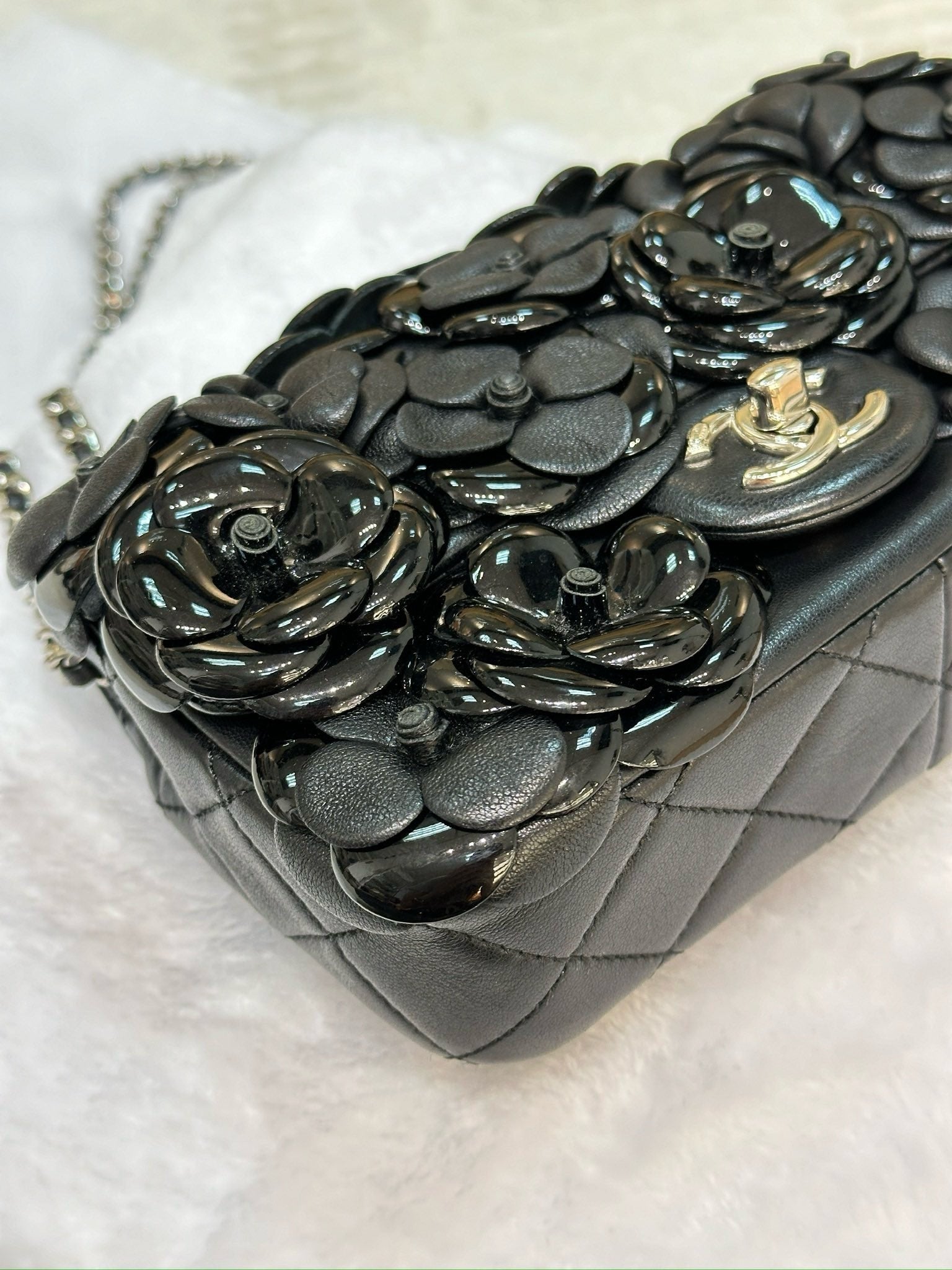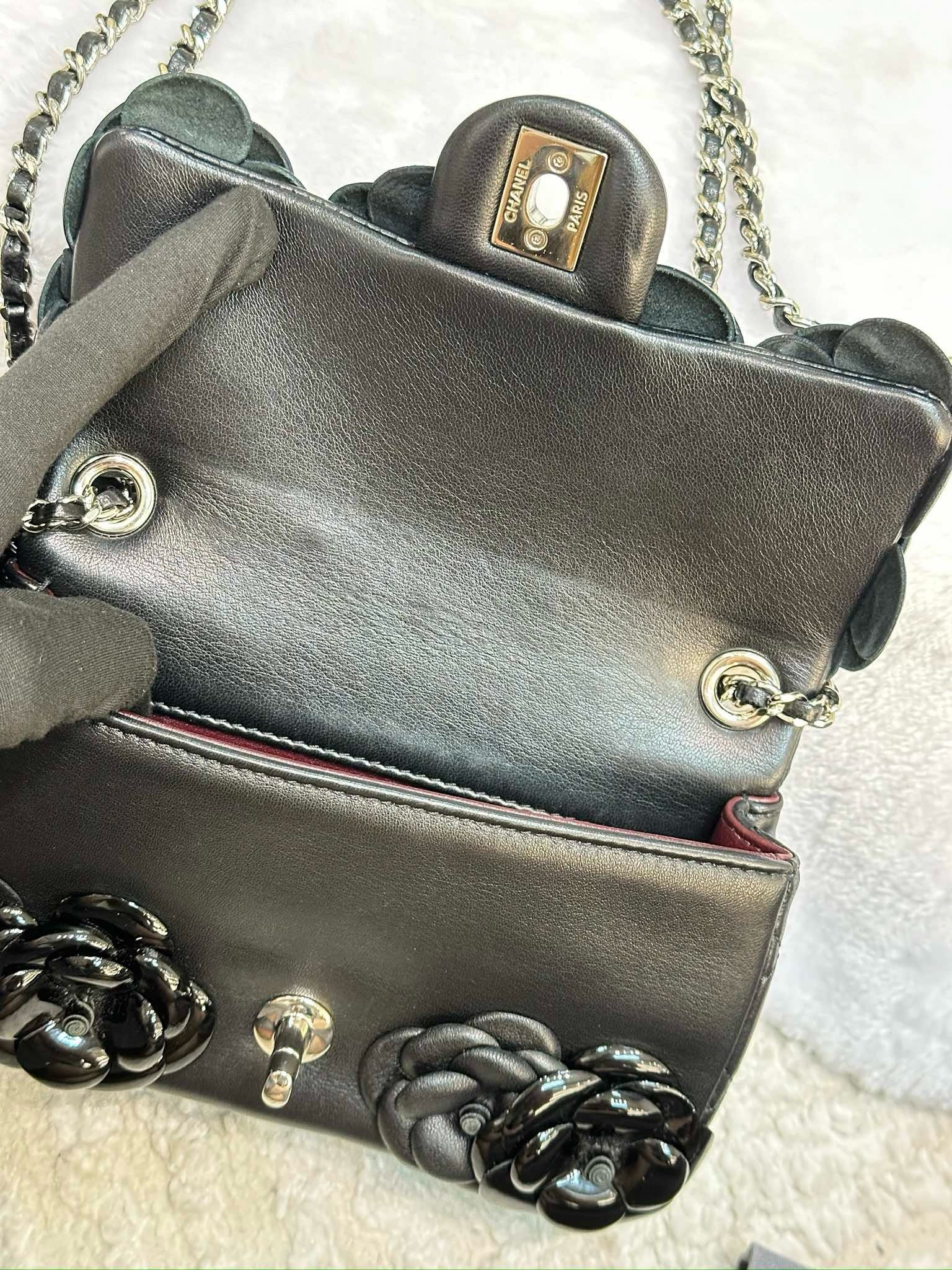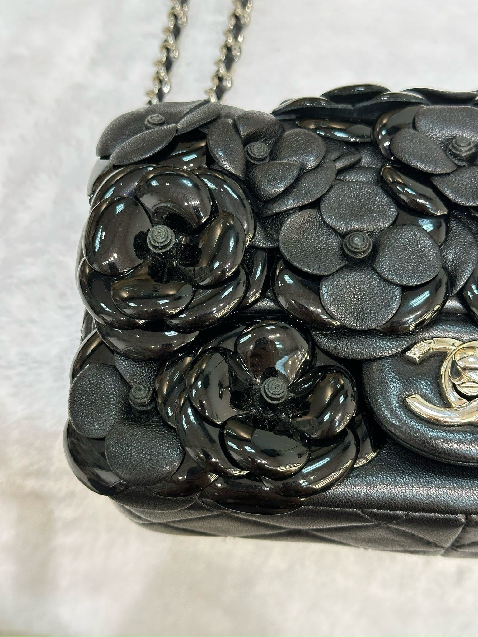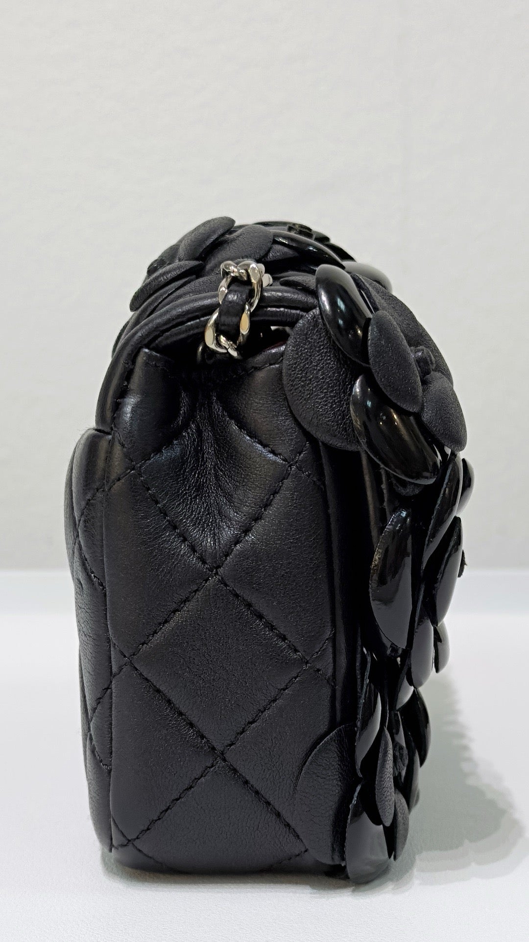 Chanel Mini Limited Edition Black Camellia Lambskin Flap Bag