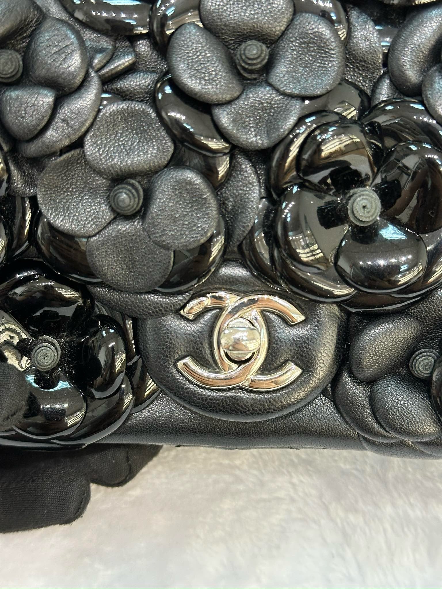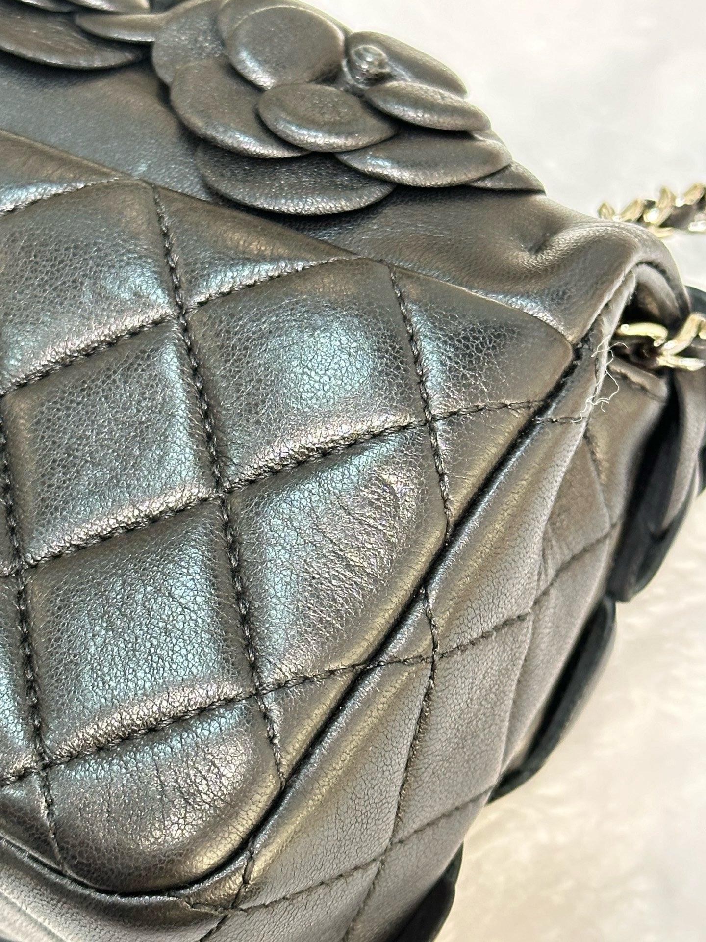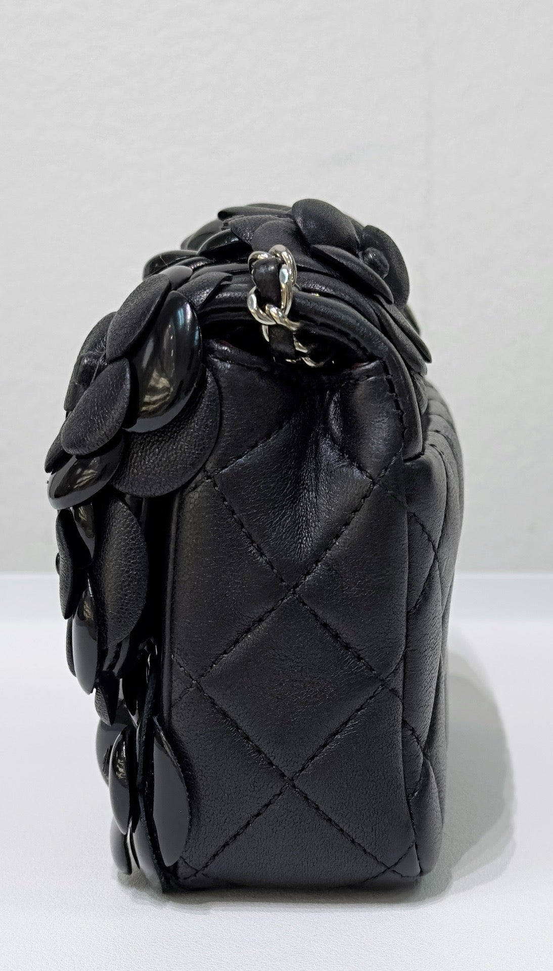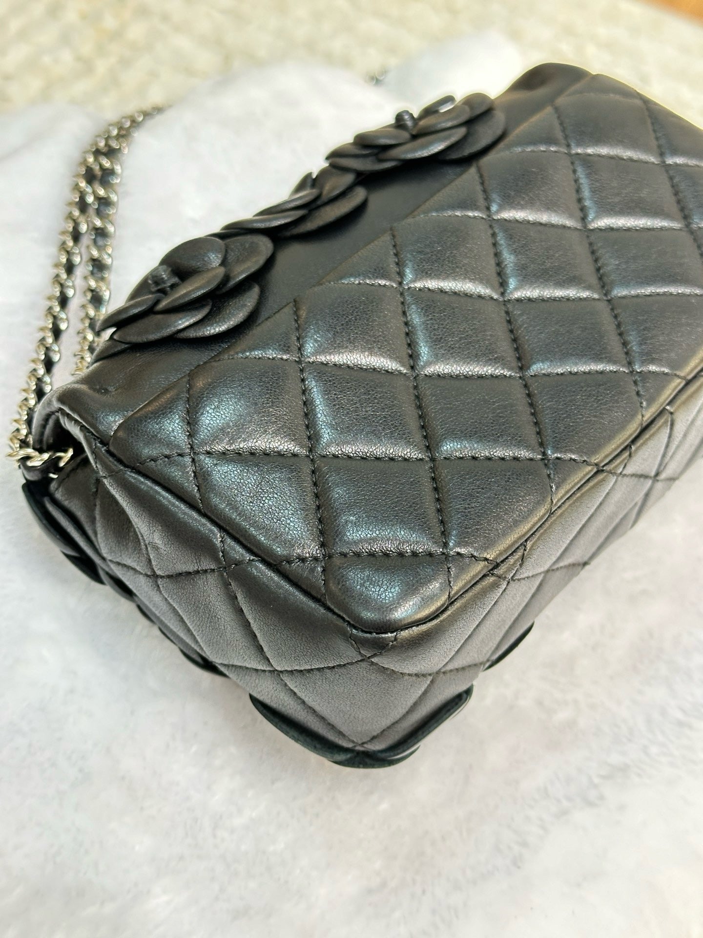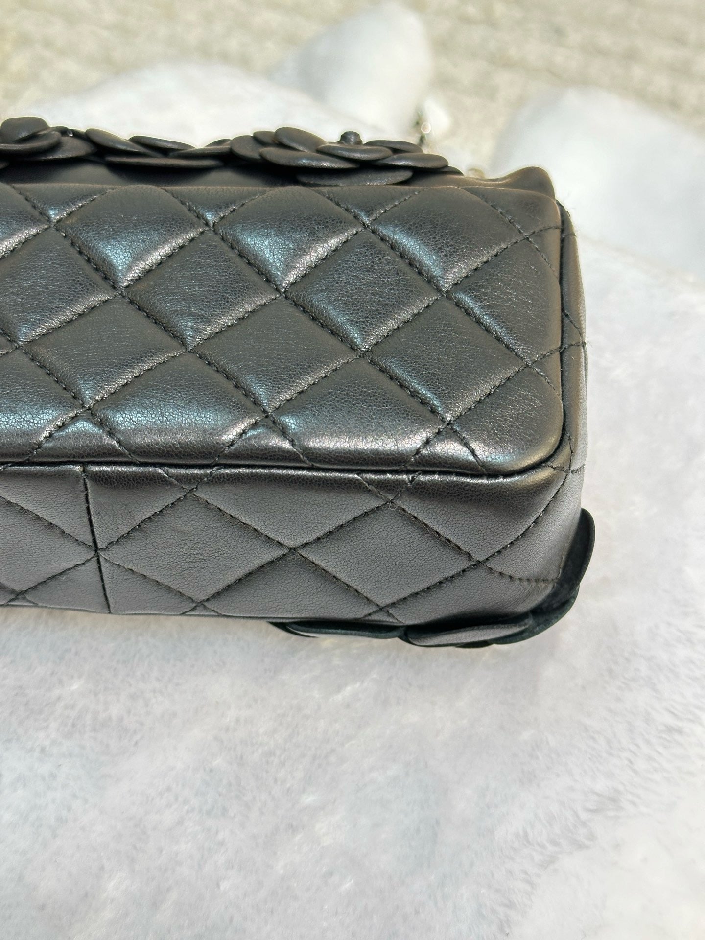 Chanel Mini Limited Edition Black Camellia Lambskin Flap Bag