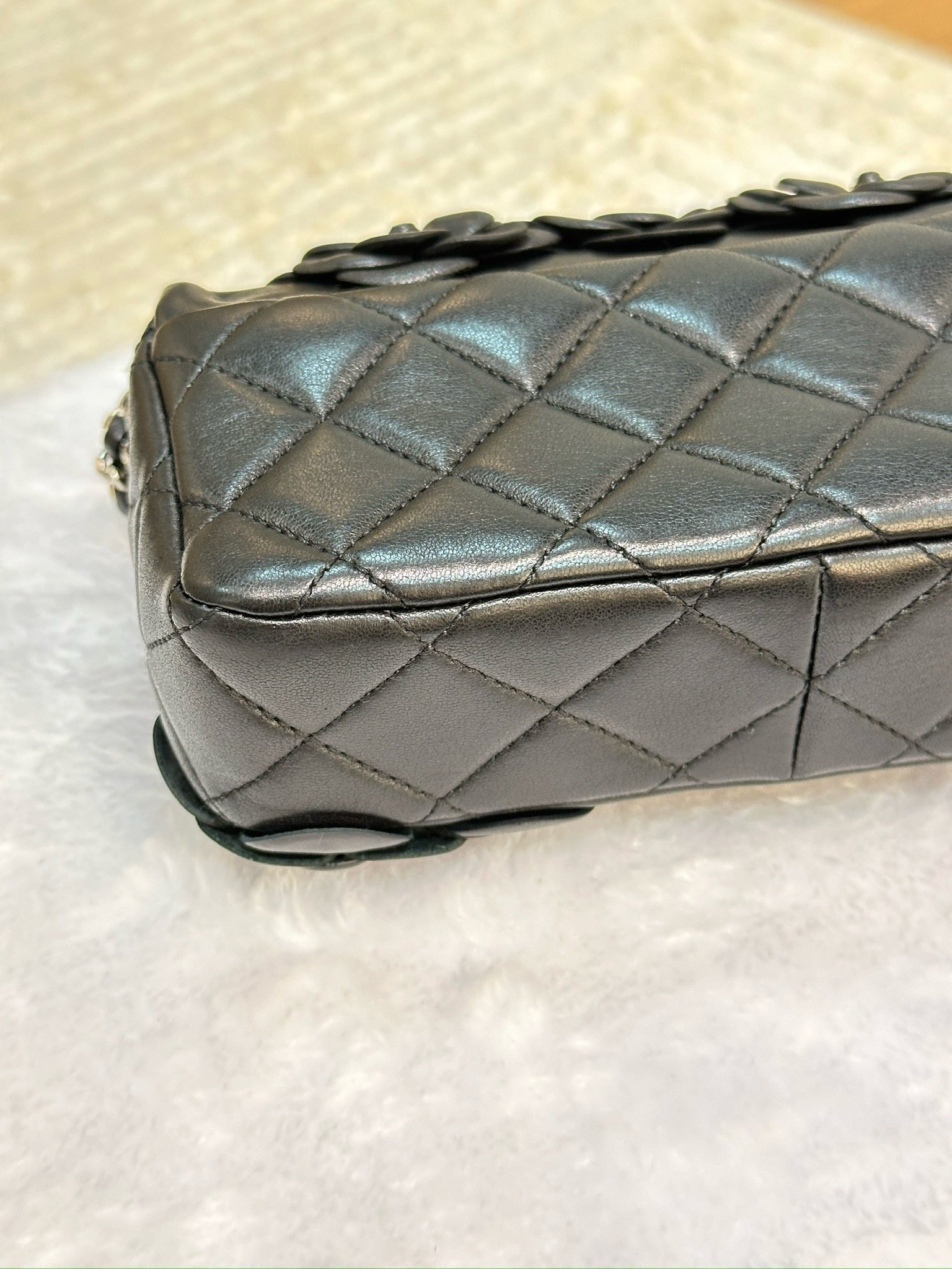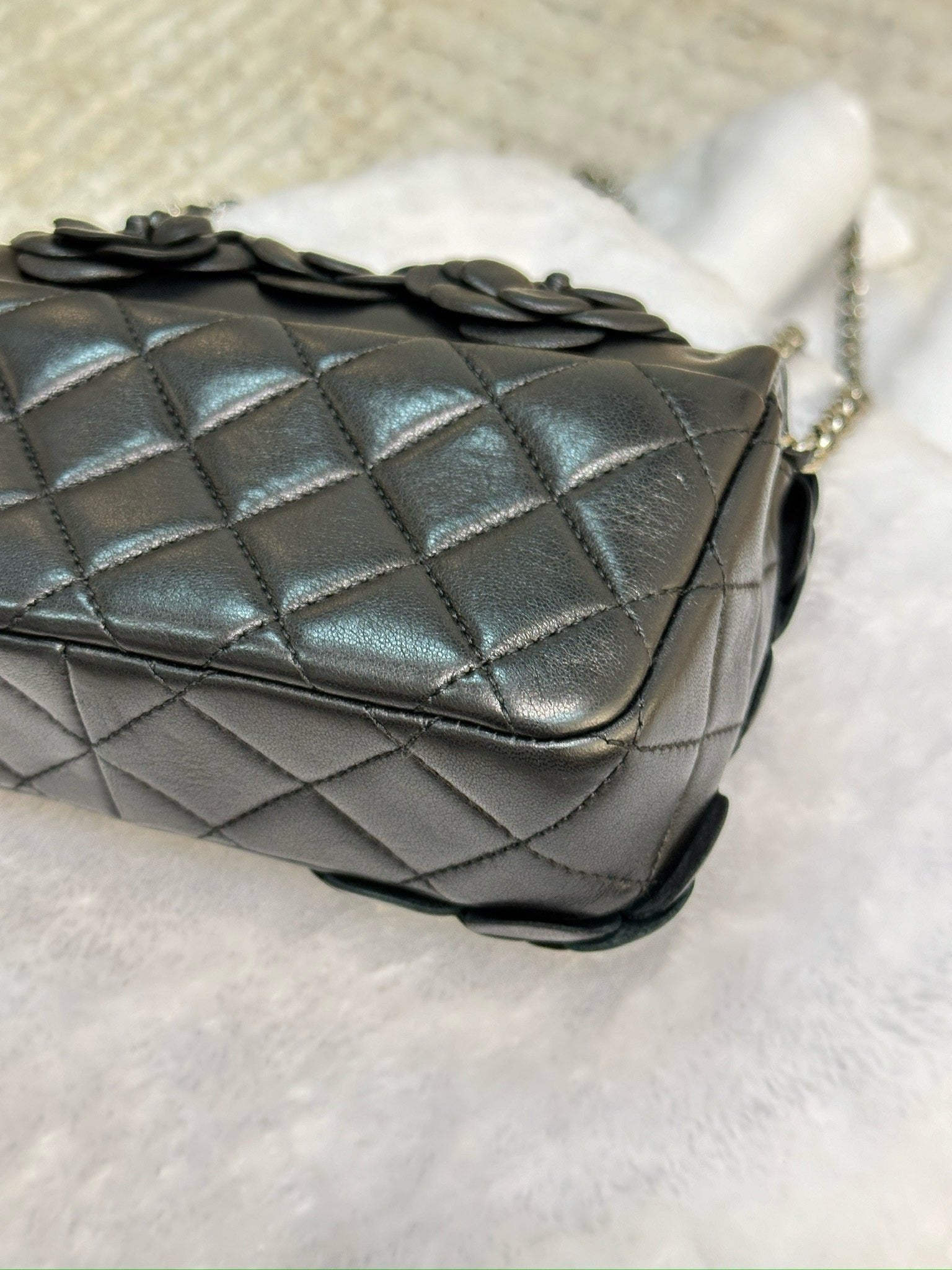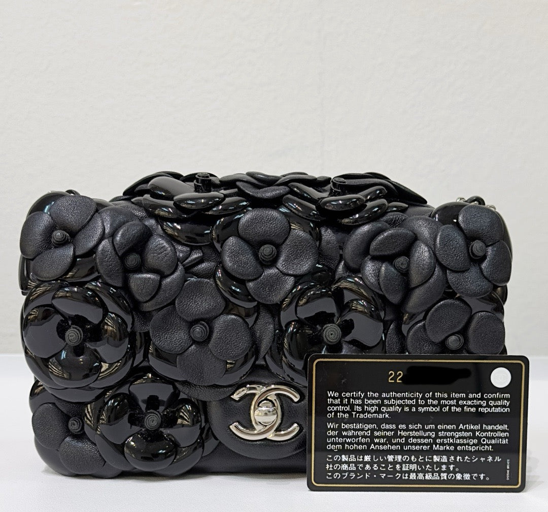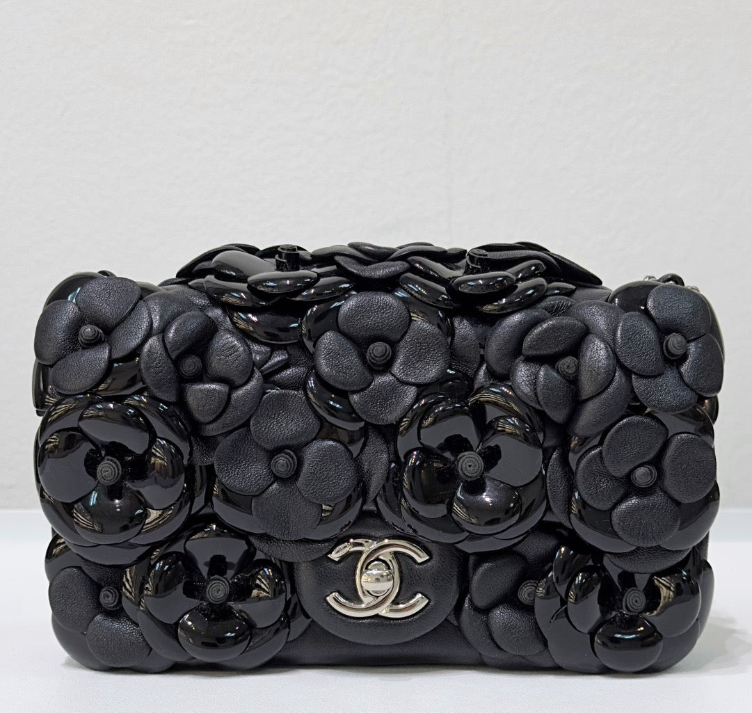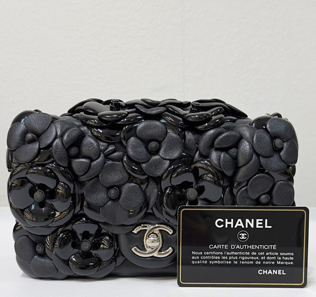 Chanel Mini Limited Edition Black Camellia Lambskin Flap Bag