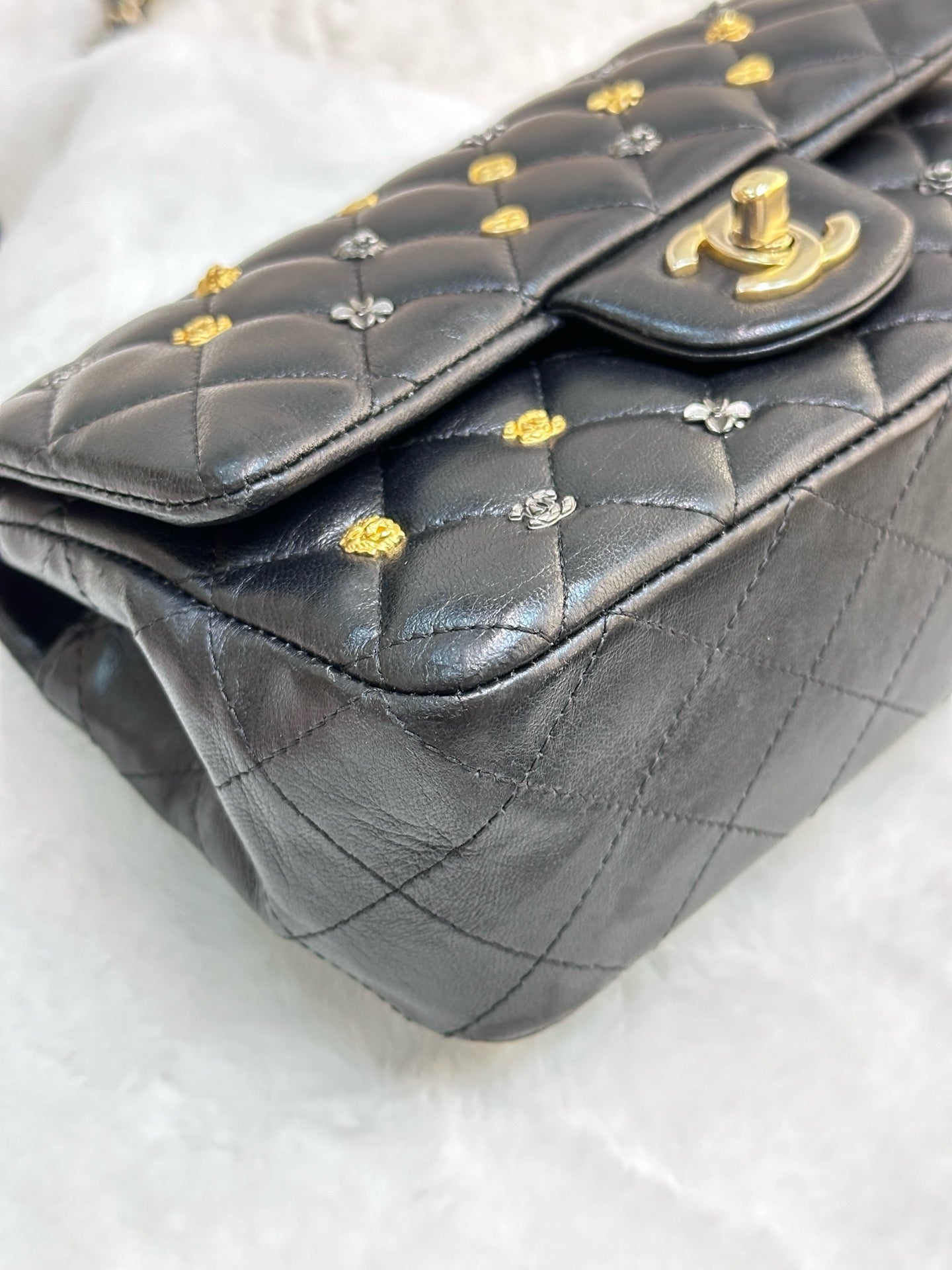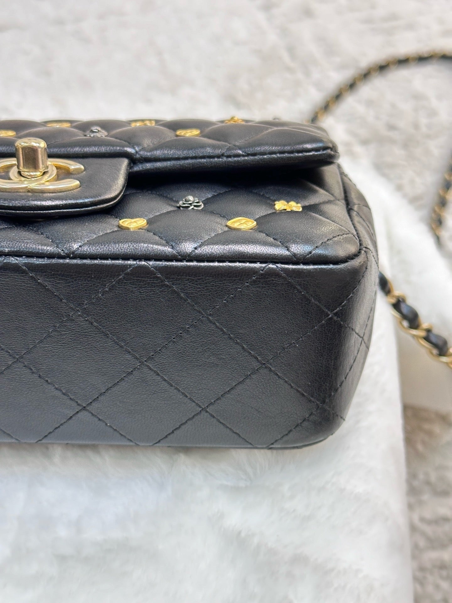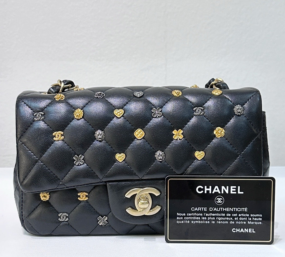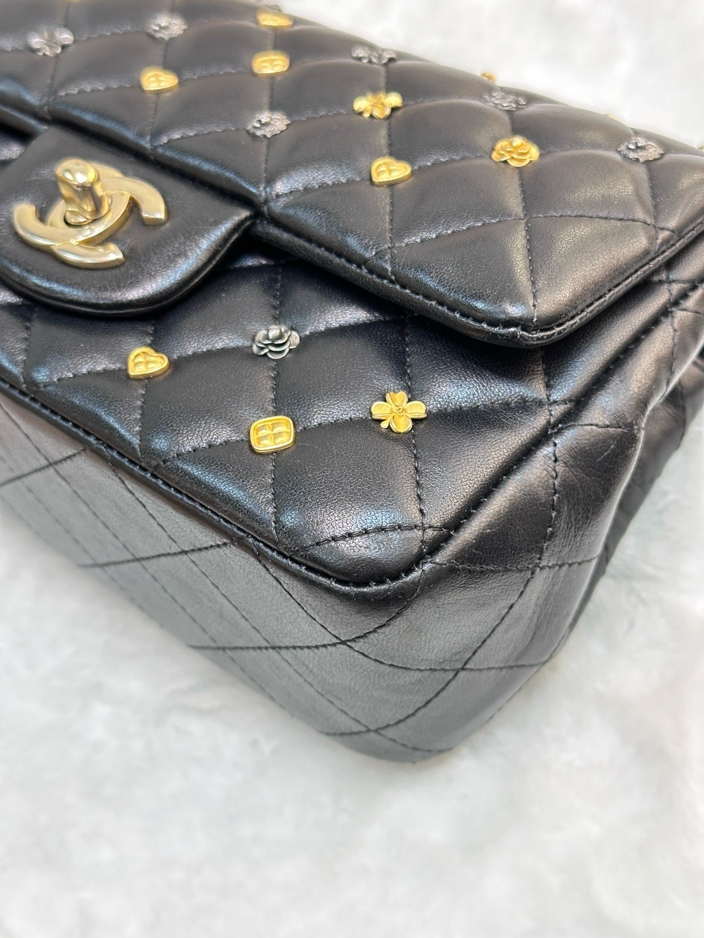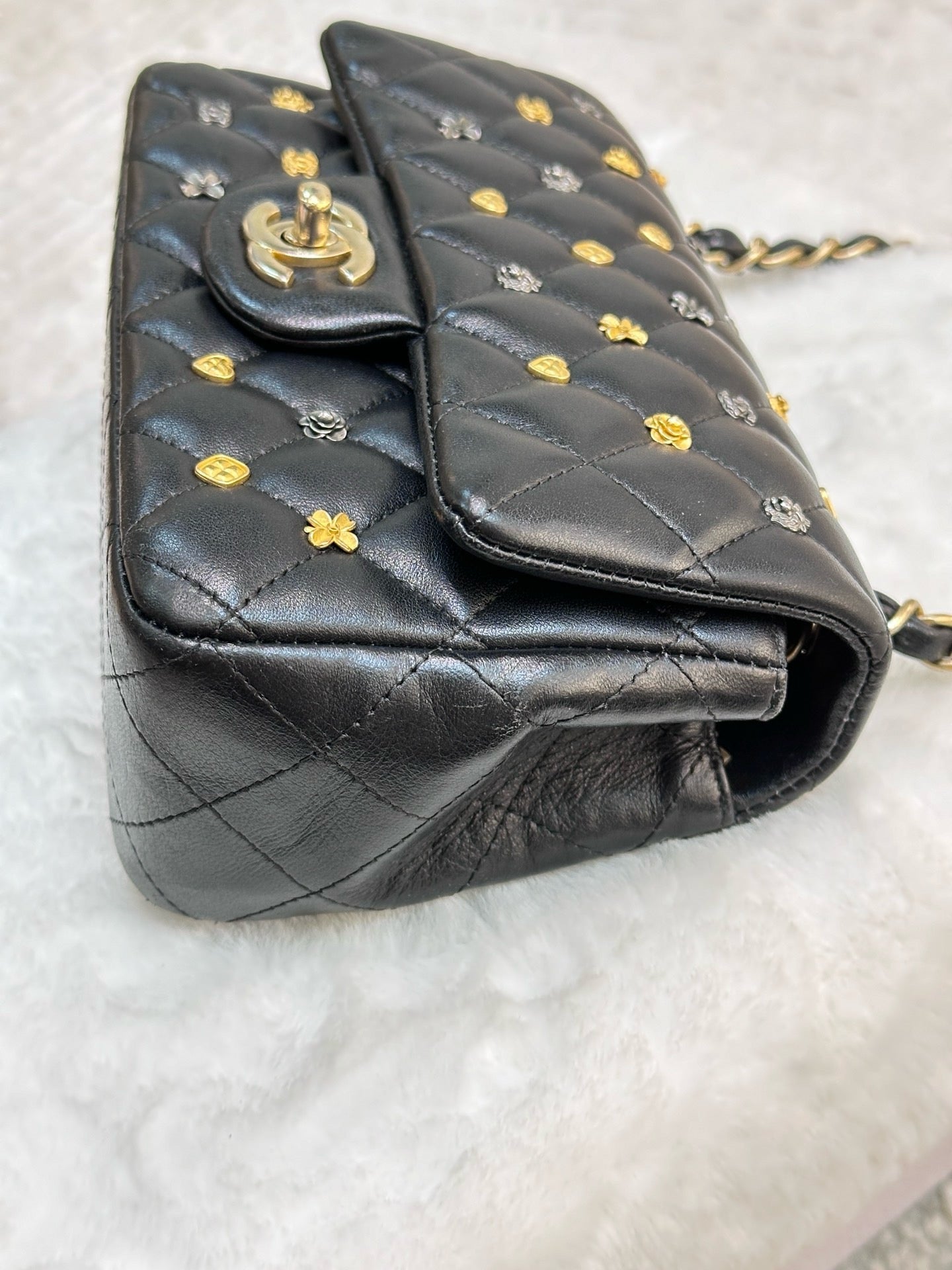 Chanel Mini Rectangular Lambskin Quilted Studded Flap Black