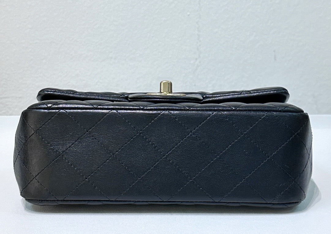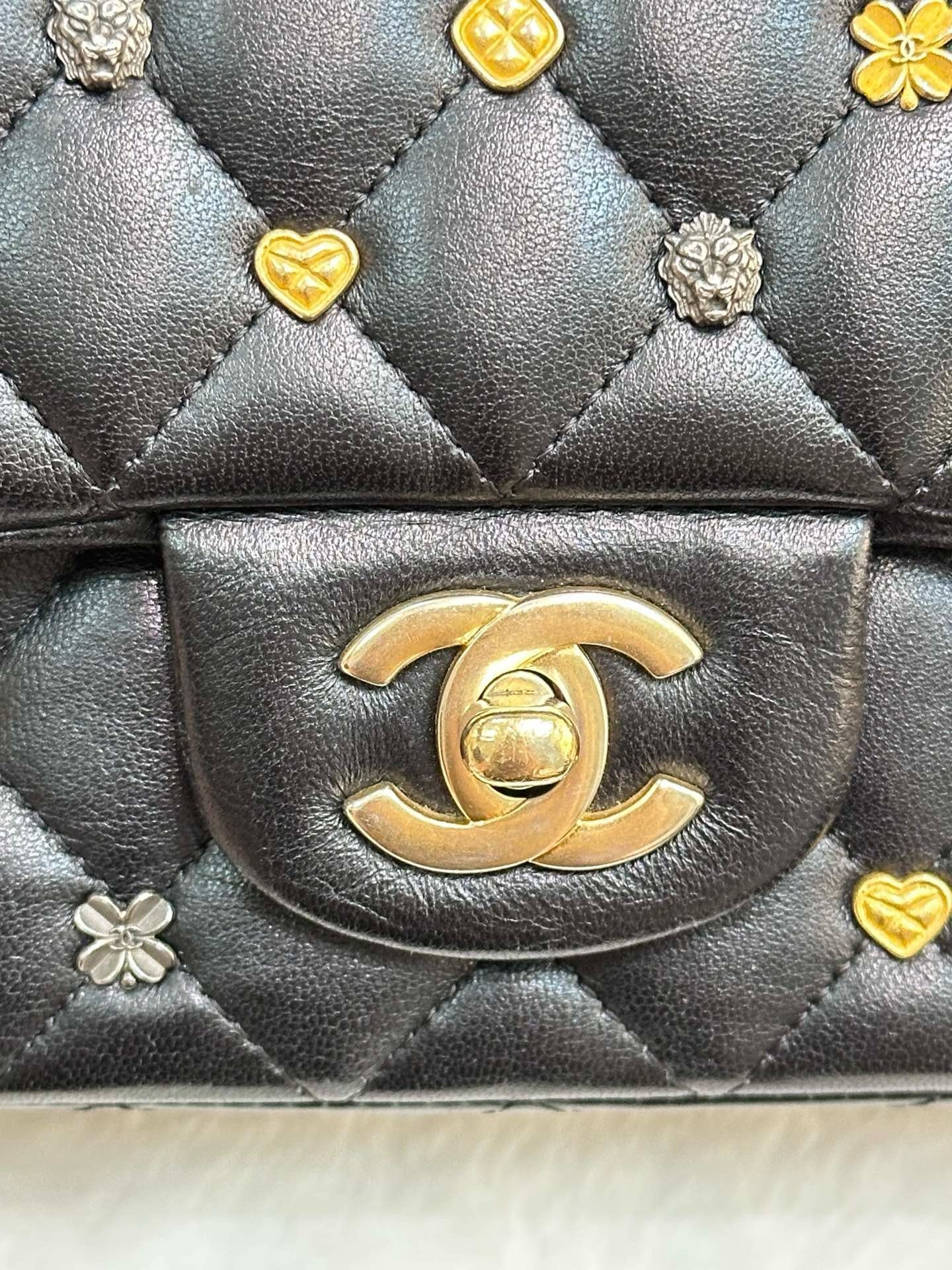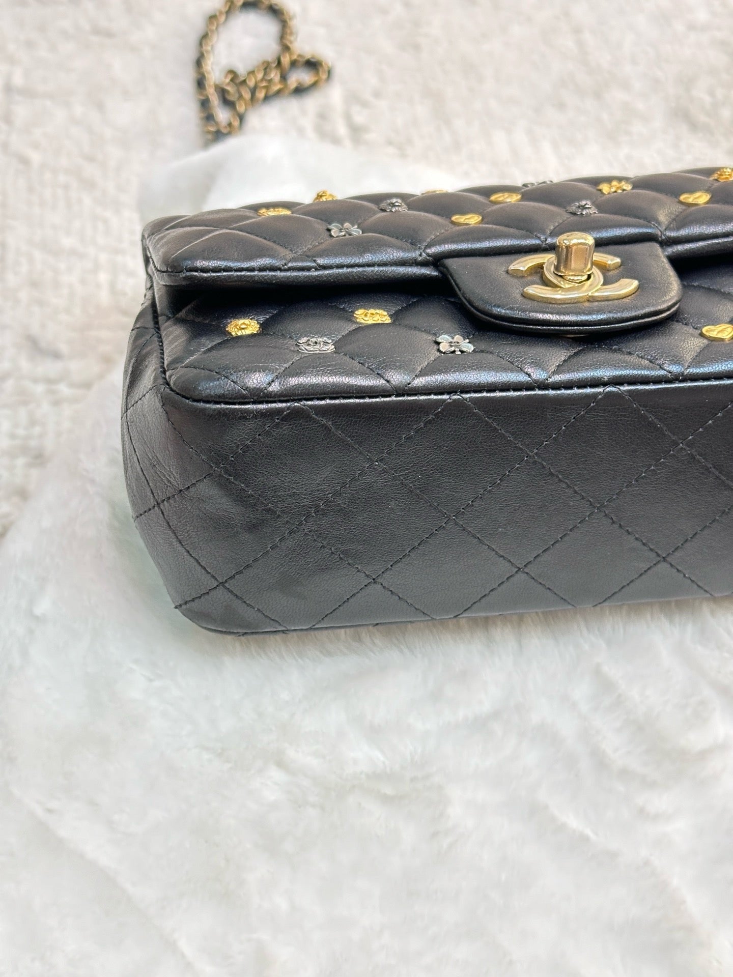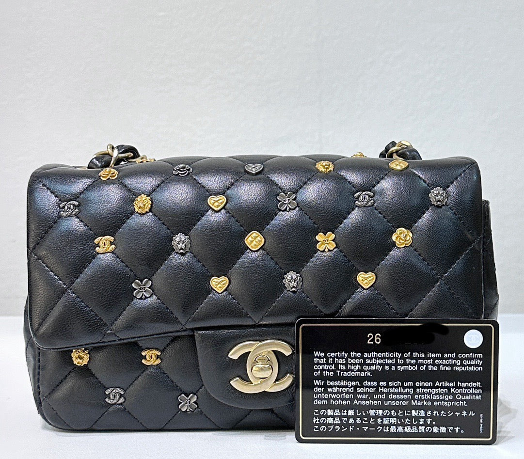 Chanel Mini Rectangular Lambskin Quilted Studded Flap Black