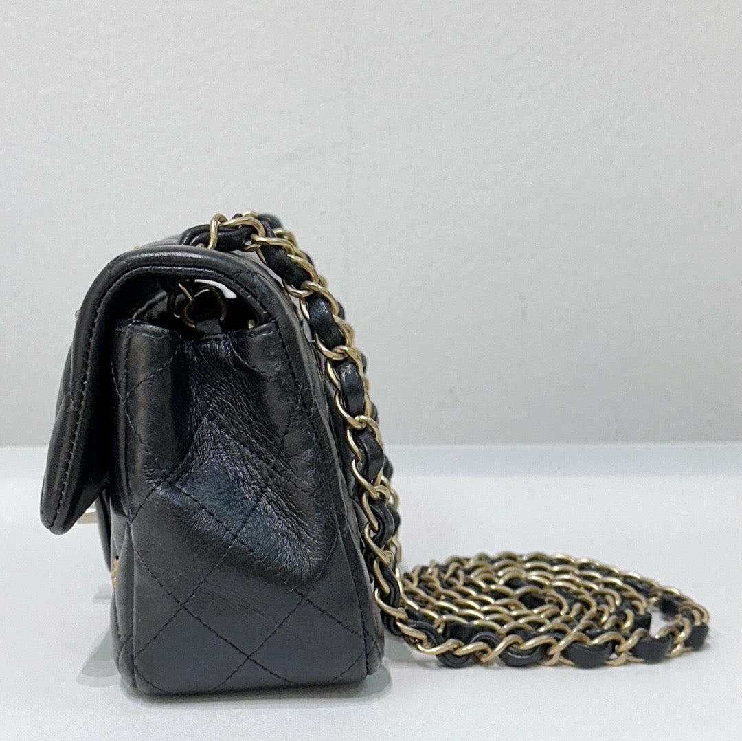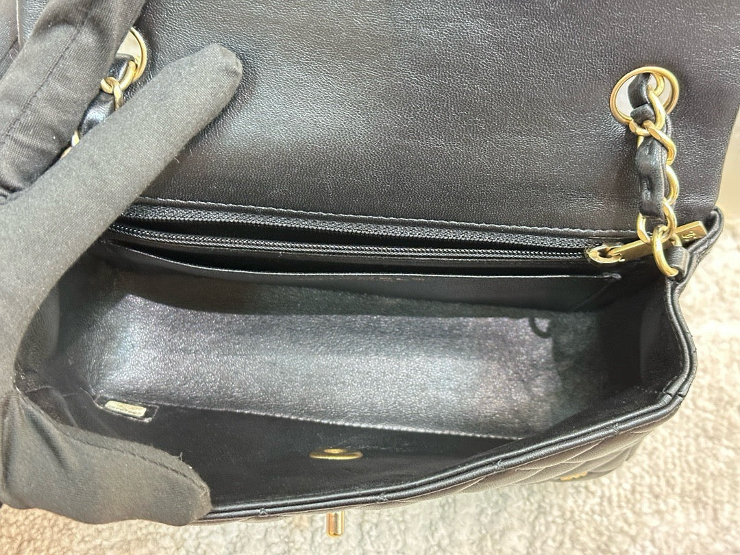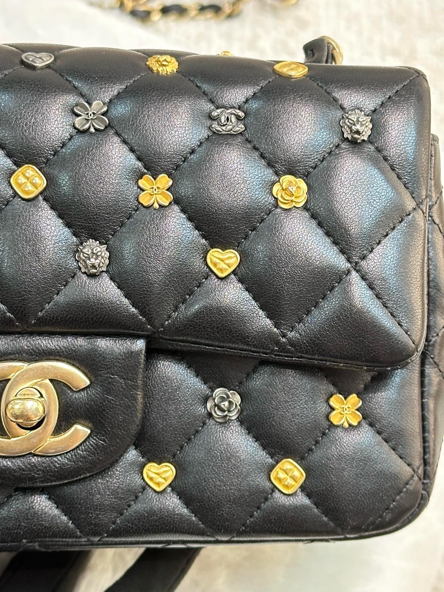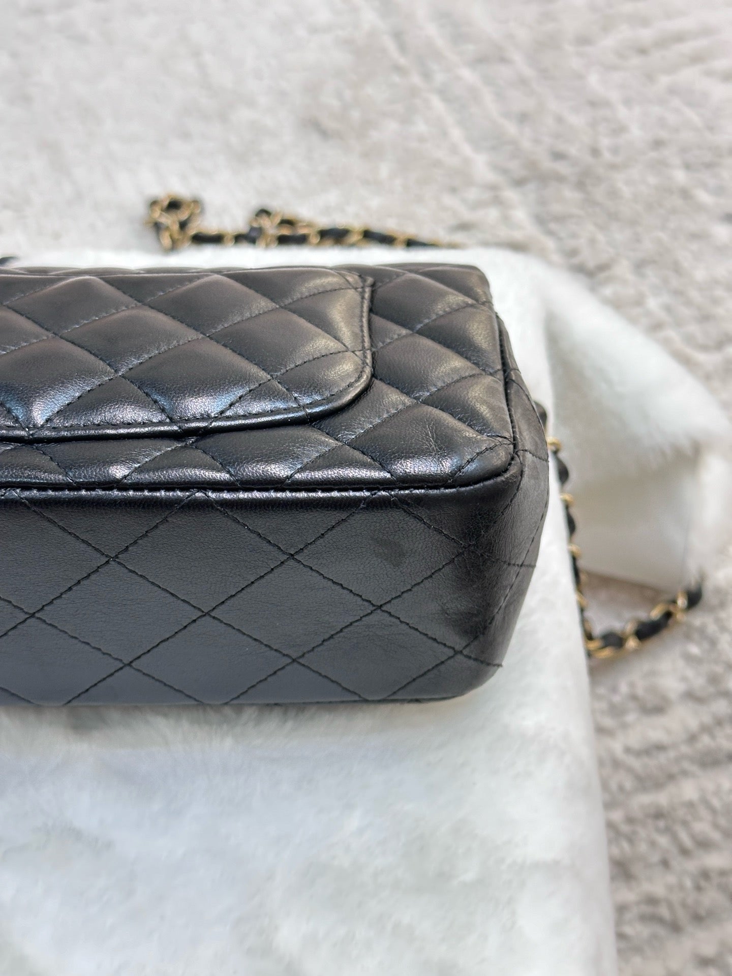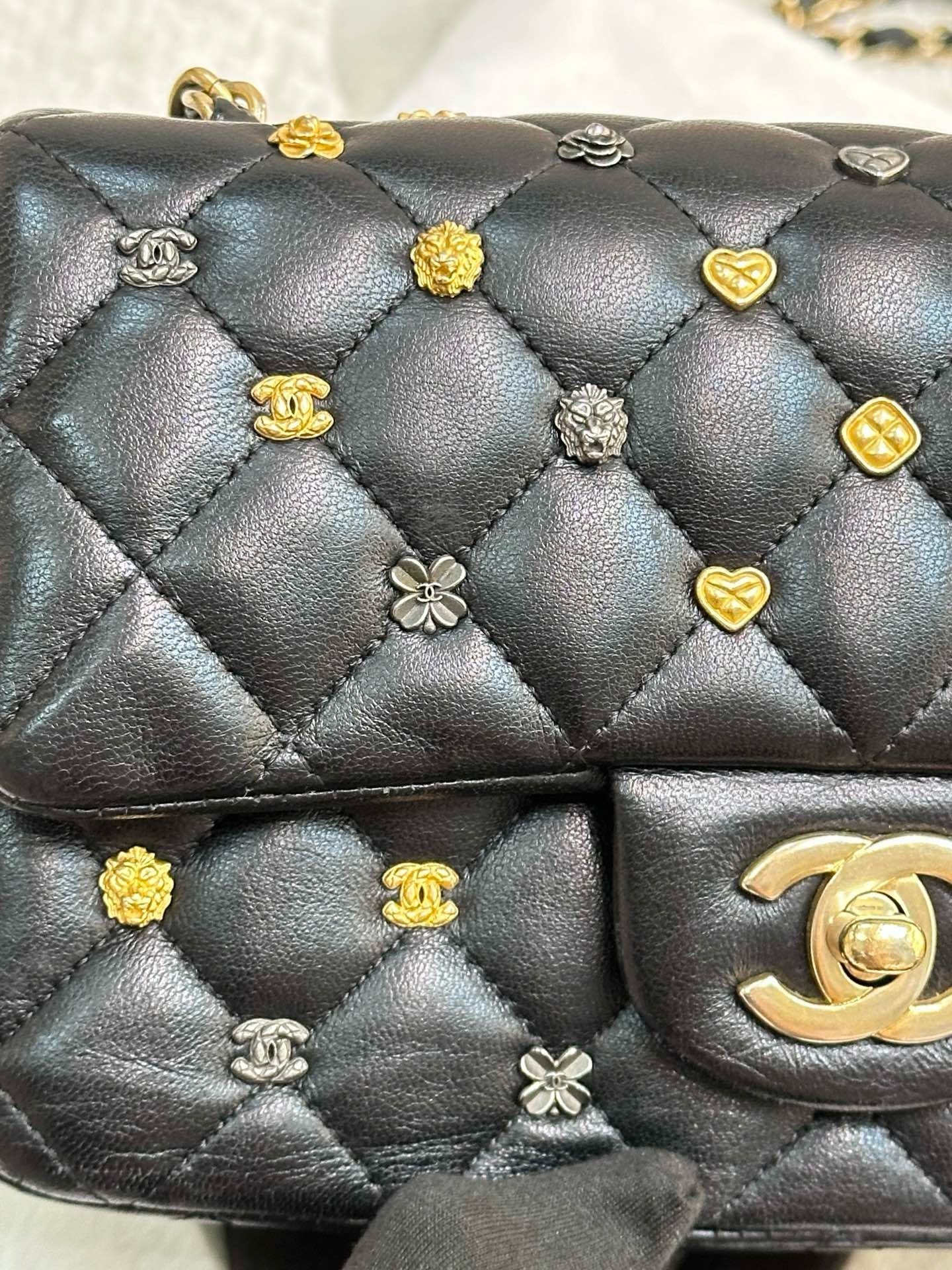 Chanel Mini Rectangular Lambskin Quilted Studded Flap Black