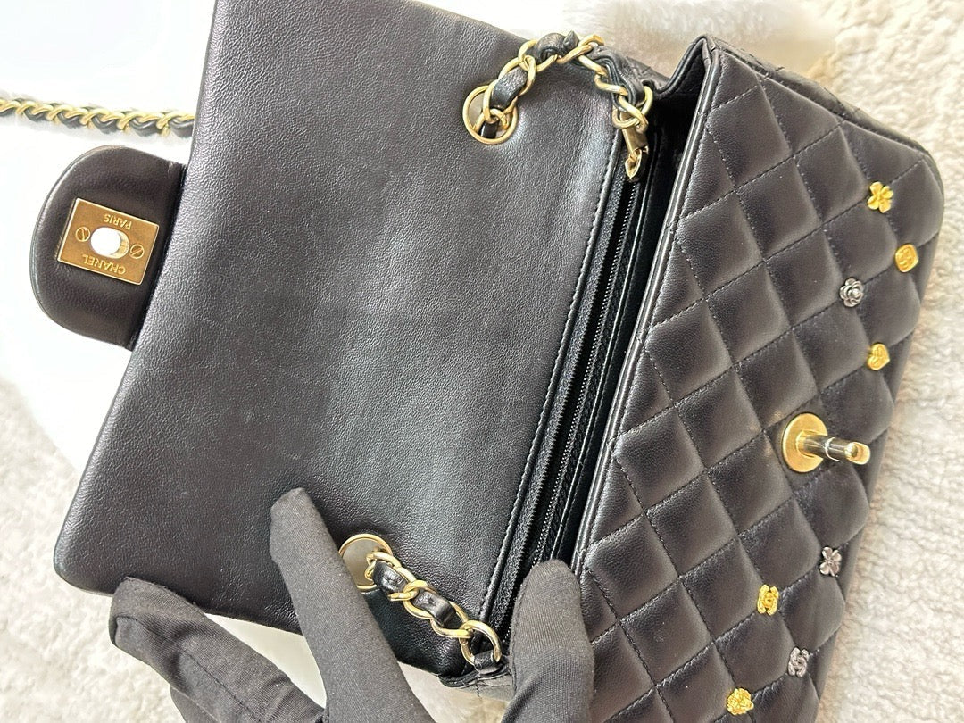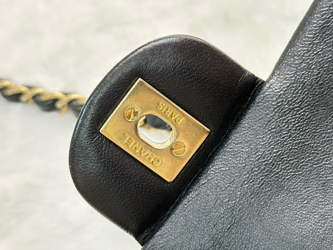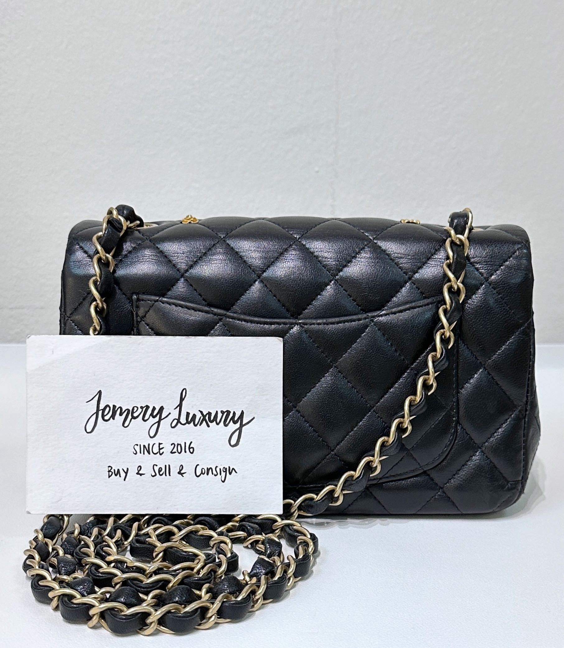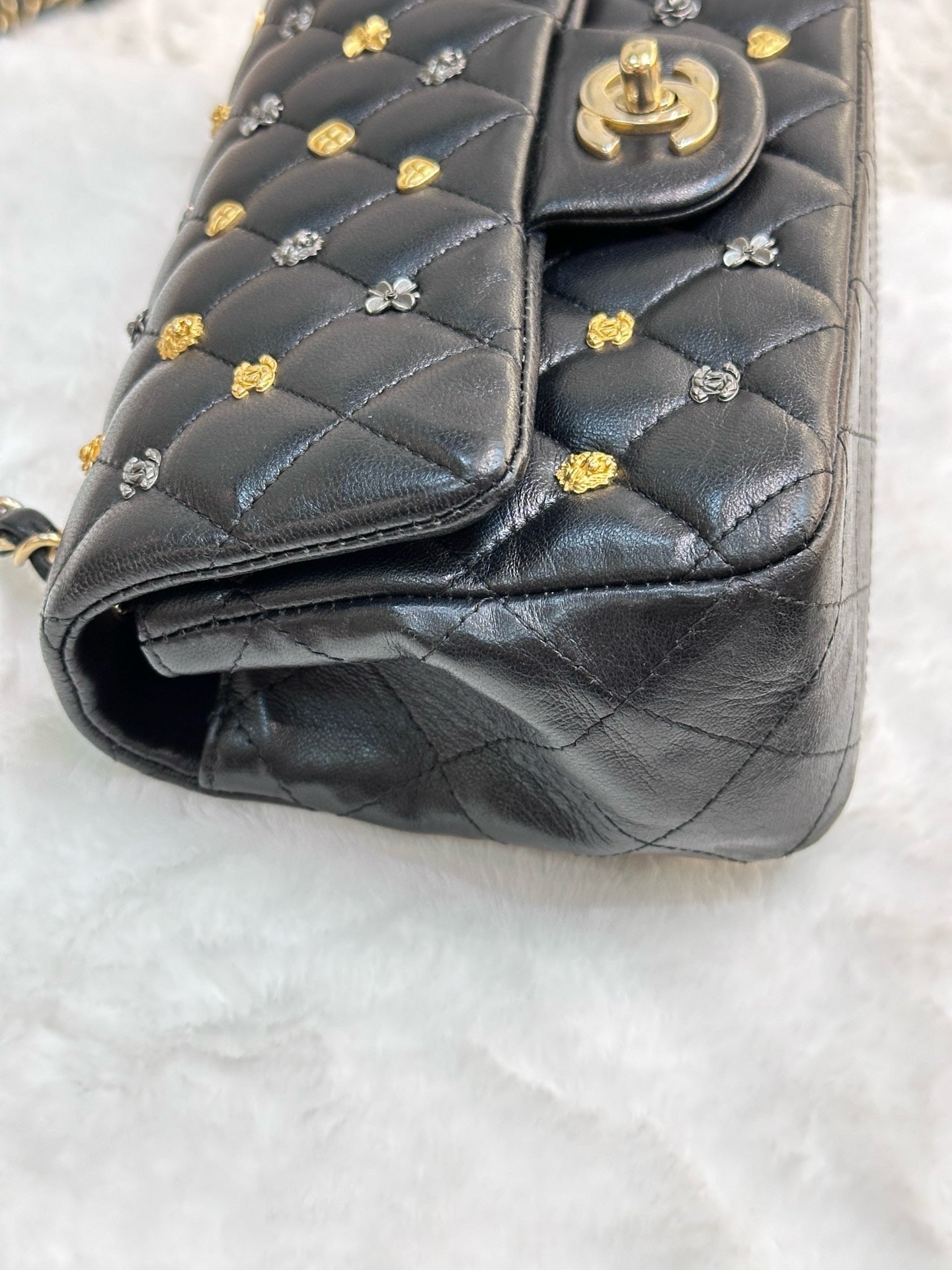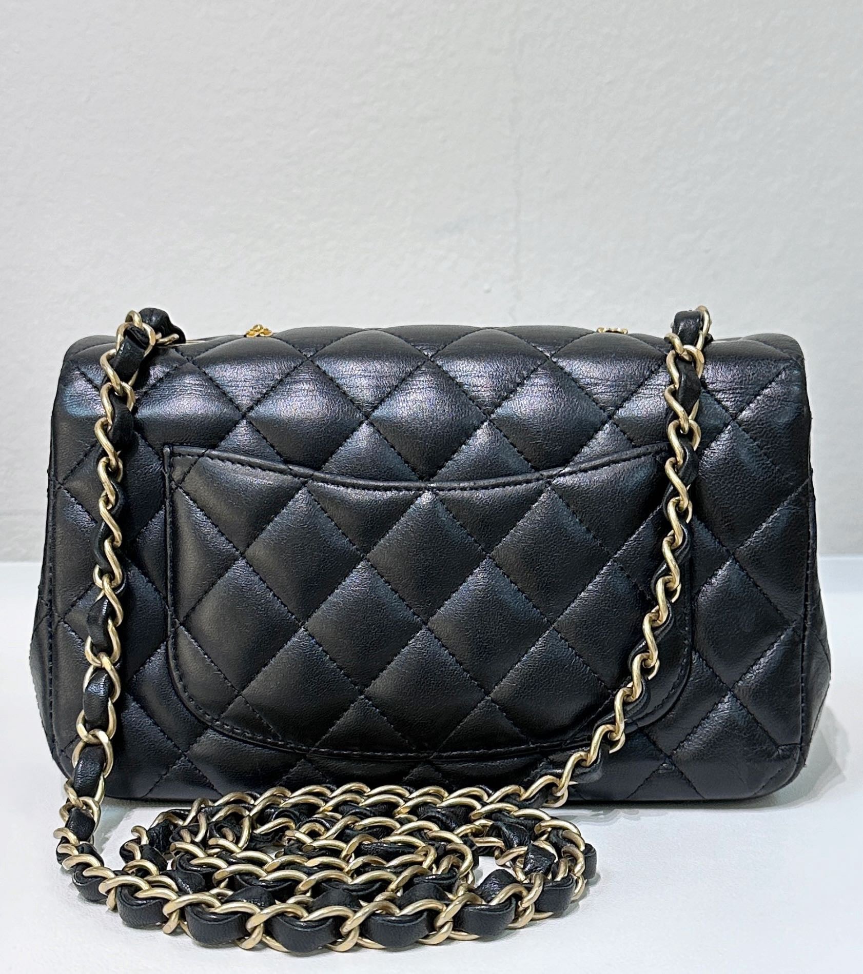 Chanel Mini Rectangular Lambskin Quilted Studded Flap Black