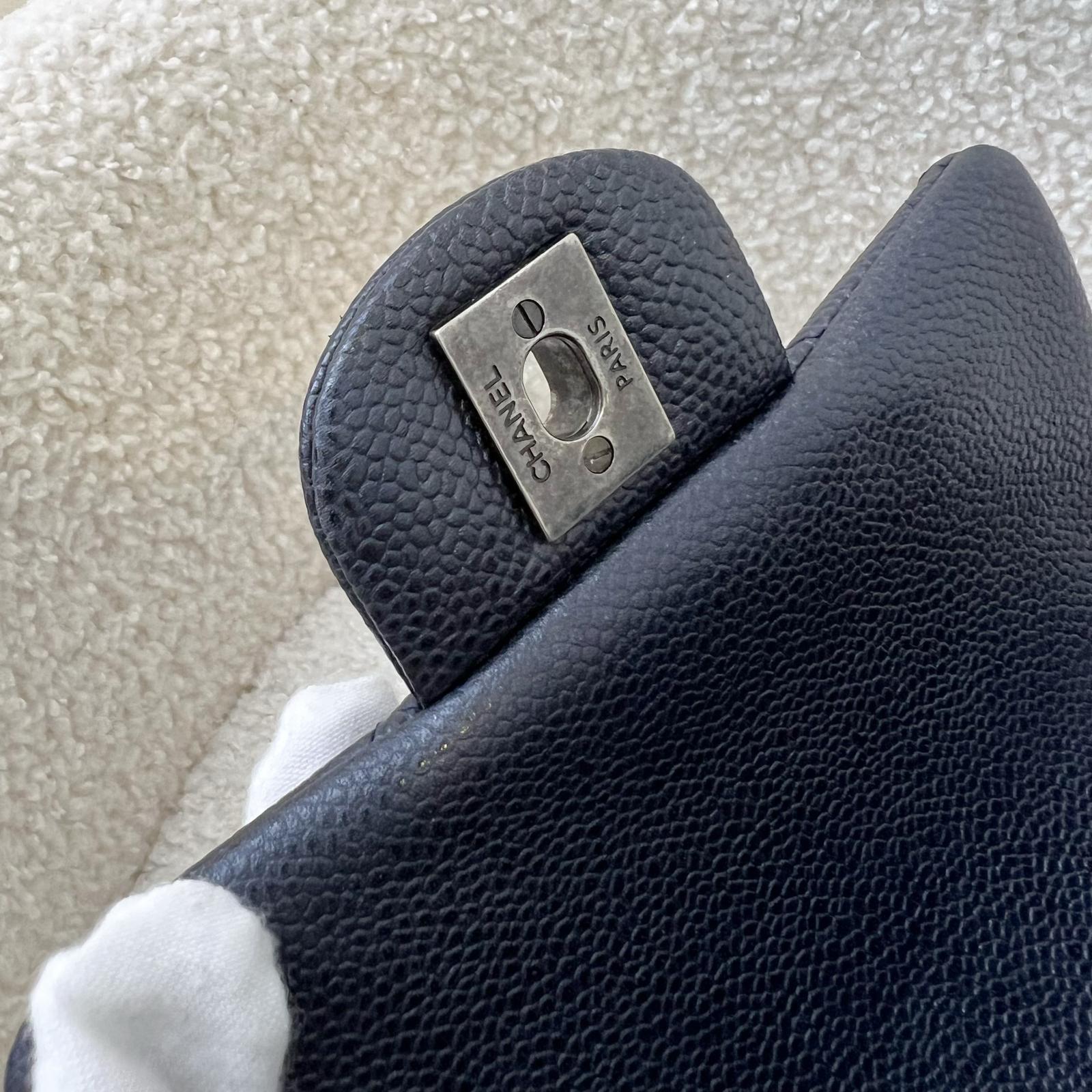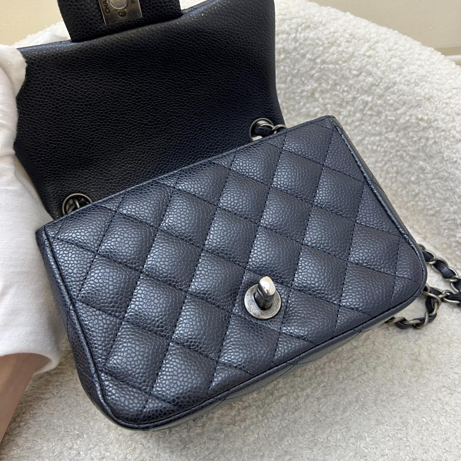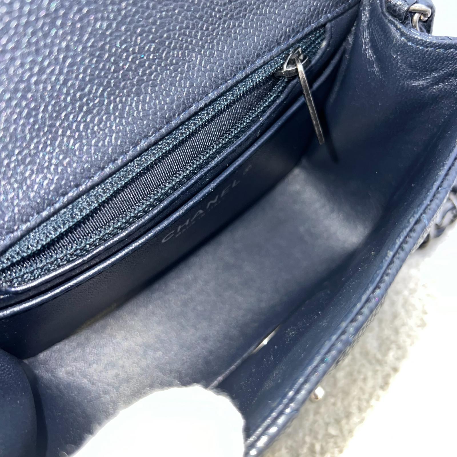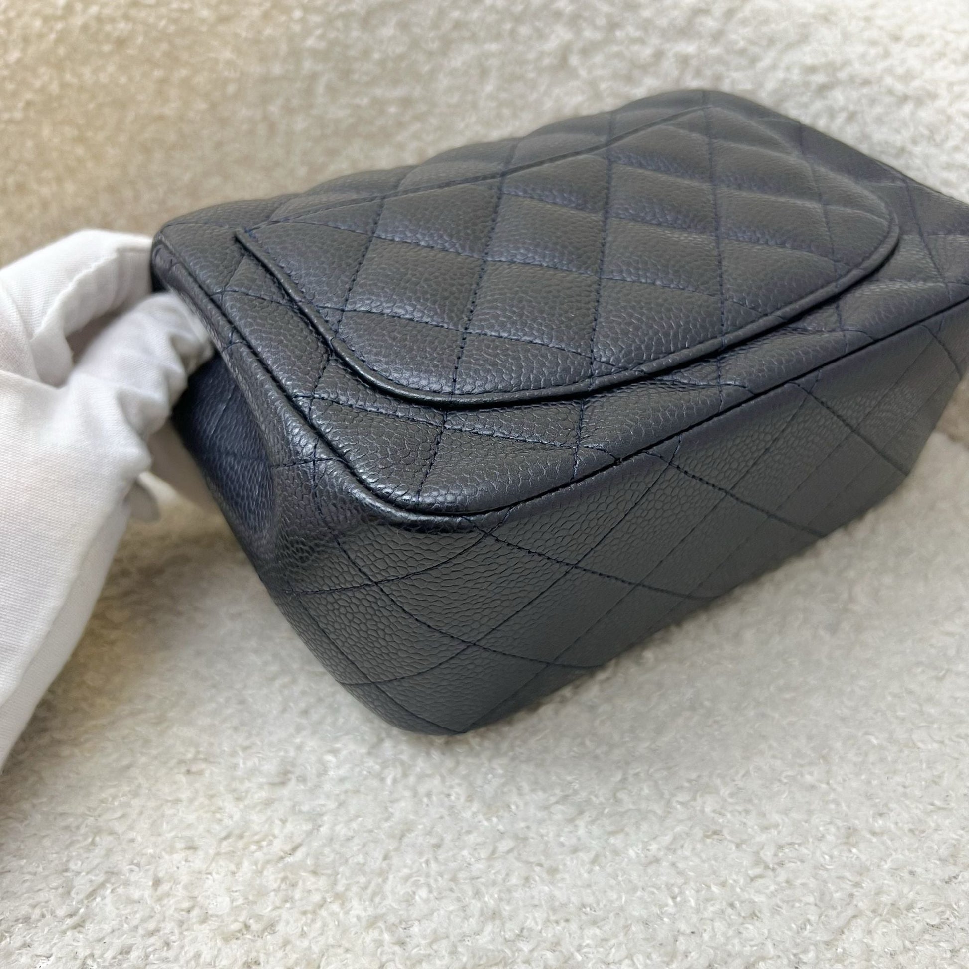 Chanel Classic Mini Square Flap in Navy Blue (Almost Black) Caviar and RHW
