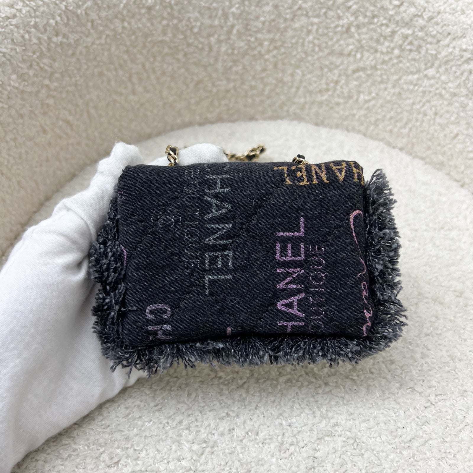 Chanel 22P Waist Bag / Clutch on Chain in Black Printed Denim and GHW