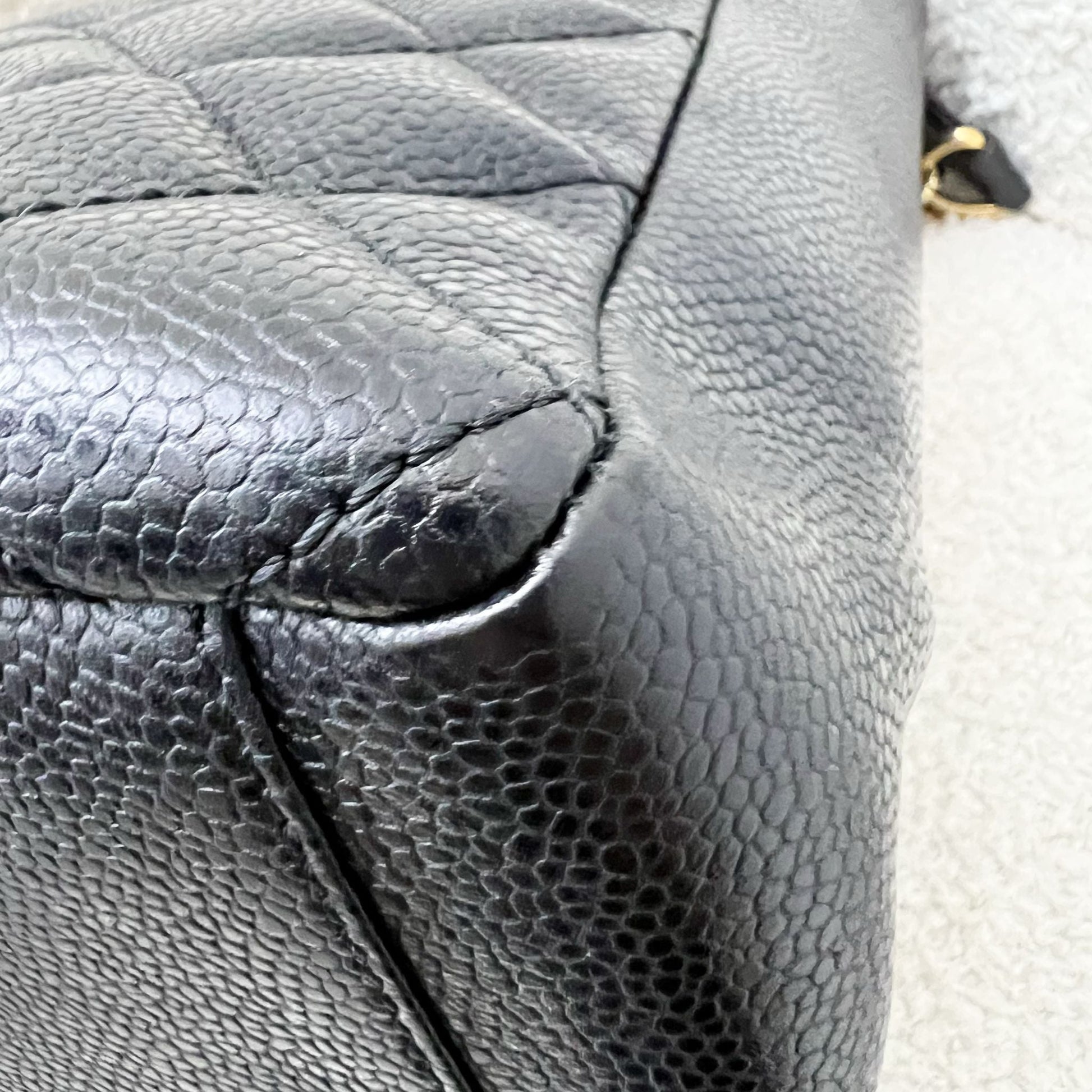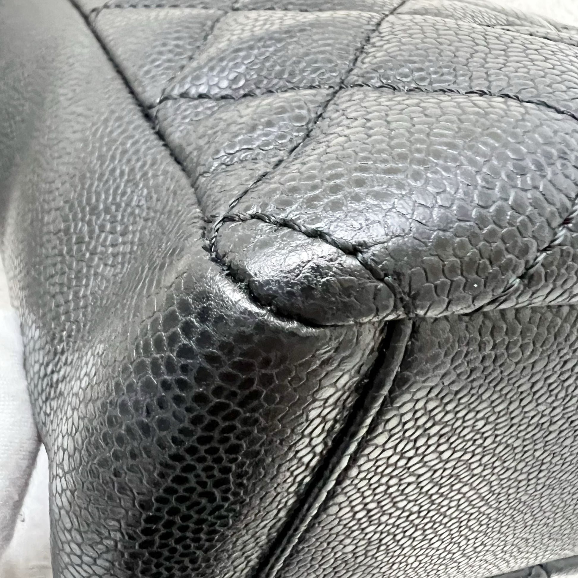 A similar size leather tote is retailing at about $6500 in boutiques currently. This model is very rare and hardly comes by! Gorgeous black caviar + GHW.