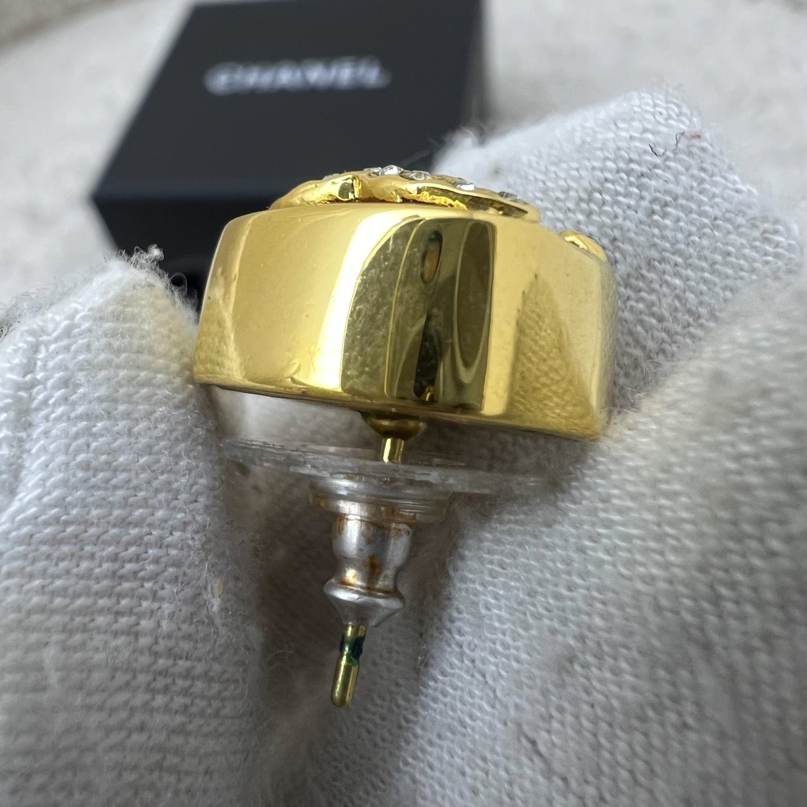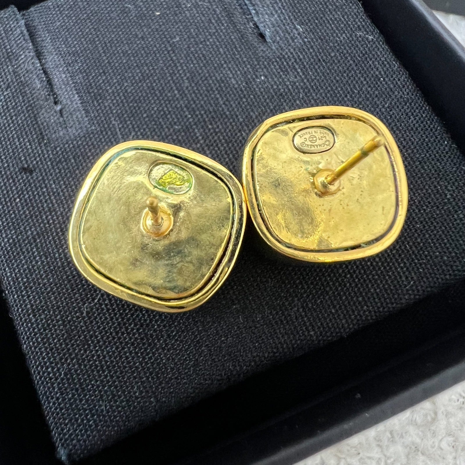 Chanel Pink Square Resin and Diamantés CC Logo Earrings in GHW