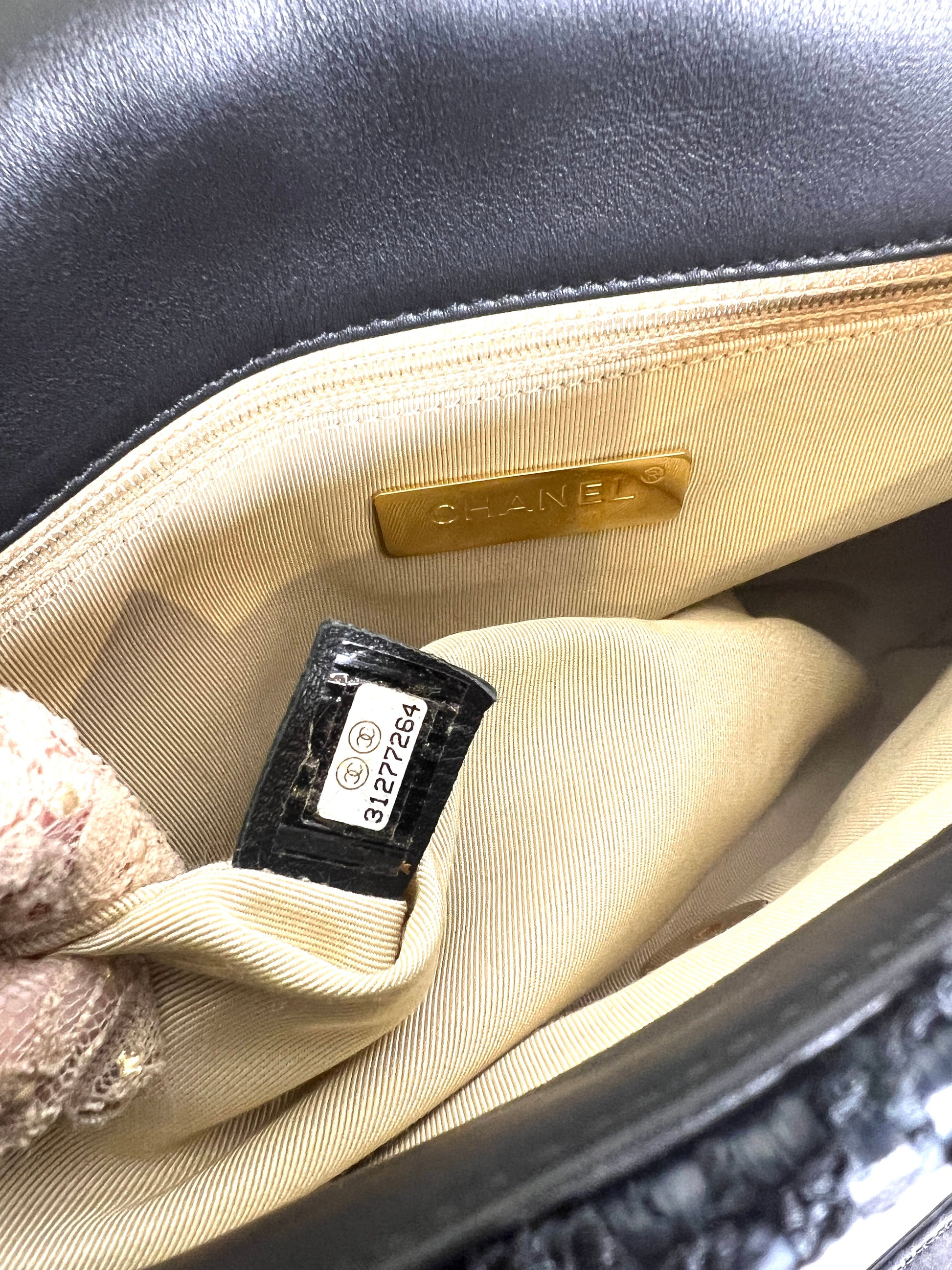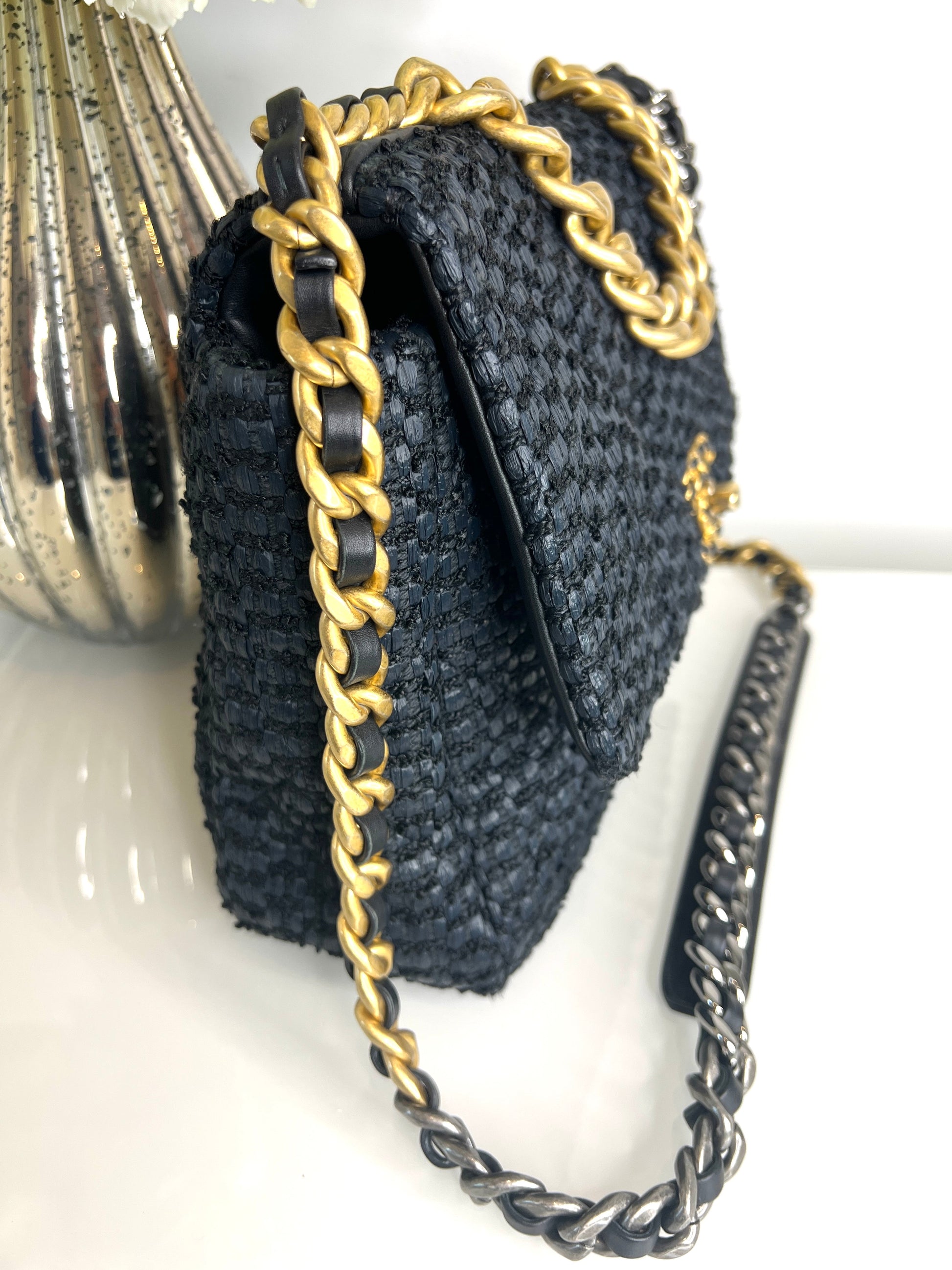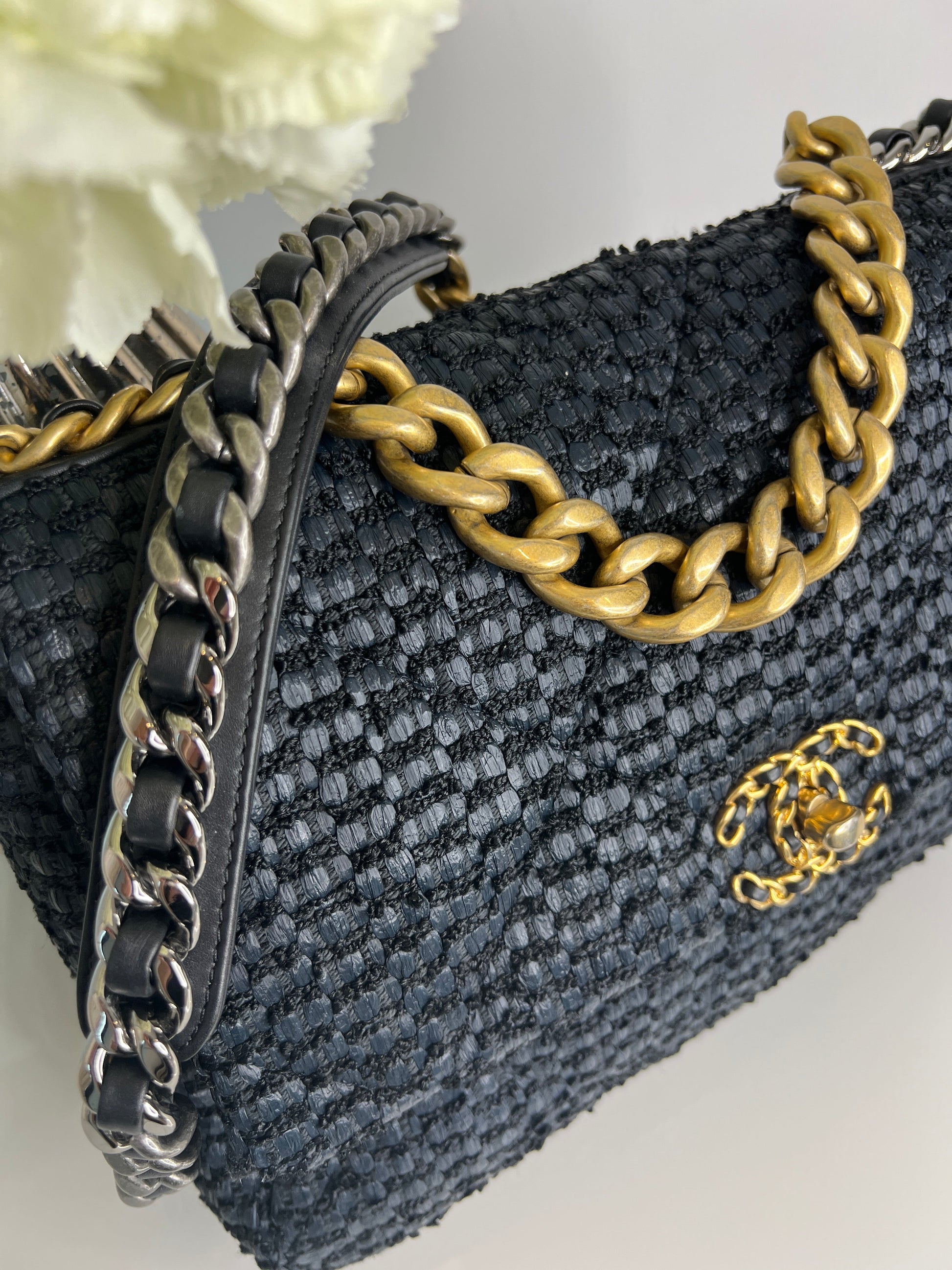 Chanel Preloved Large Chanel 19 Navy Raffia Tweed Flap Bag