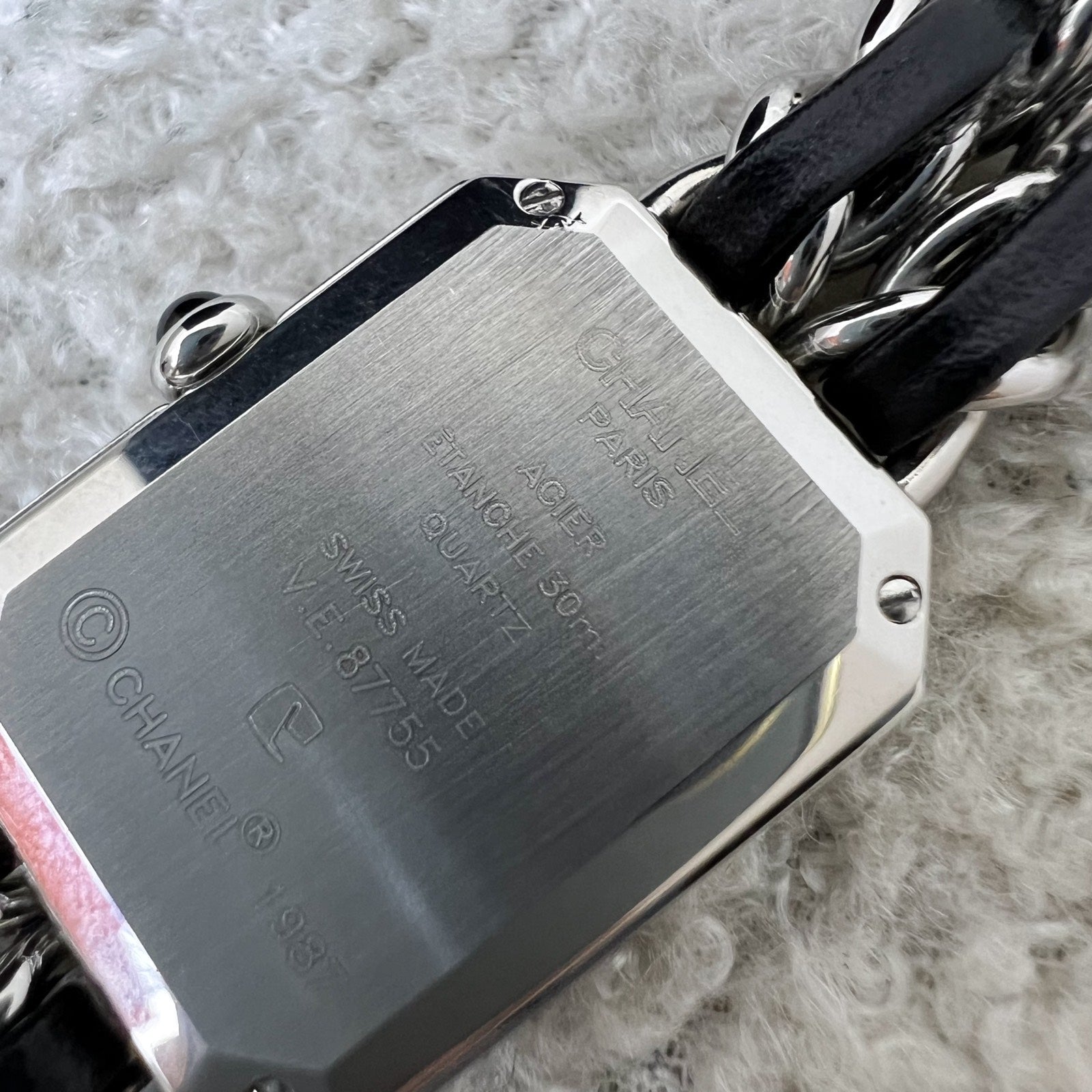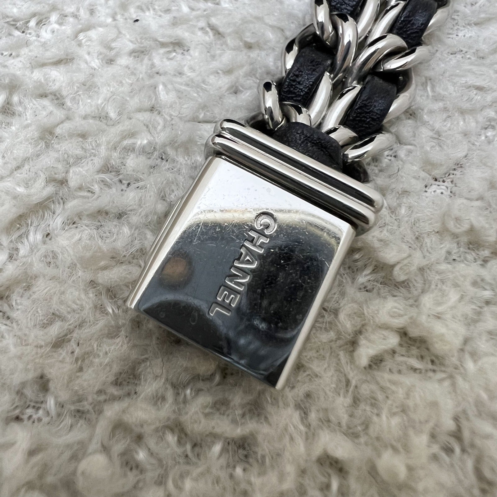 Chanel Premiere Watch in Silver Tone Steel Hardware and Black Leather Size M (Model: H0451)