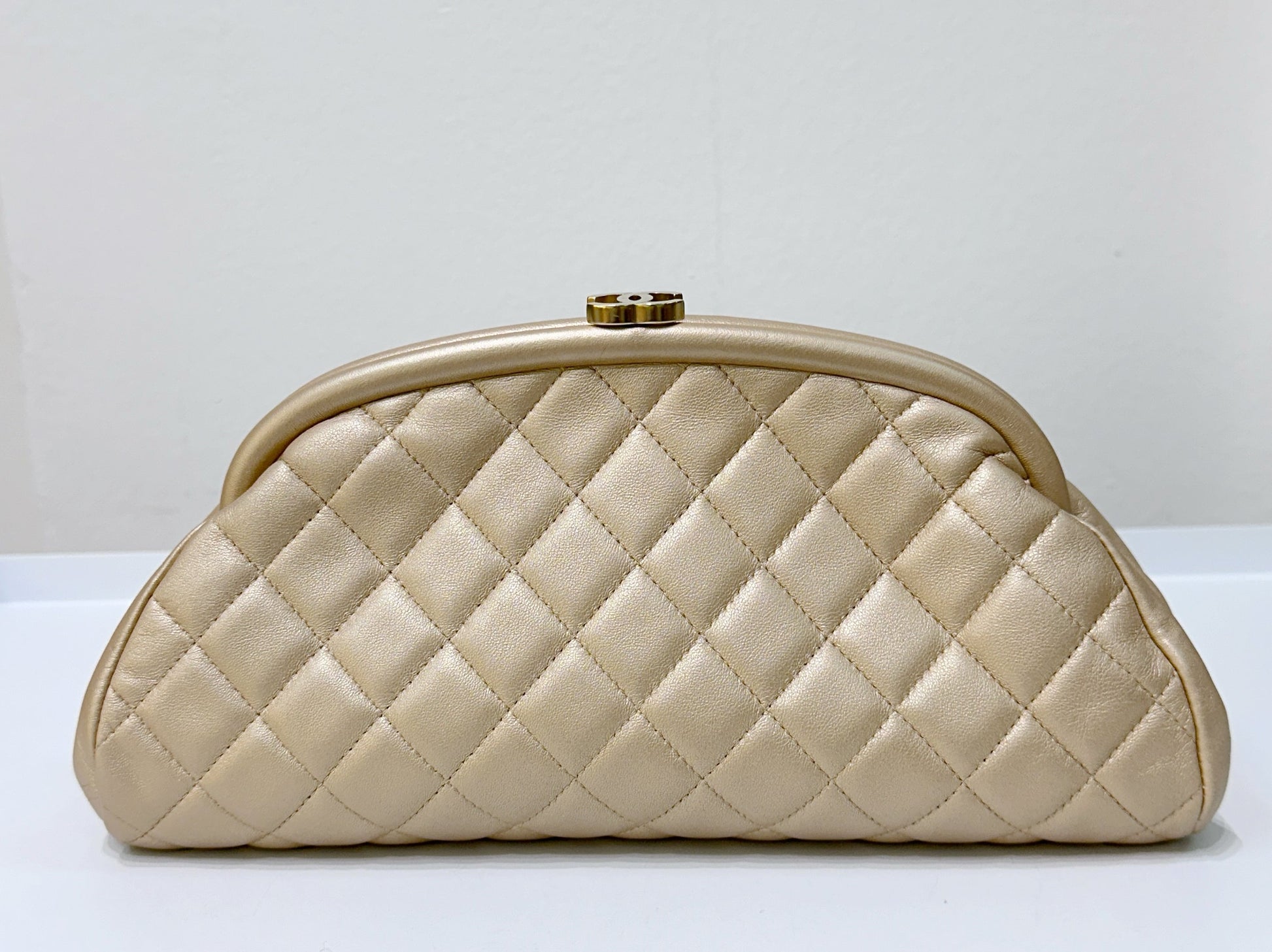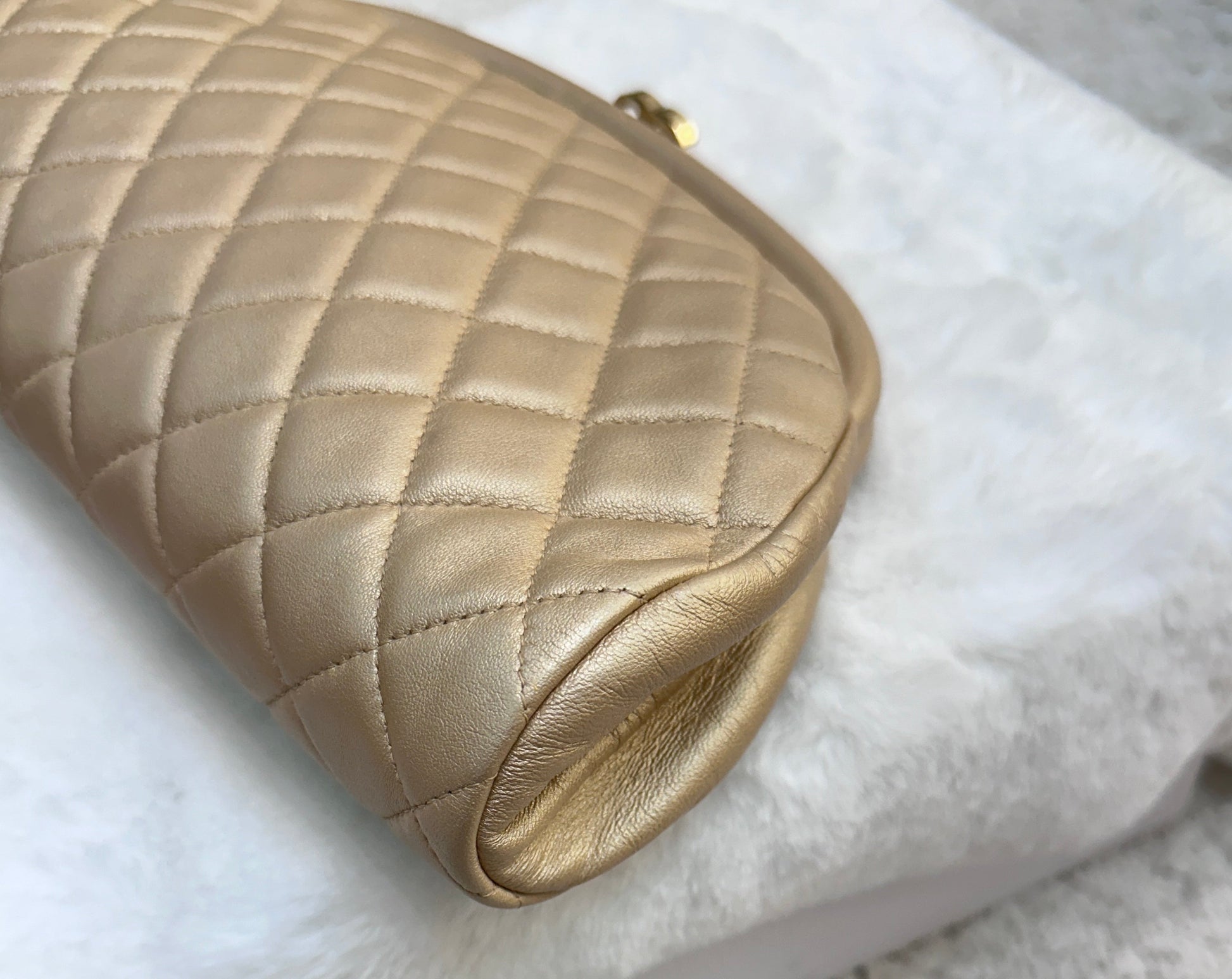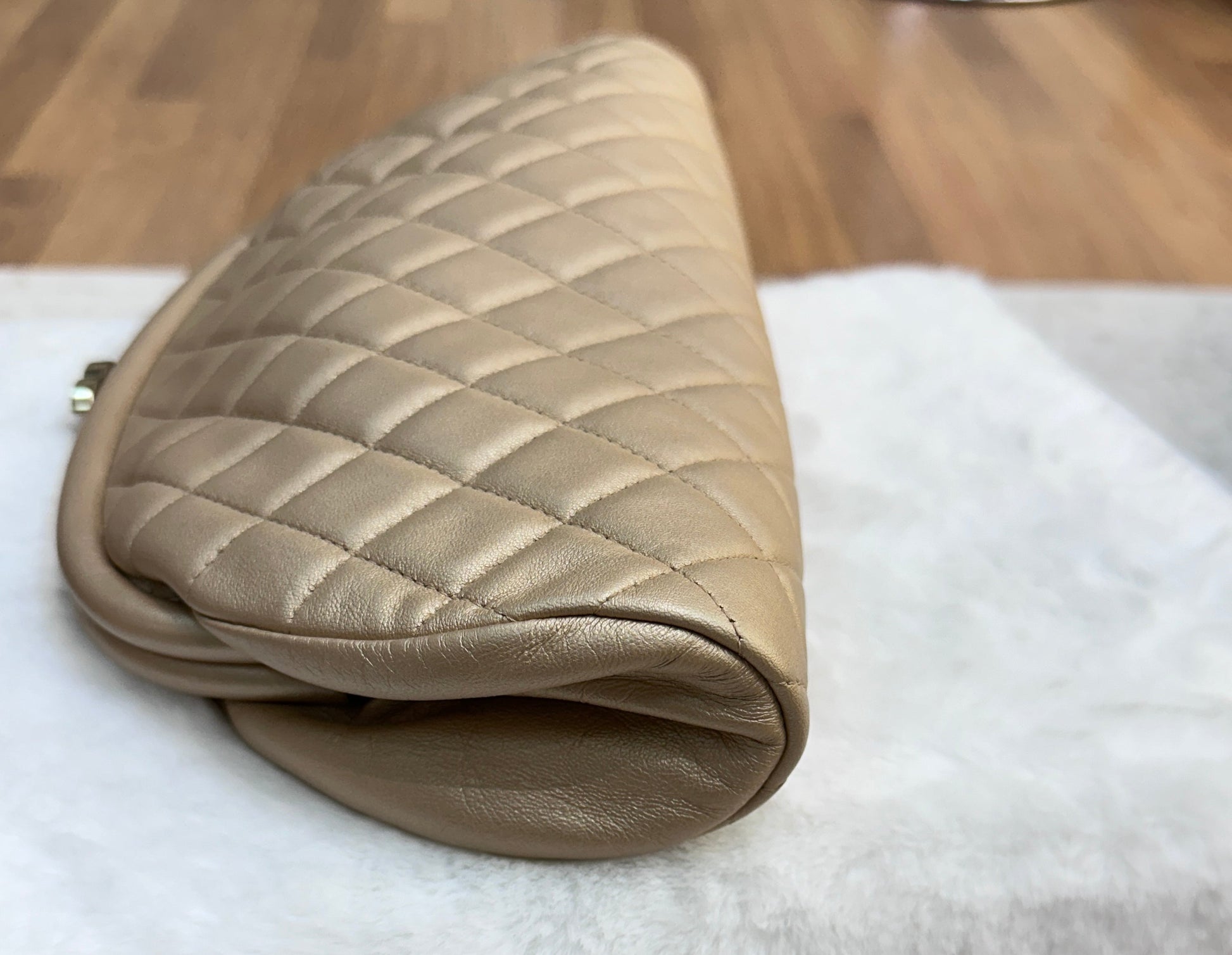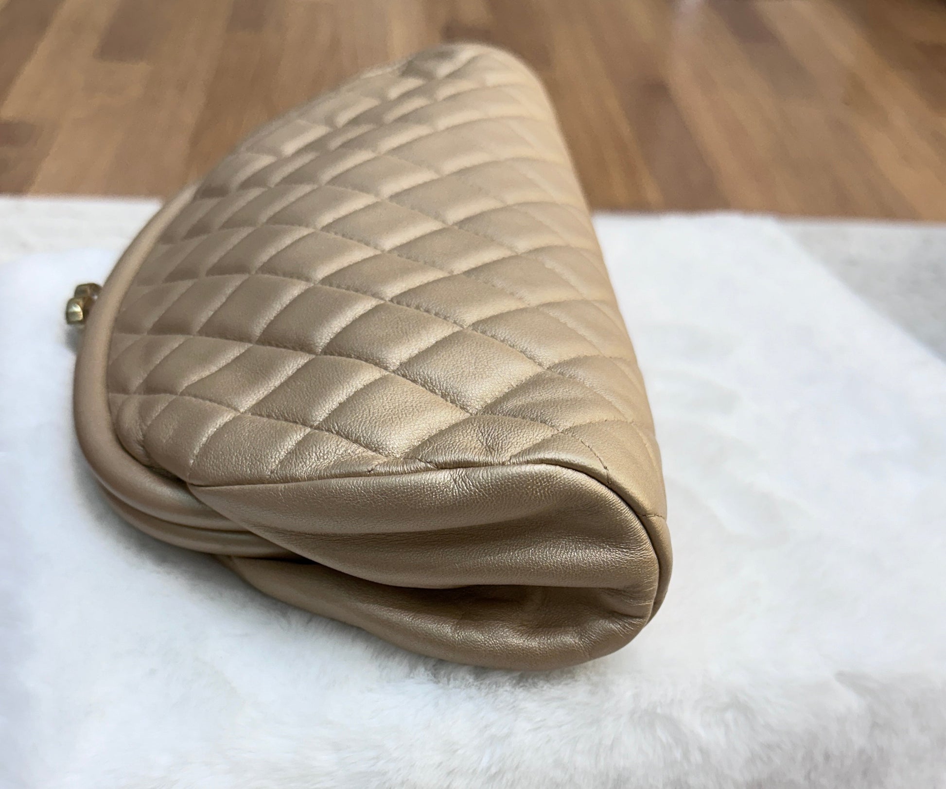 Chanel Quilted Champagne Half-Moon Clutch Bag