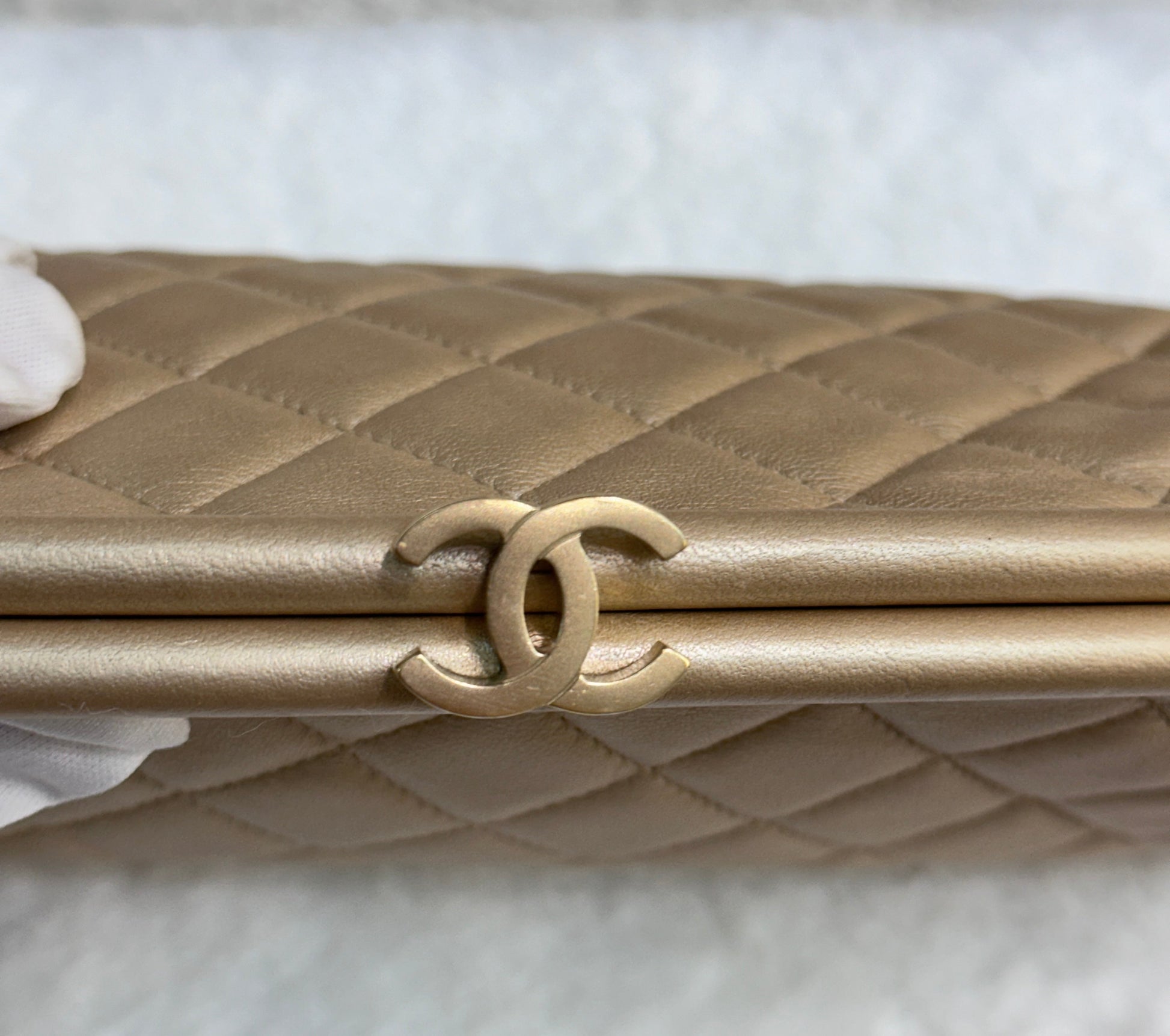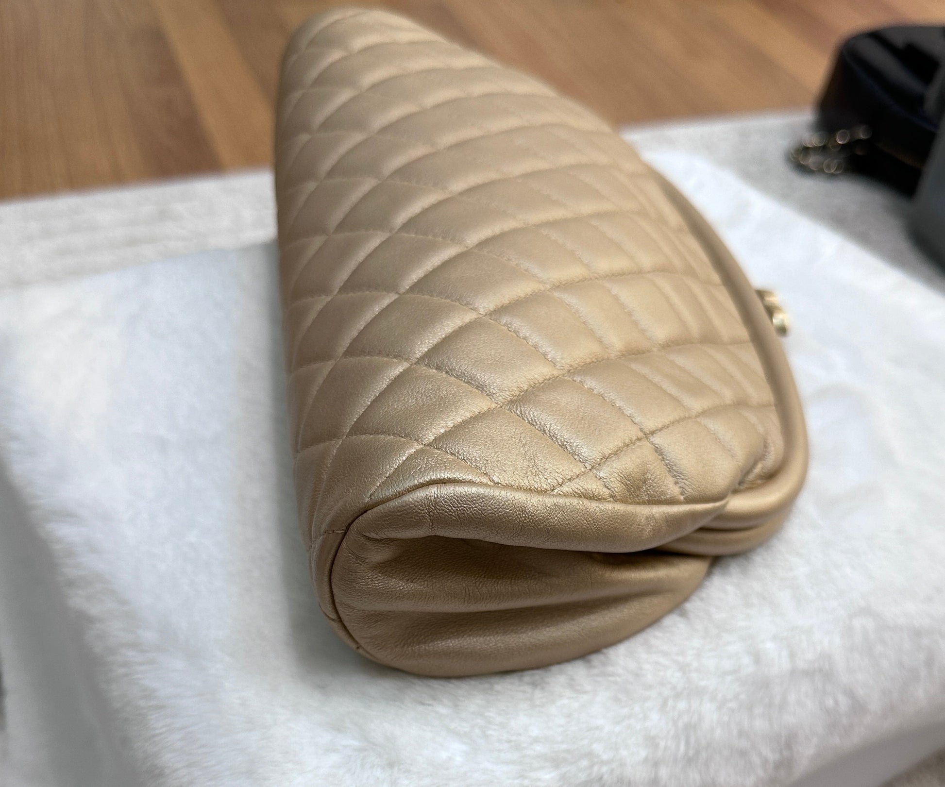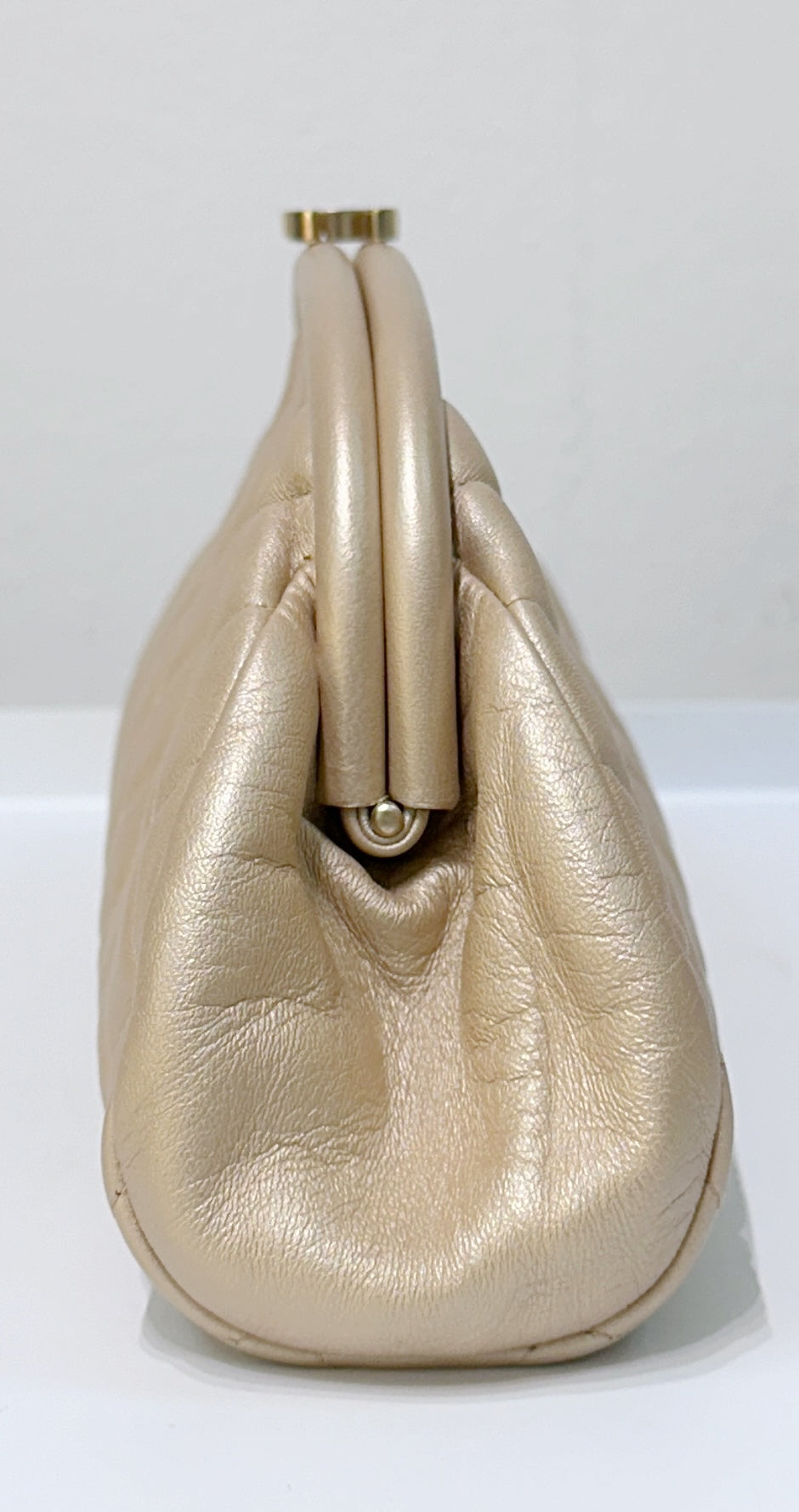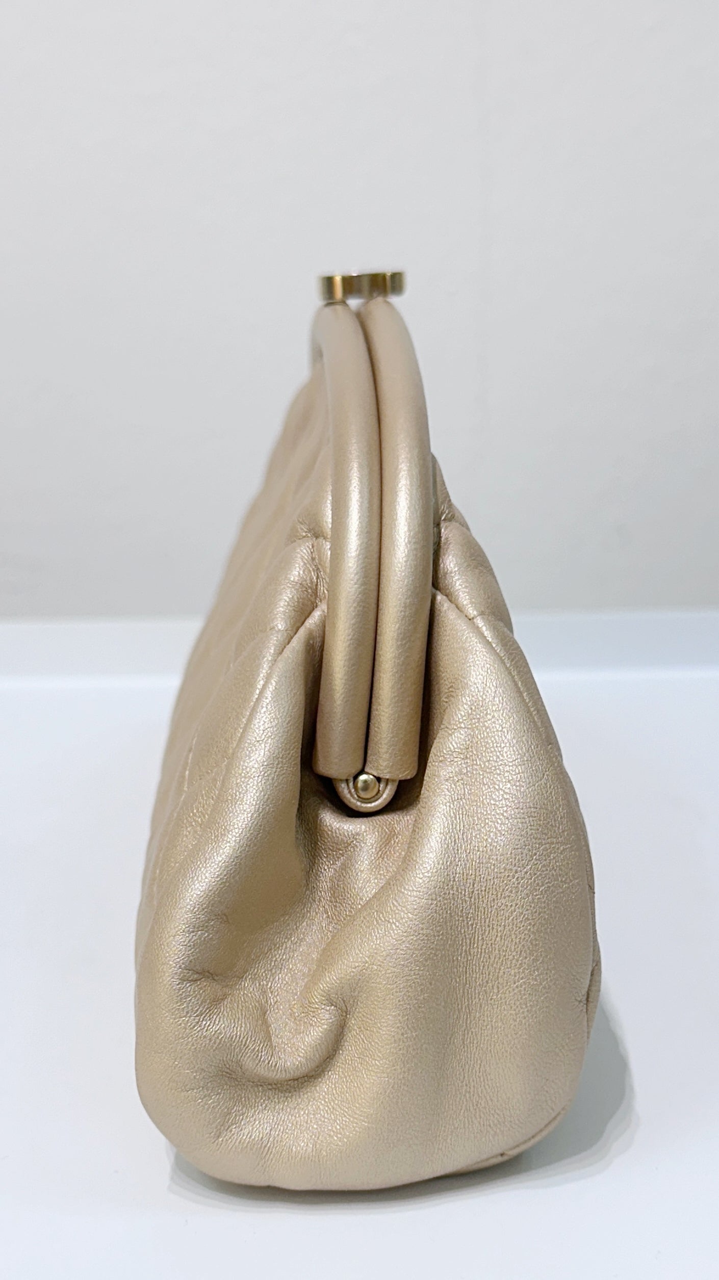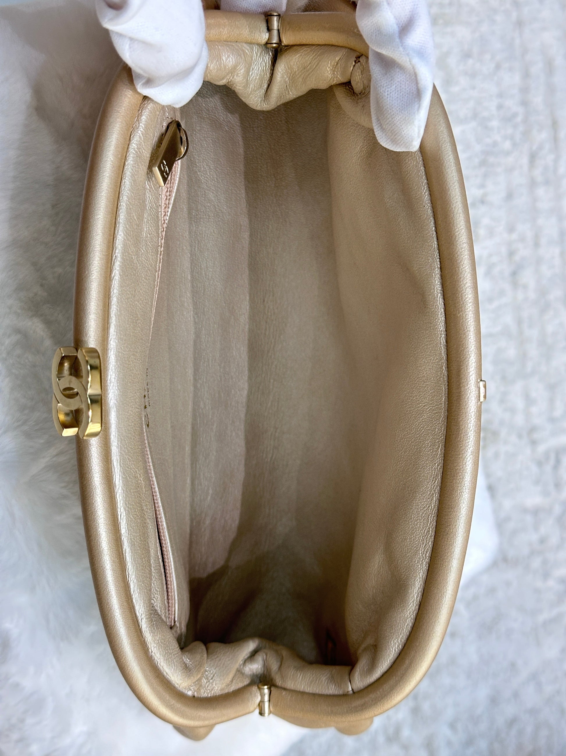 Chanel Quilted Champagne Half-Moon Clutch Bag
