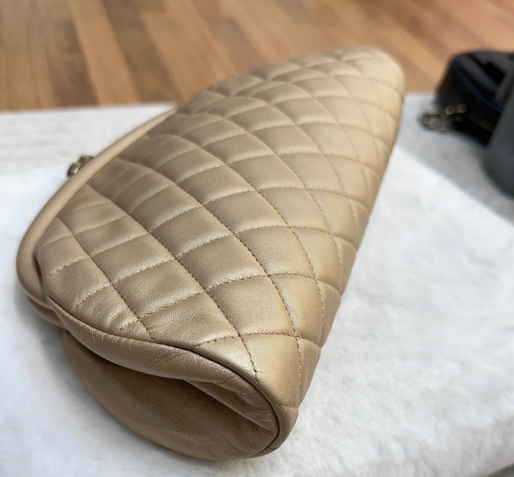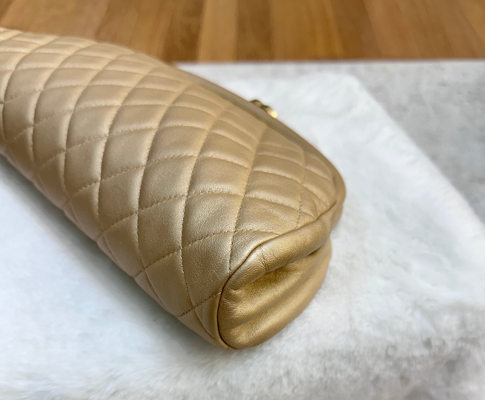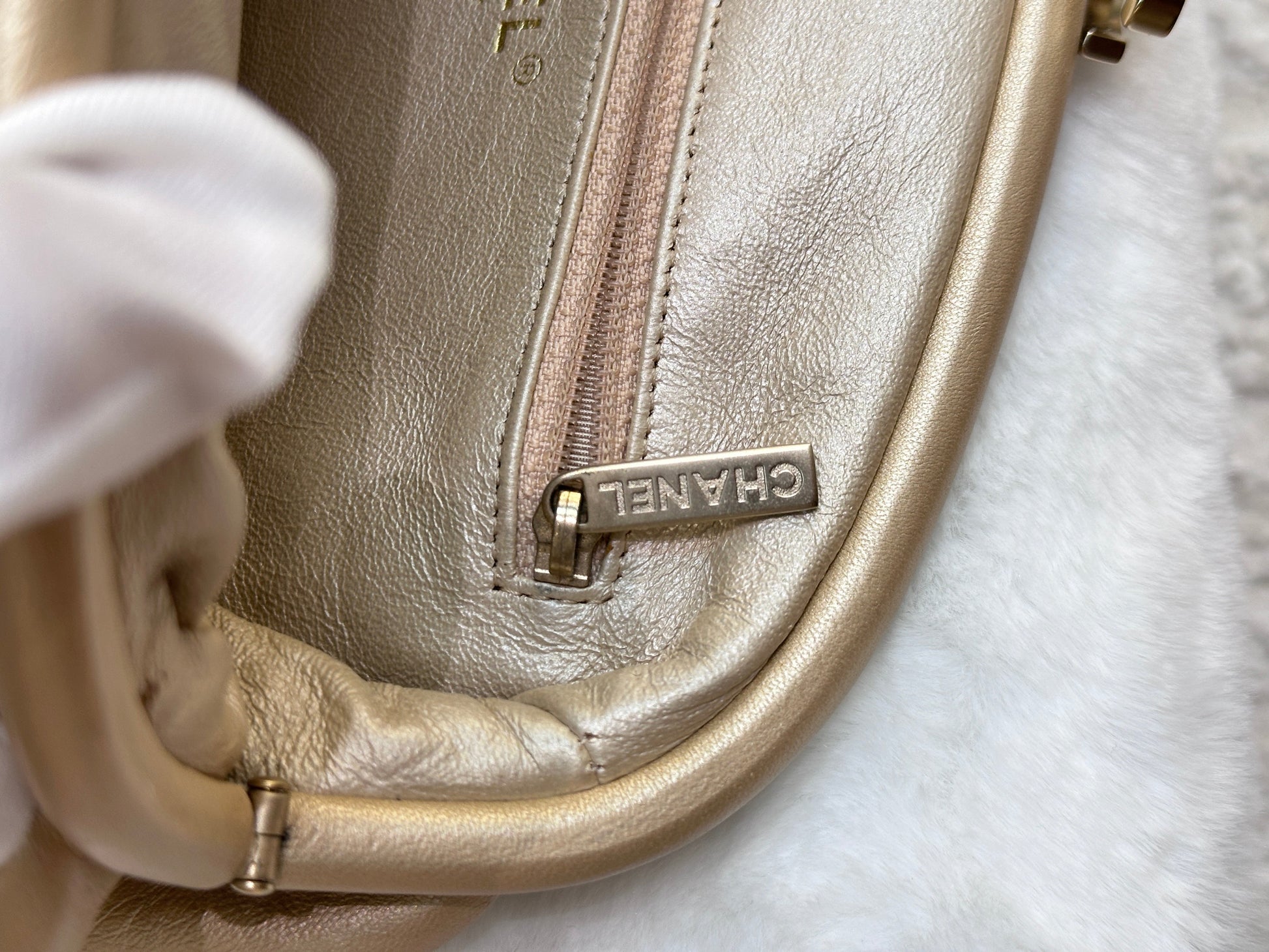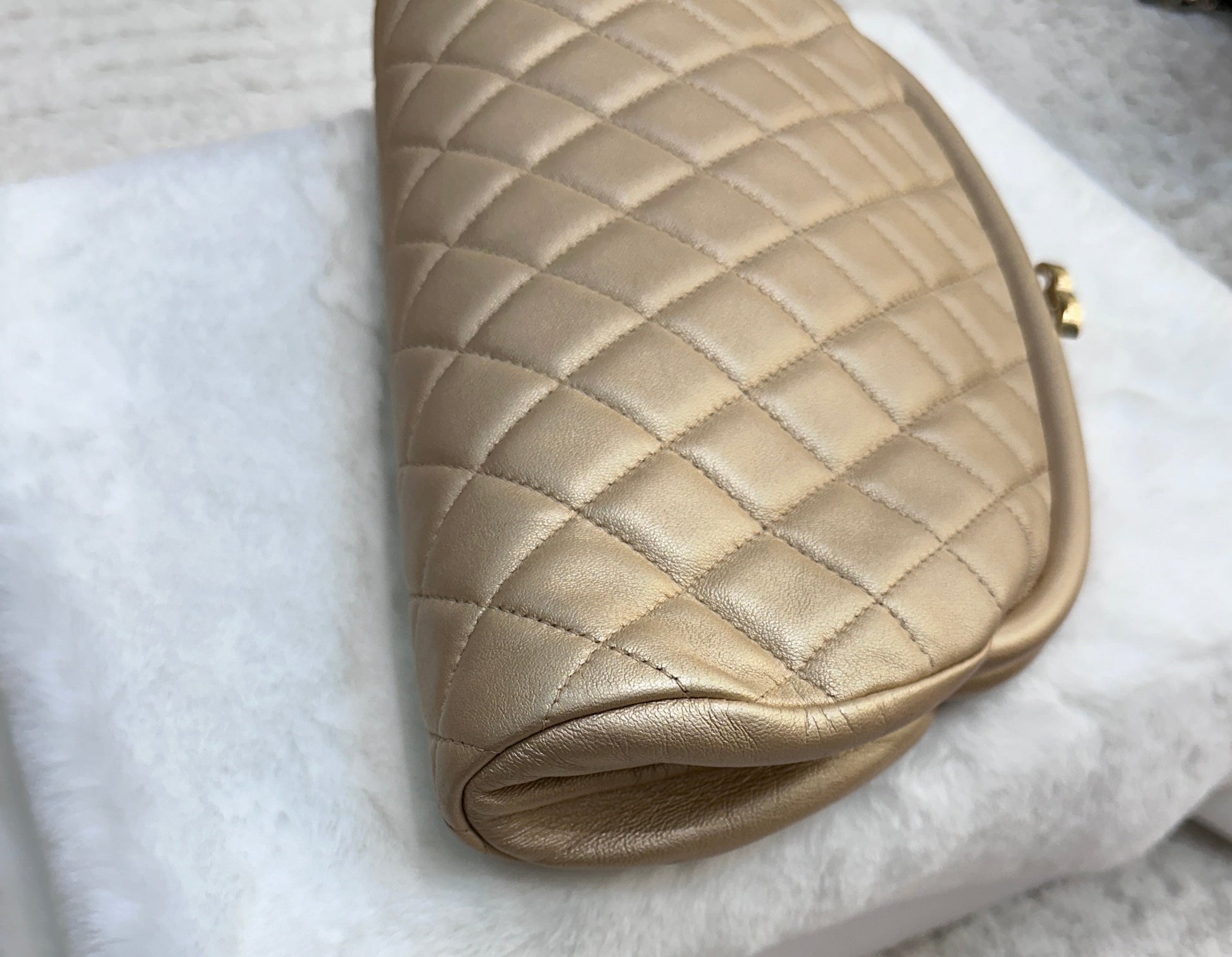 Chanel Quilted Champagne Half-Moon Clutch Bag