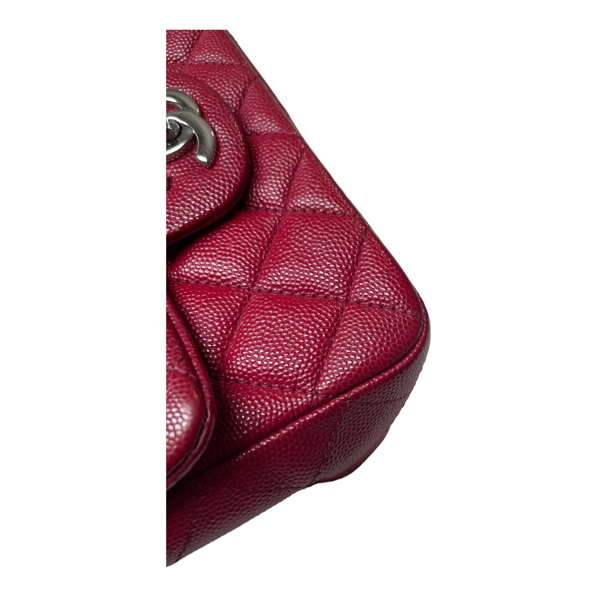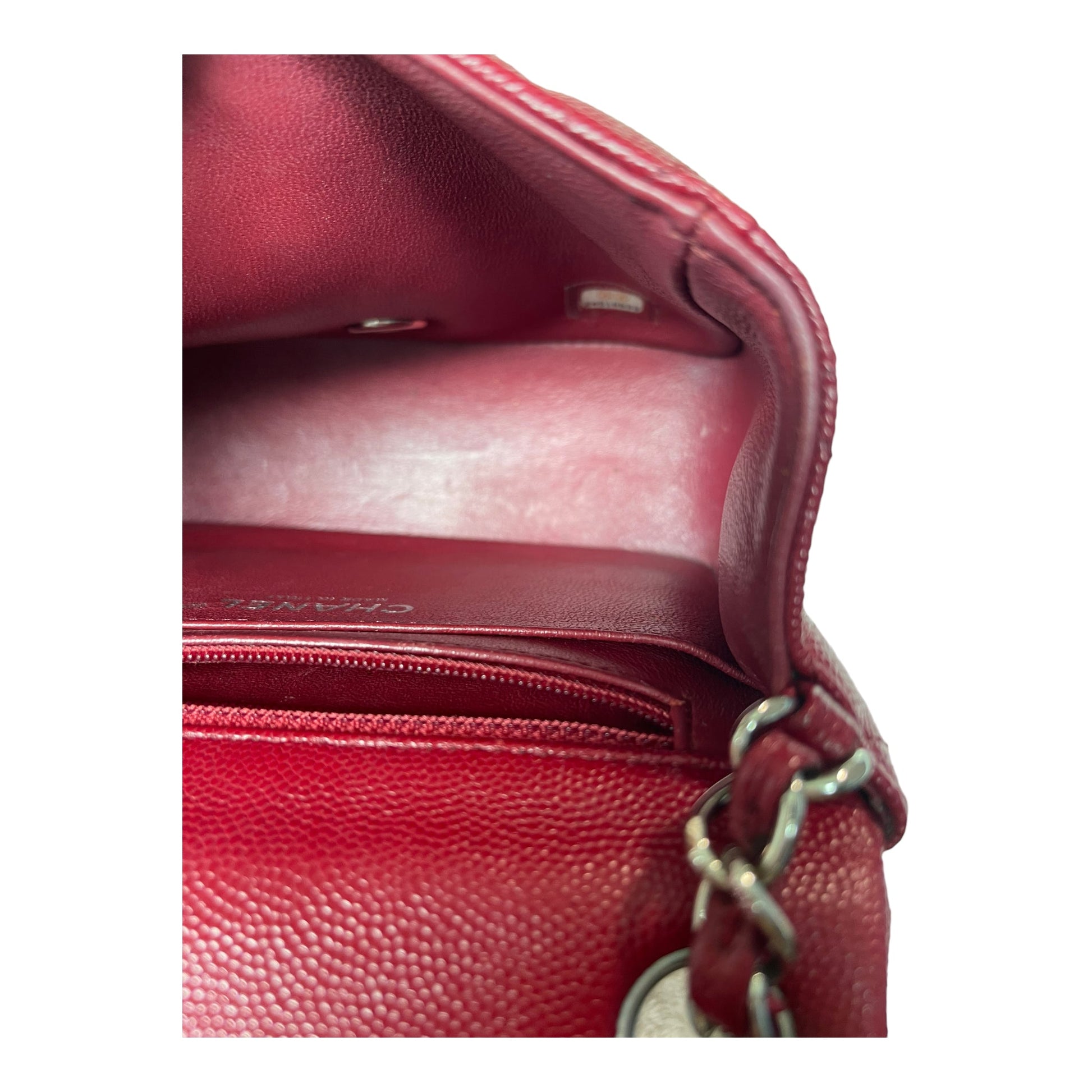 Chanel Quilted Mini Square Flap Red Caviar Silver Hardware 17B