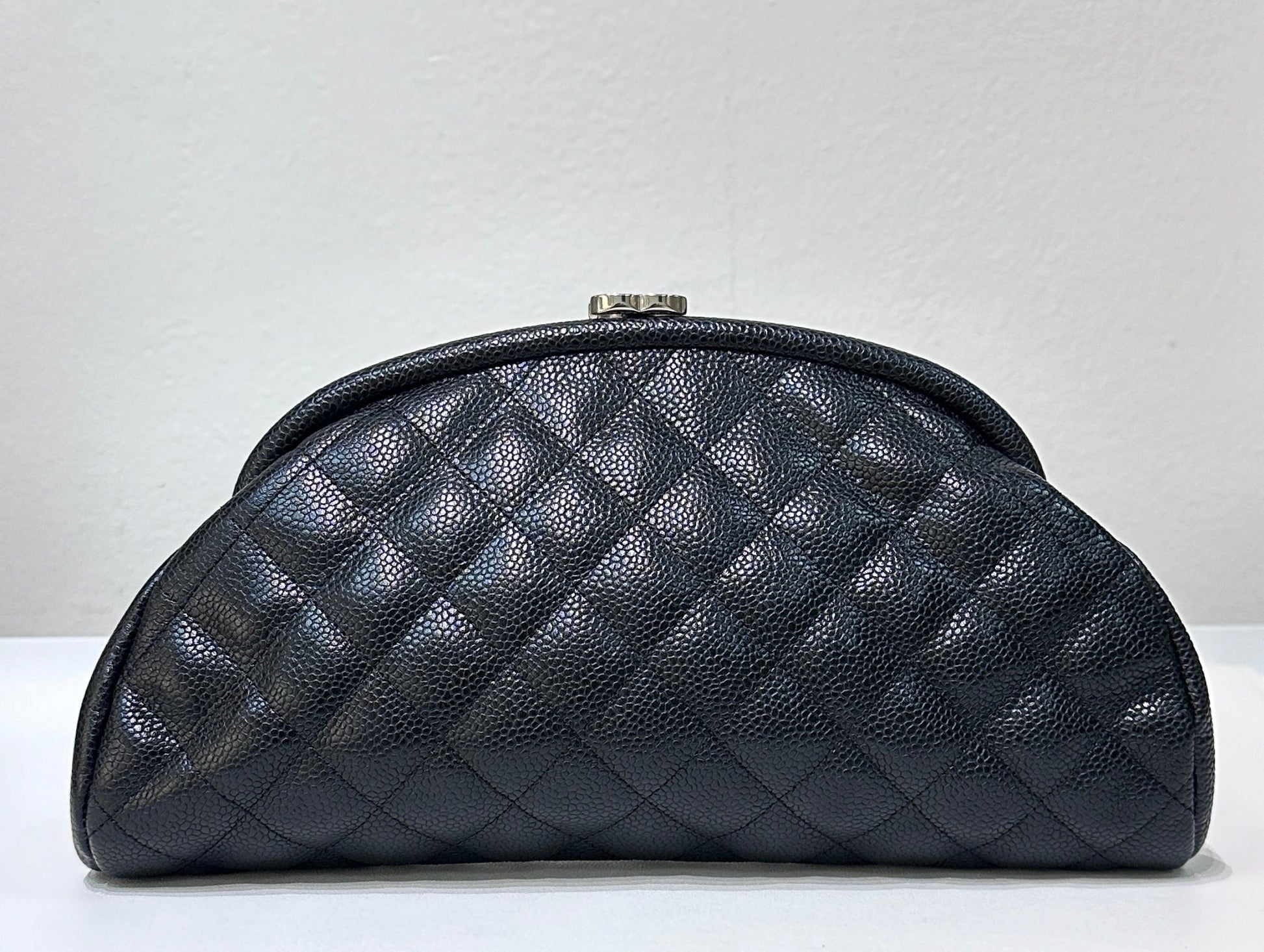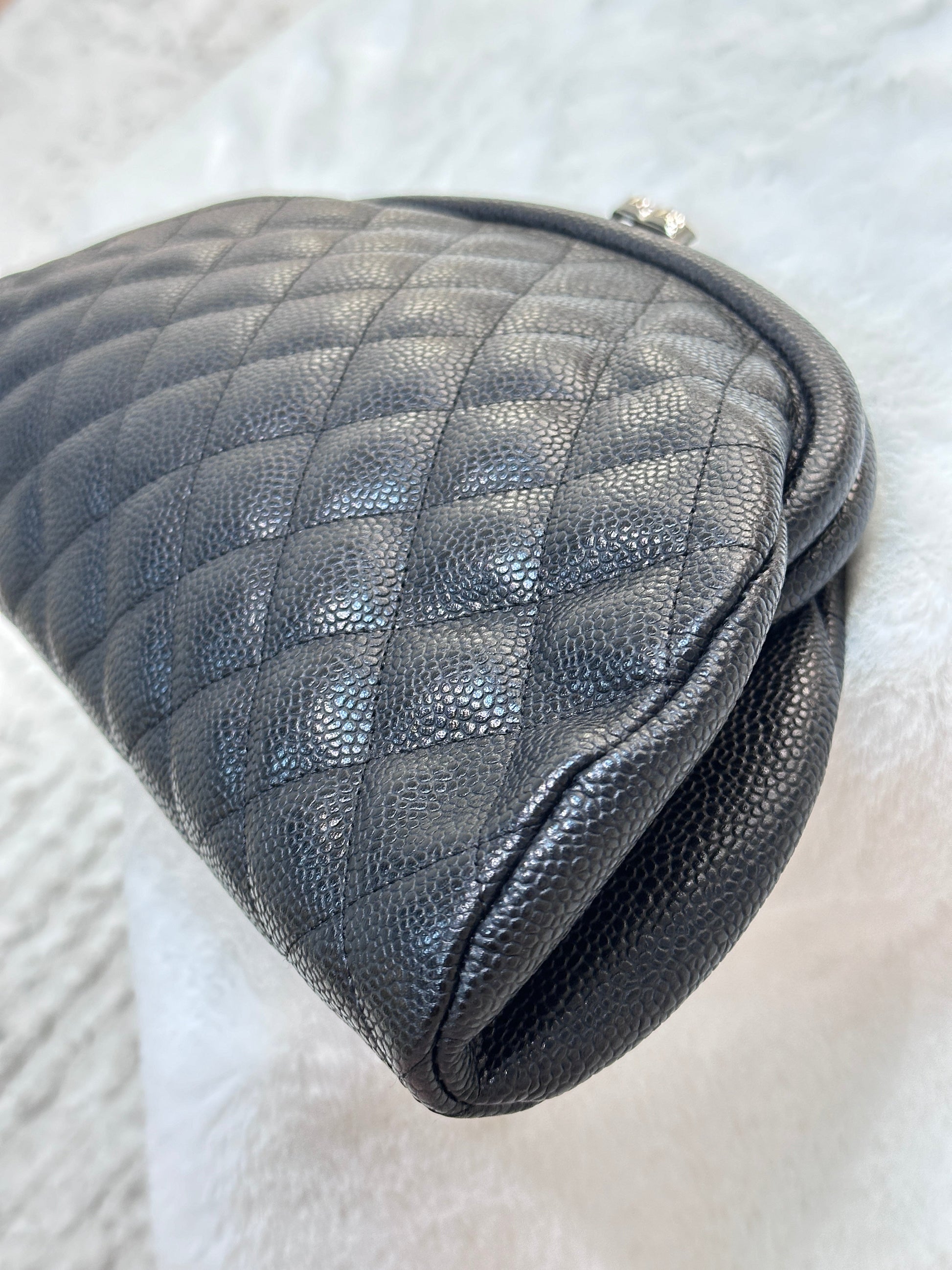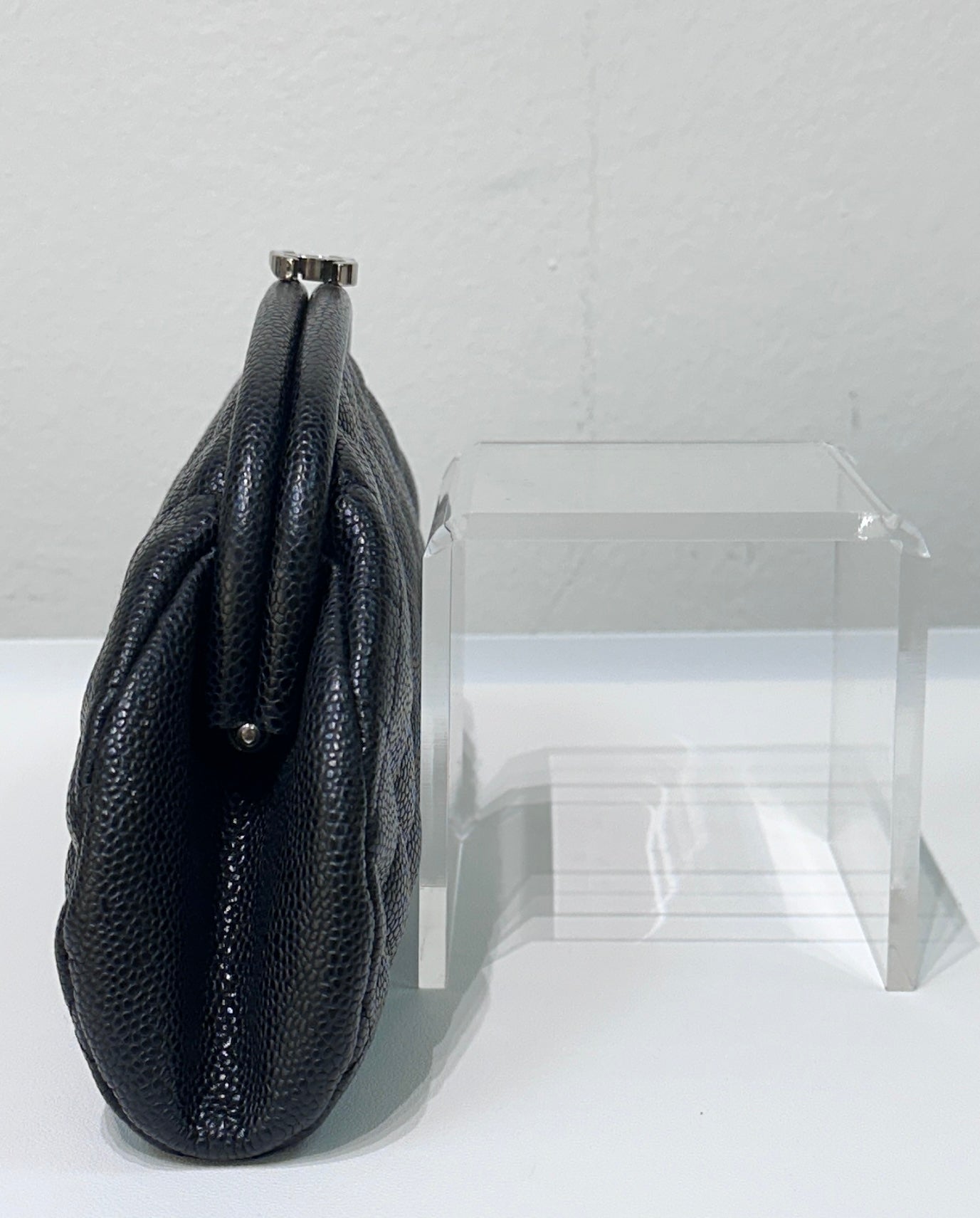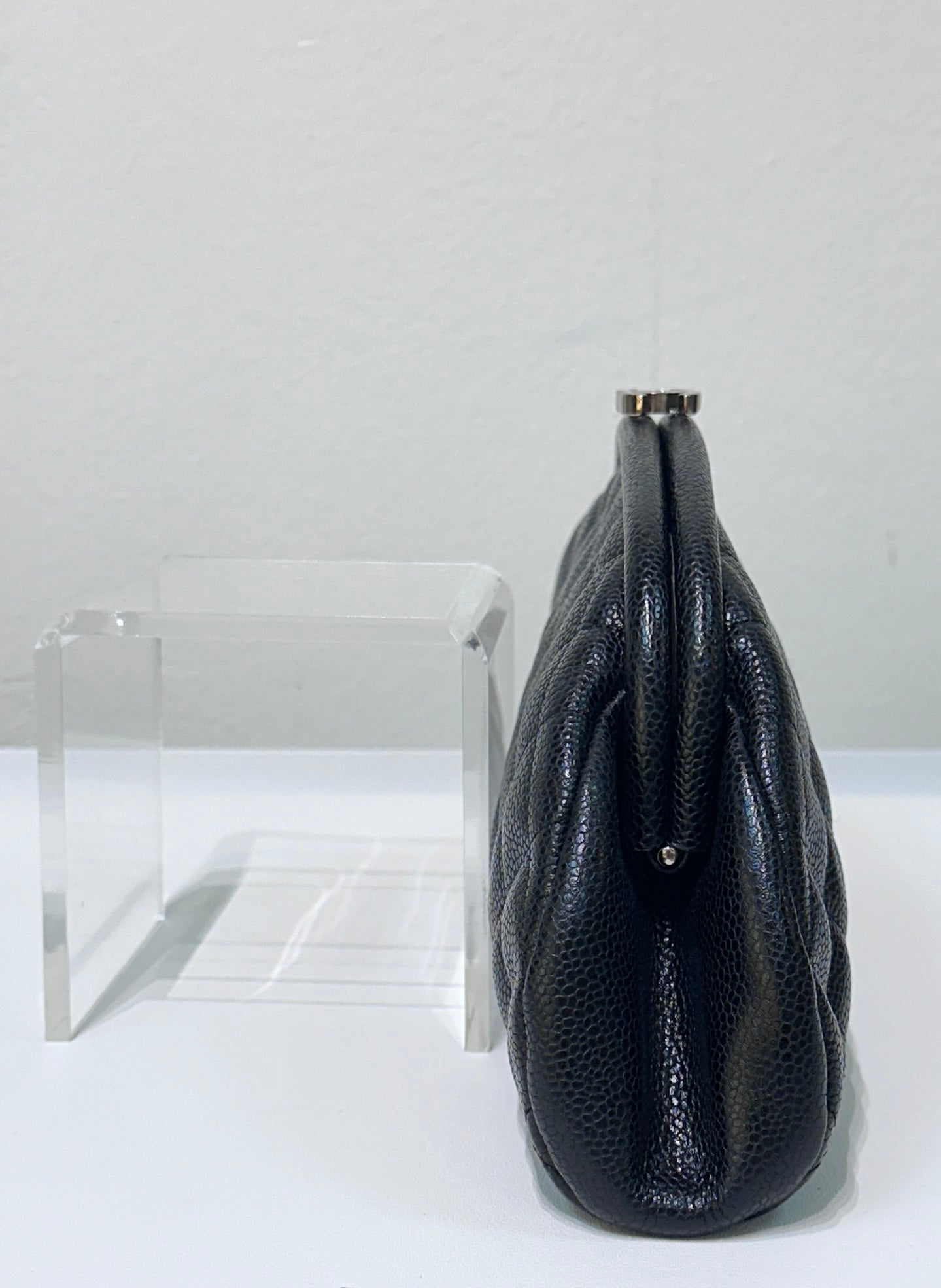 Chanel Quilted Timeless Kisslock Clutch Black Caviar SHW