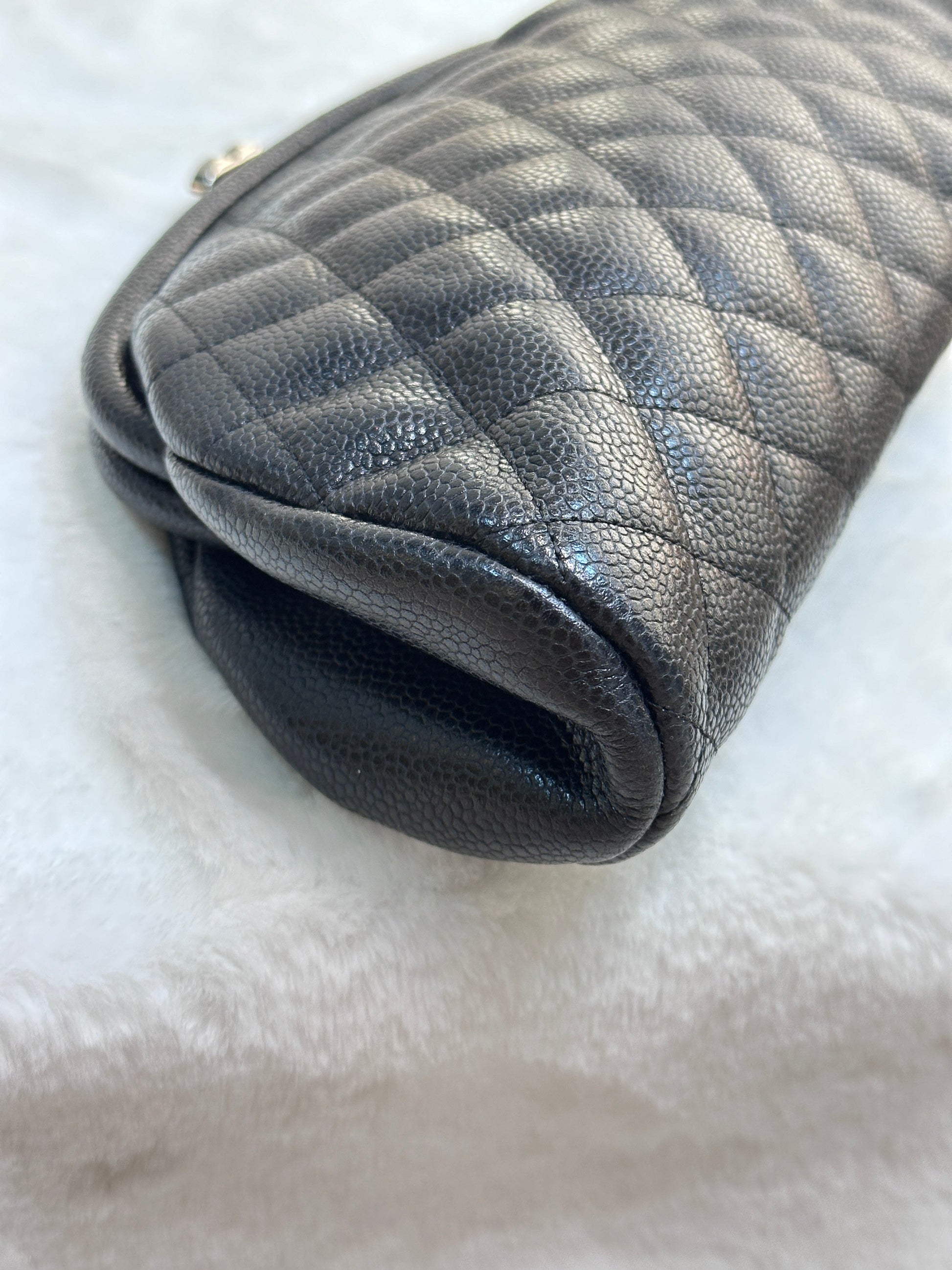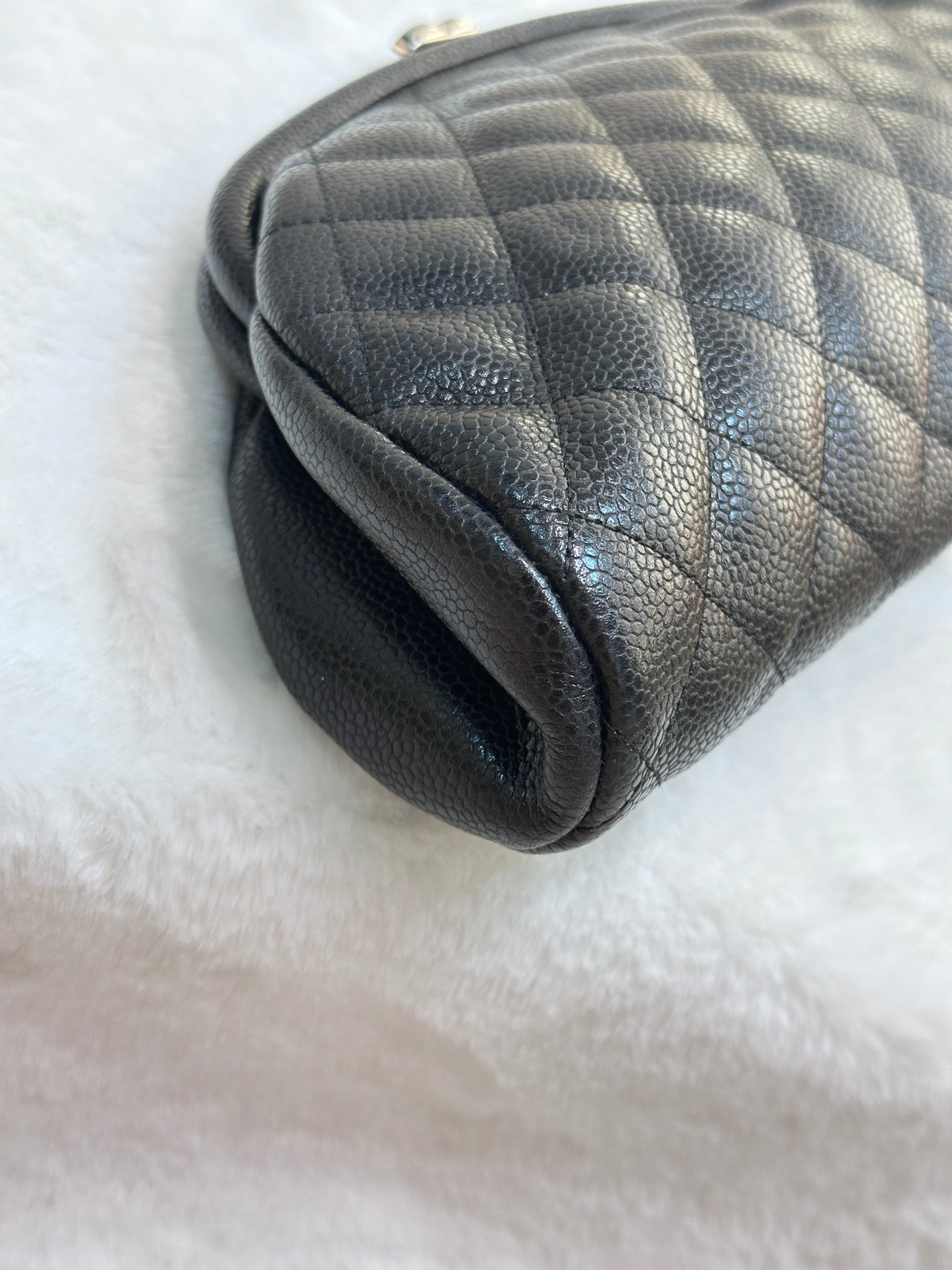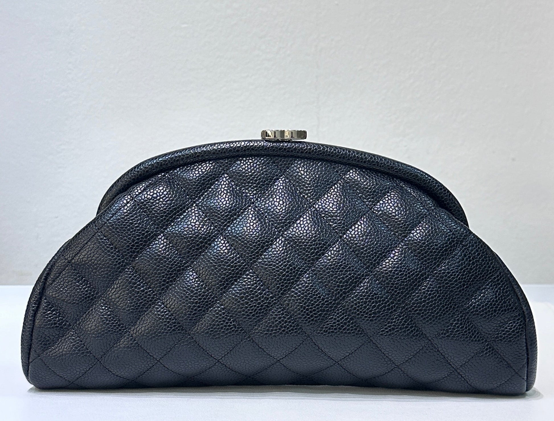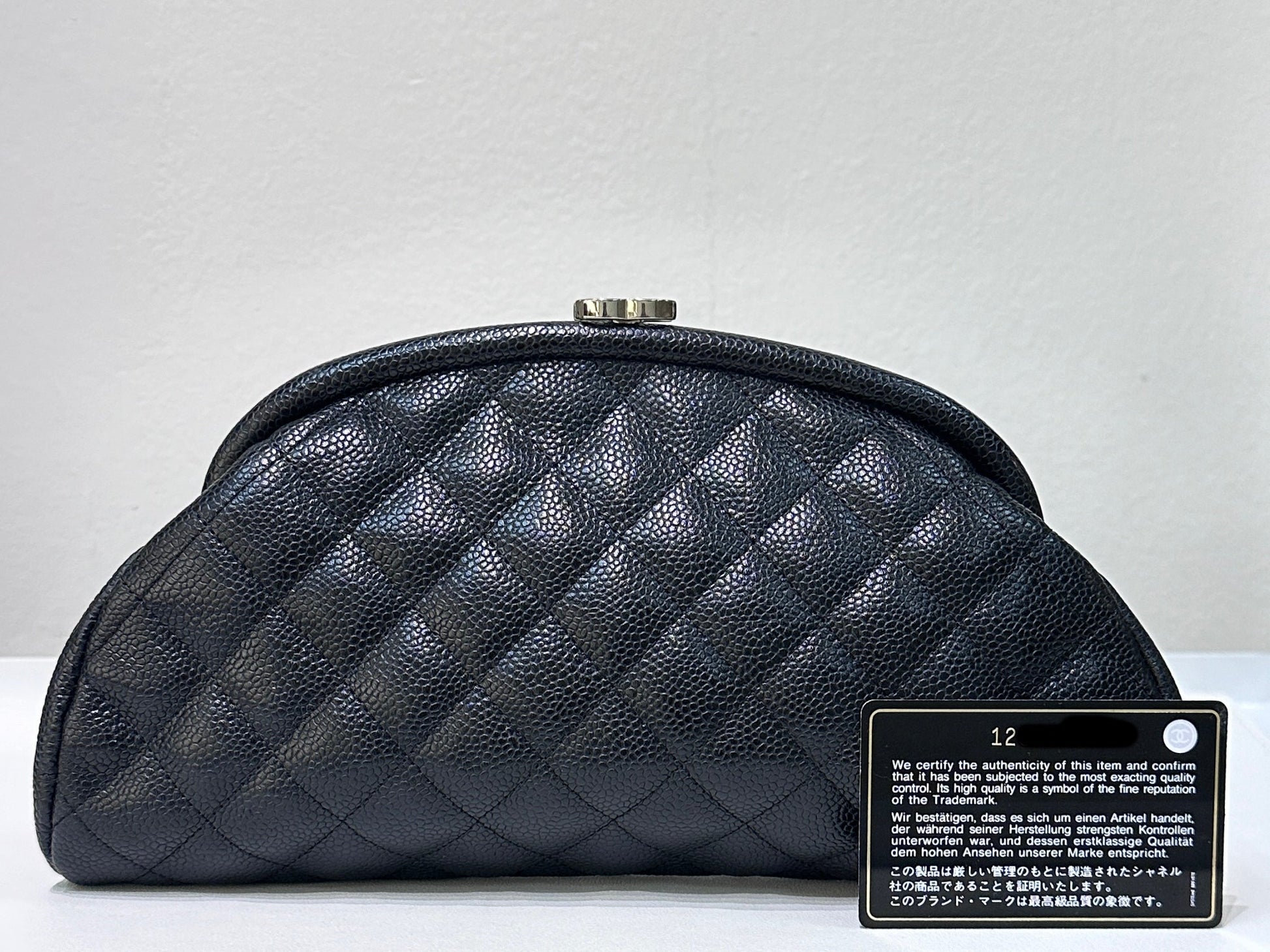 Chanel Quilted Timeless Kisslock Clutch Black Caviar SHW