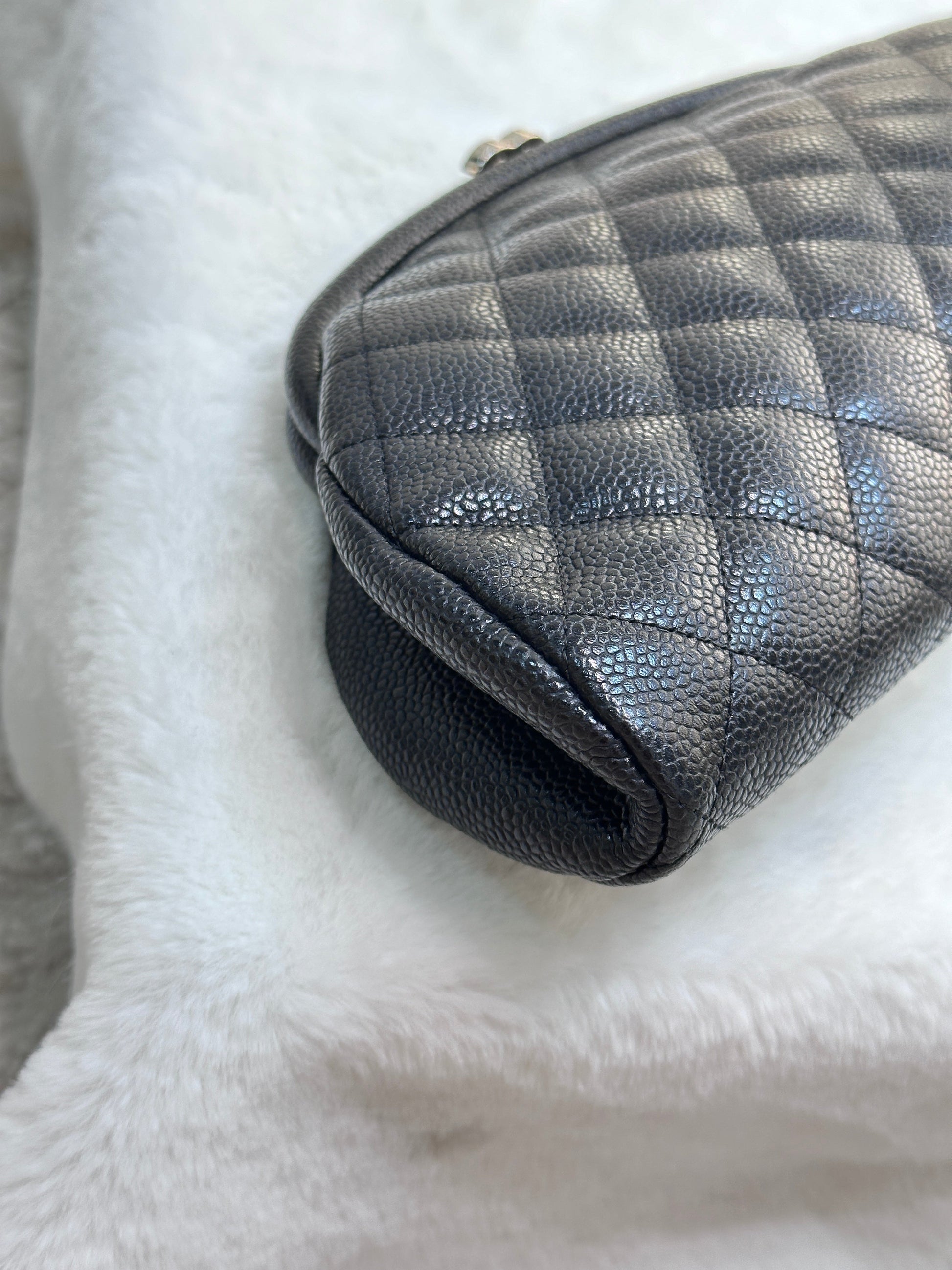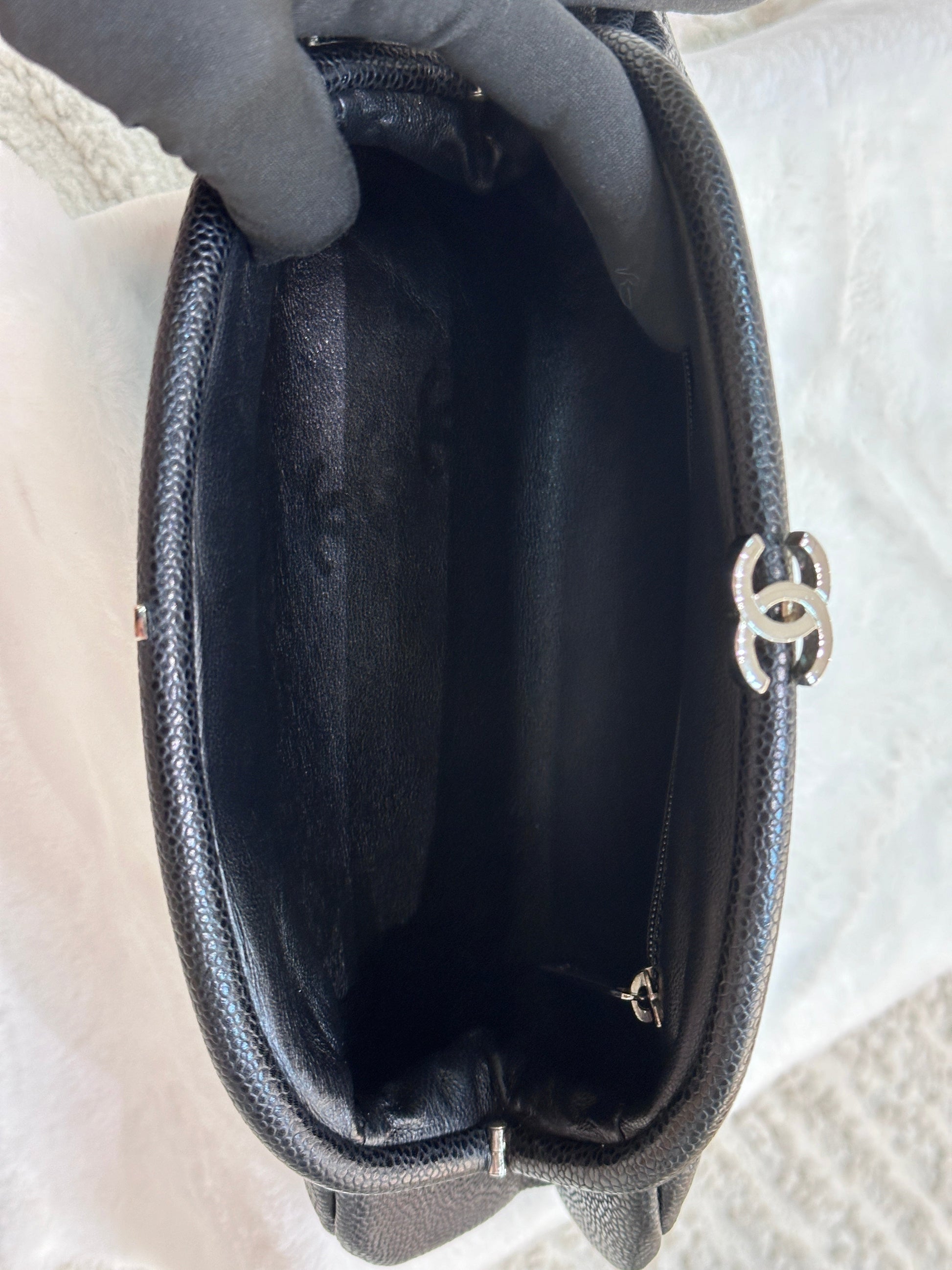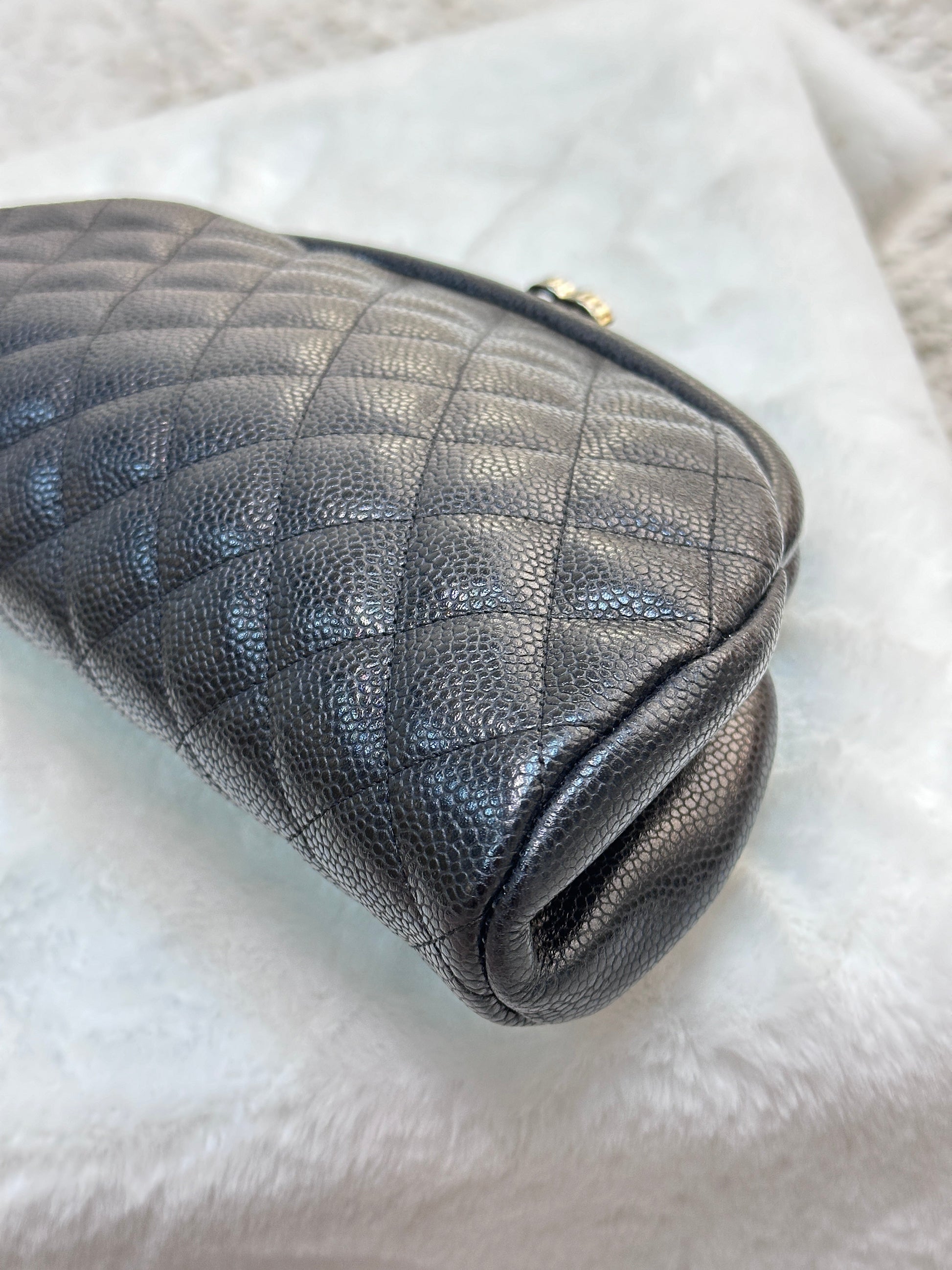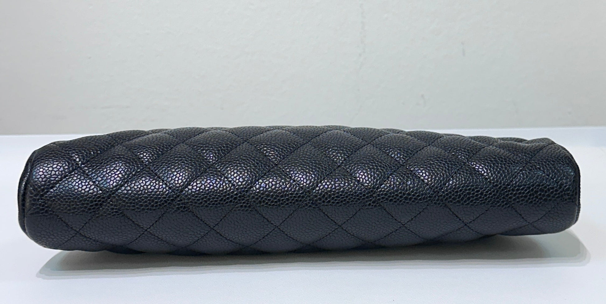 Chanel Quilted Timeless Kisslock Clutch Black Caviar SHW