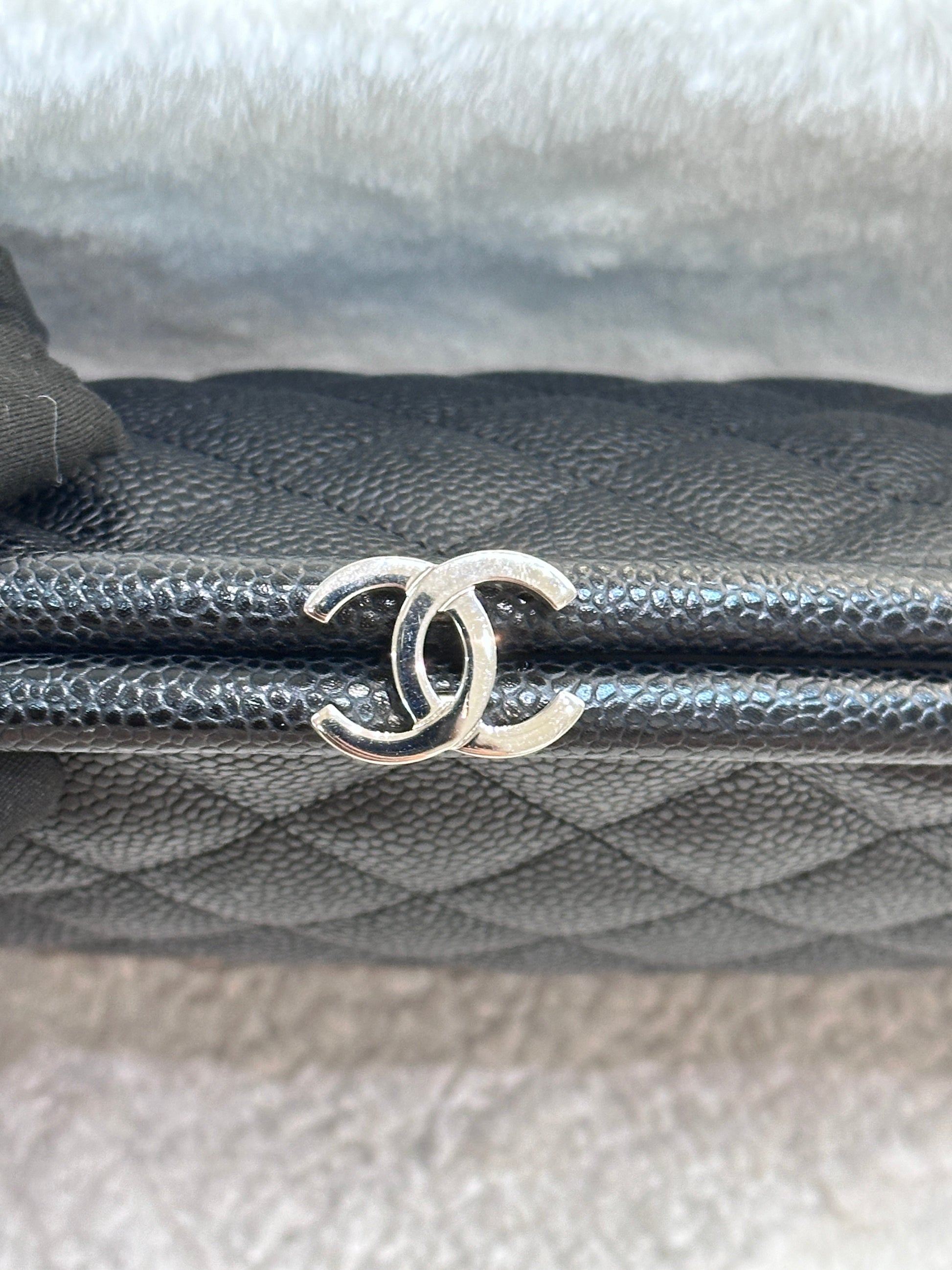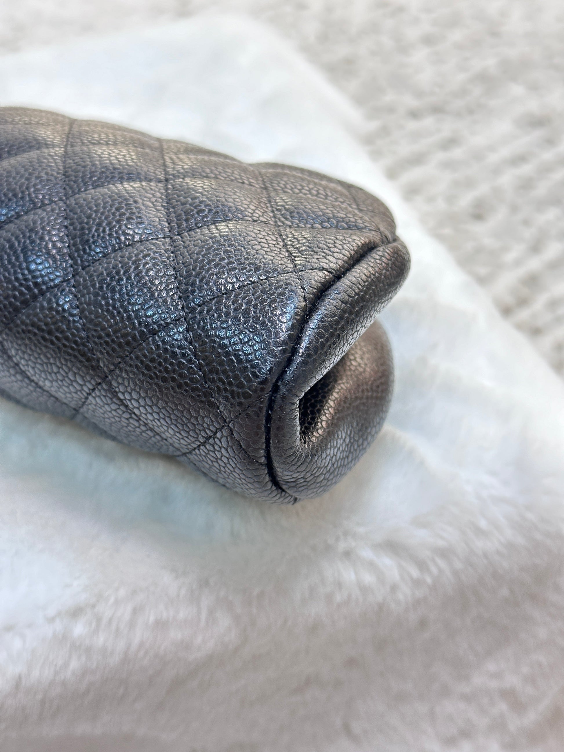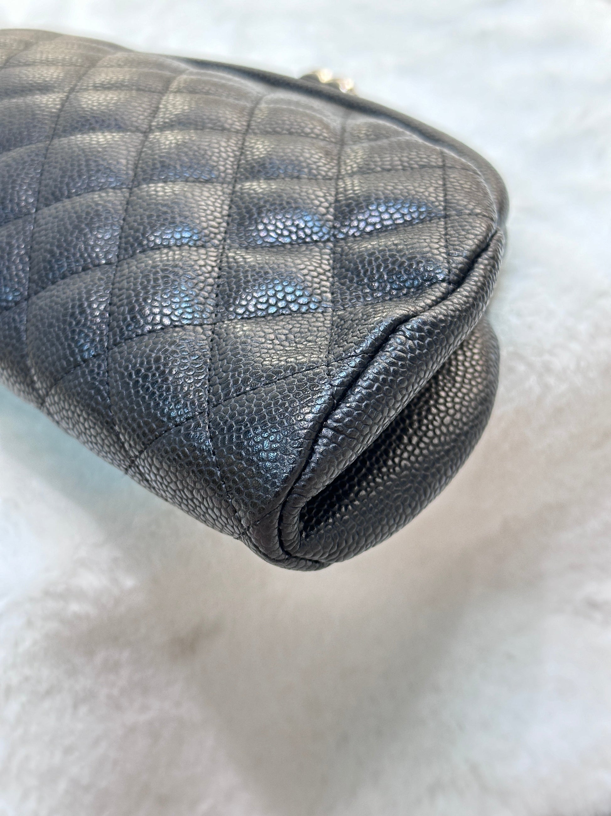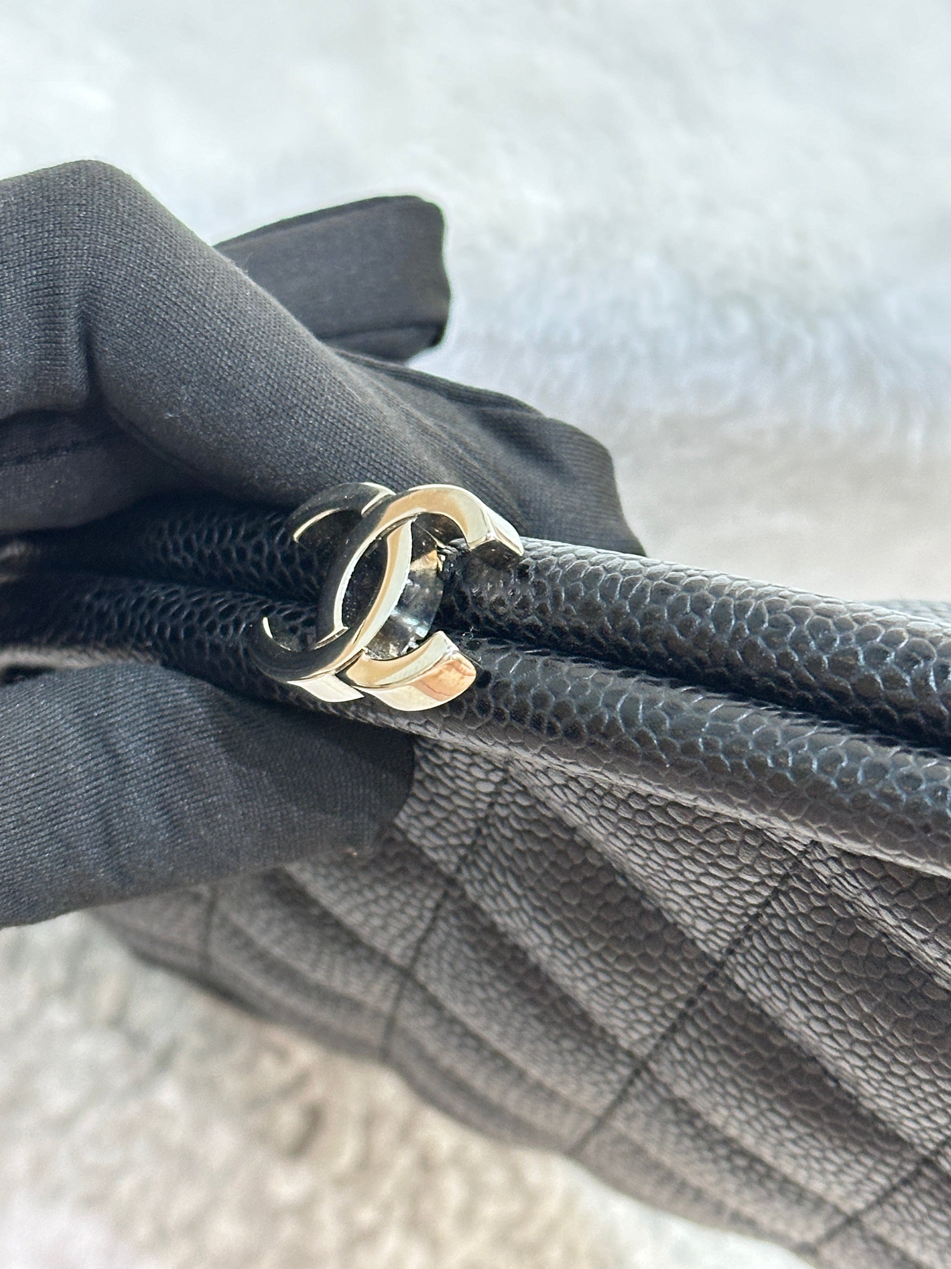 Chanel Quilted Timeless Kisslock Clutch Black Caviar SHW