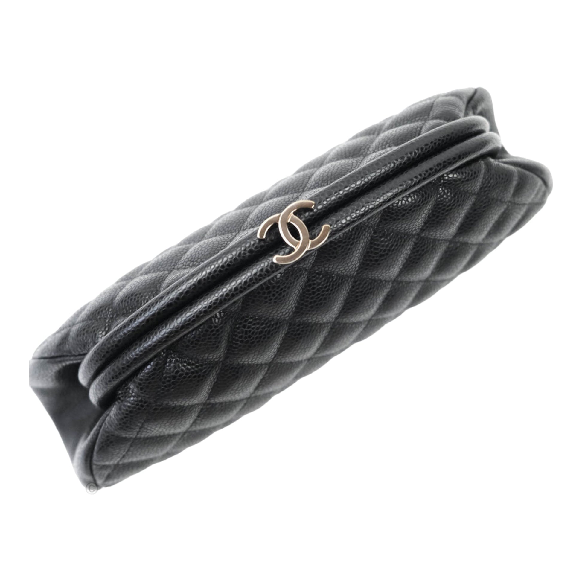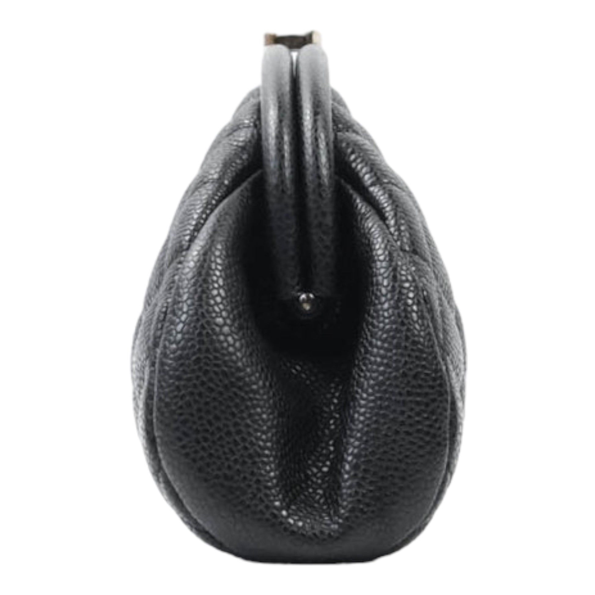 Chanel Quilted Timeless Kisslock Clutch Black Caviar Silver Hardware