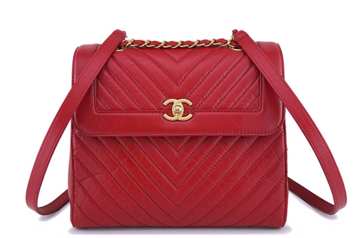 Chanel Red Aged Calfskin Large Chevron Framed Backpack Bag GHW