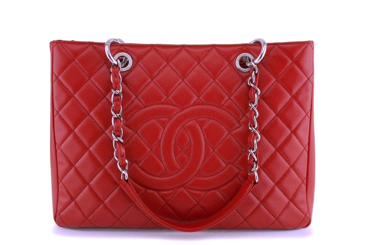 Chanel Red Caviar Grand Shopper Tote GST Bag SHW