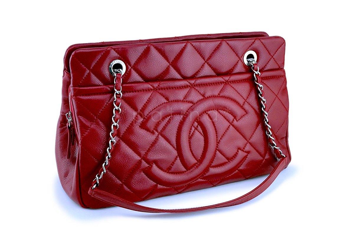 Chanel Red Caviar Timeless Classic Logo Tote Bag SHW