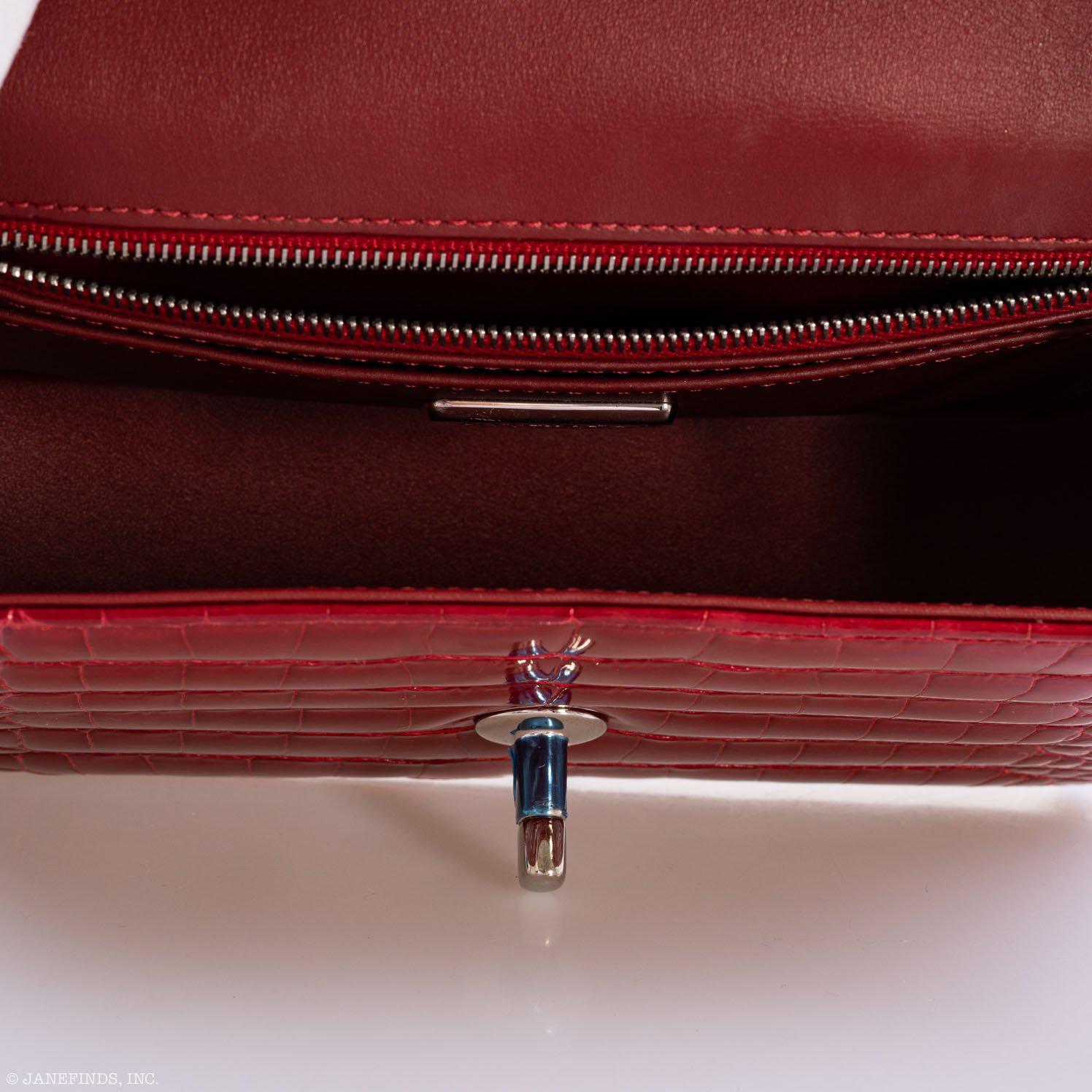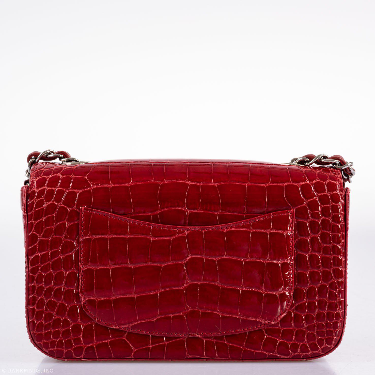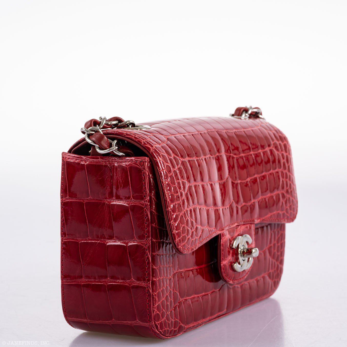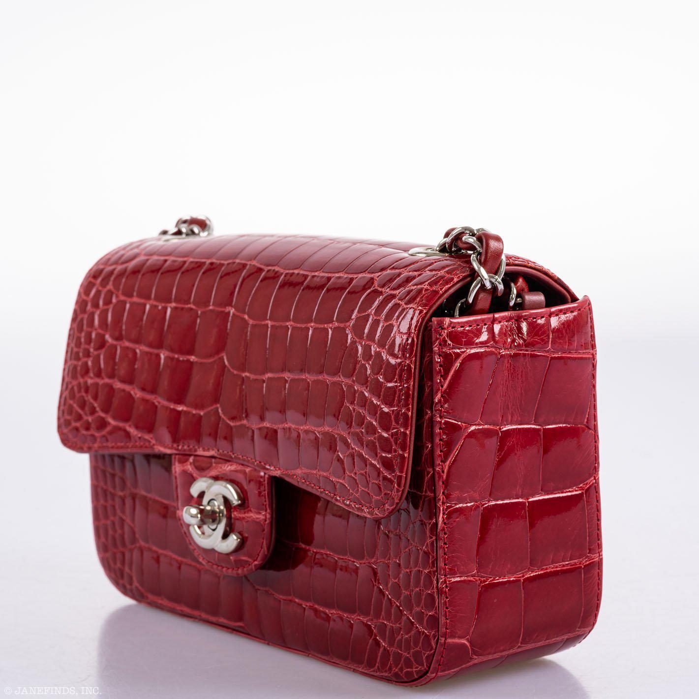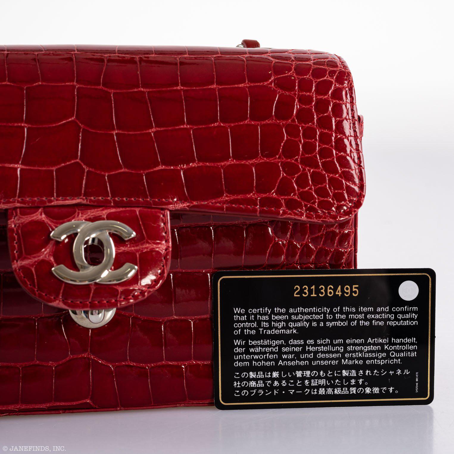CHANEL Red Shiny Alligator Classic Mini Flap Bag with Silver Hardware