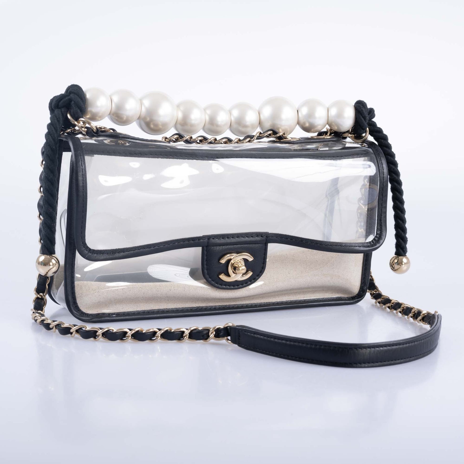 CHANEL Sand By The Sea PVC Flap Bag with Pearl Strap
