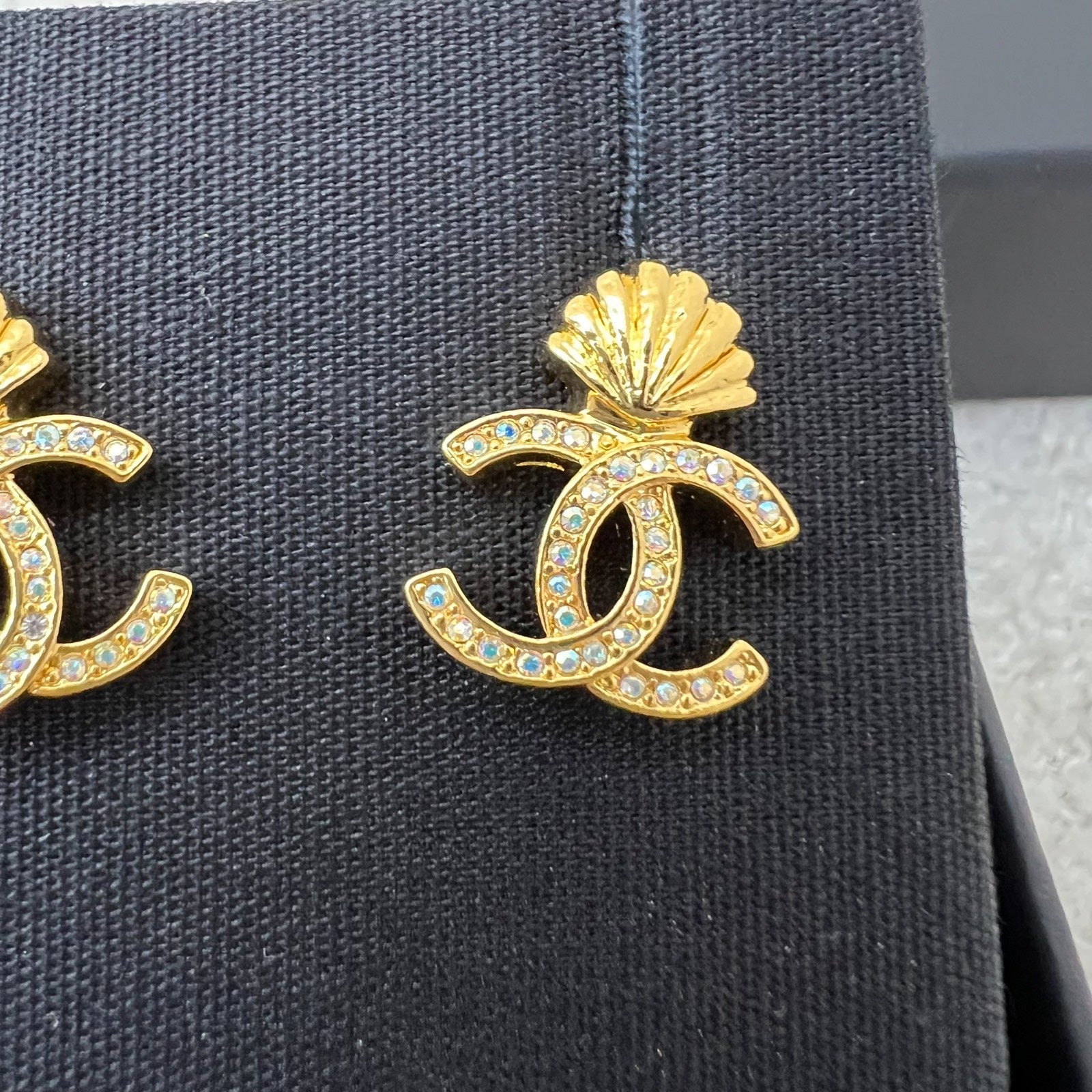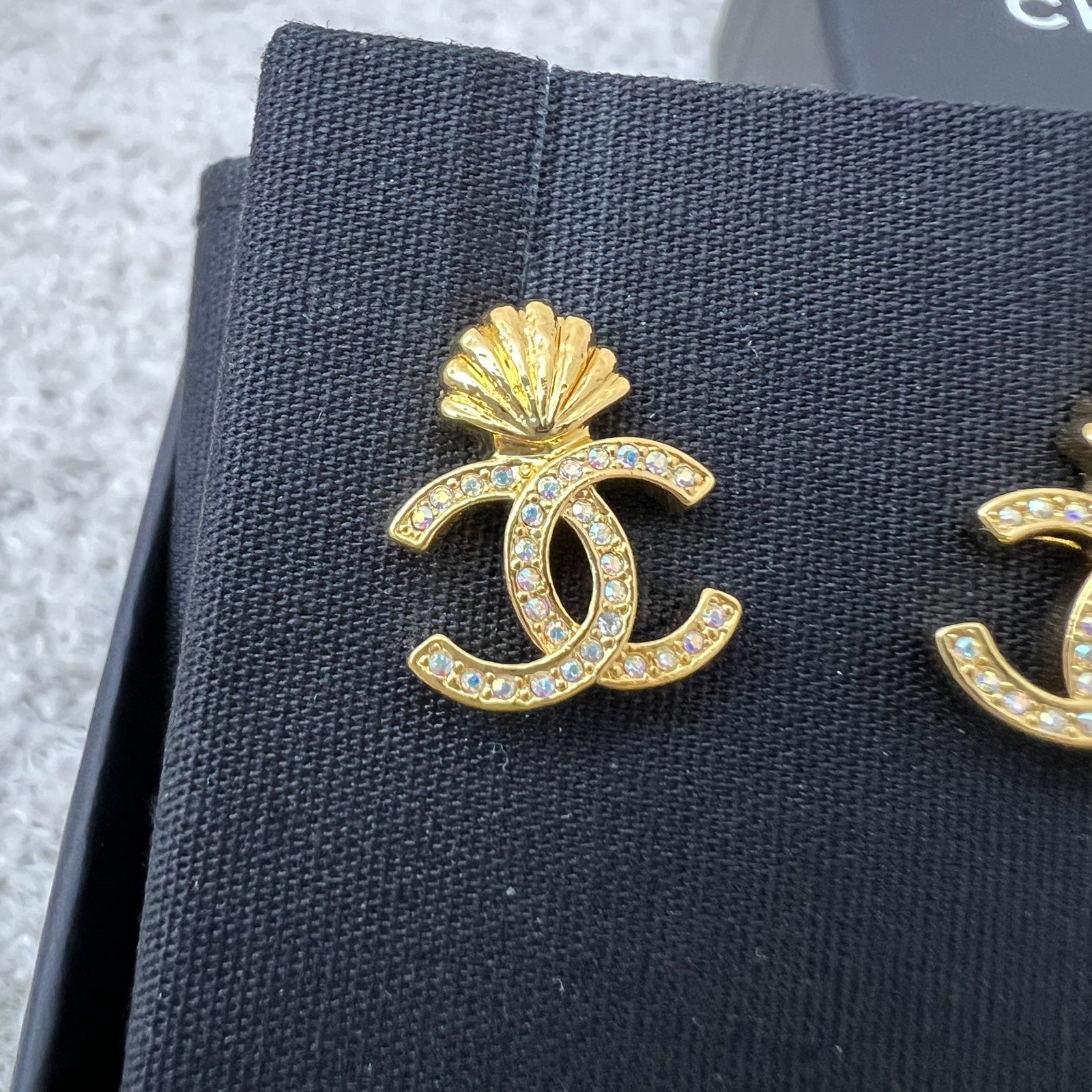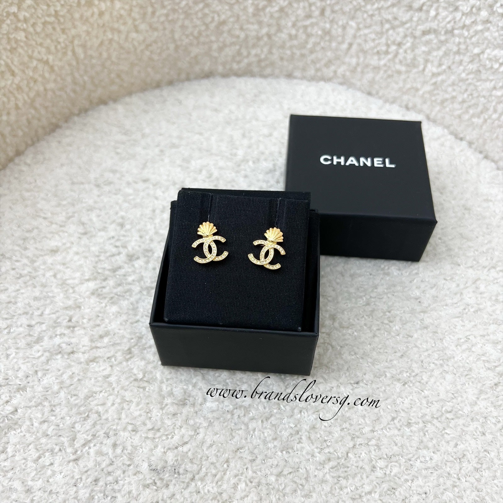 Chanel CC with Seashell Earrings with Crystals in GHW