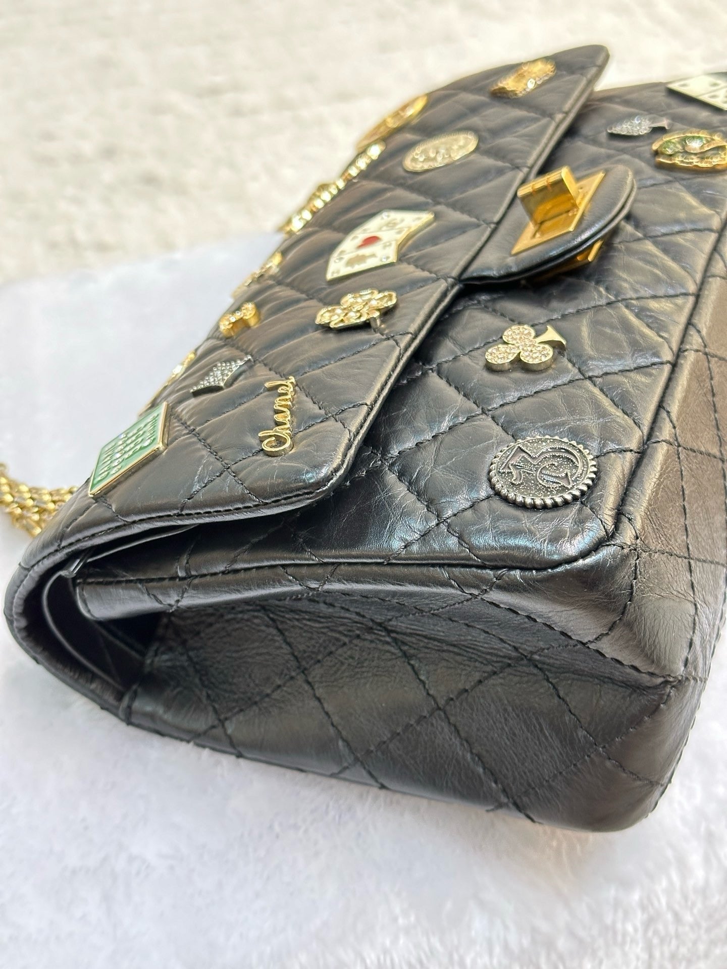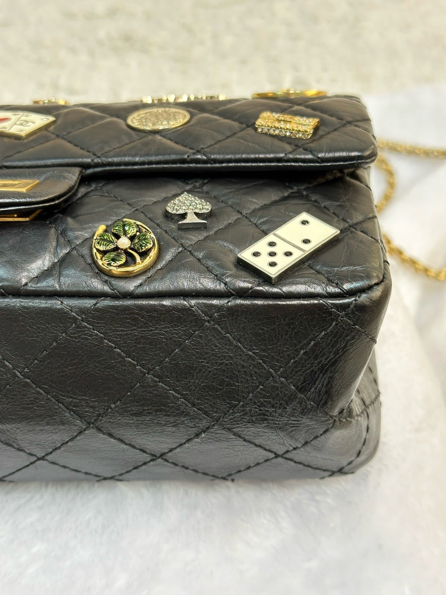 Chanel Small 2.55 Reissue Aged Calfskin Lucky Charms 225 Flap Black GHW