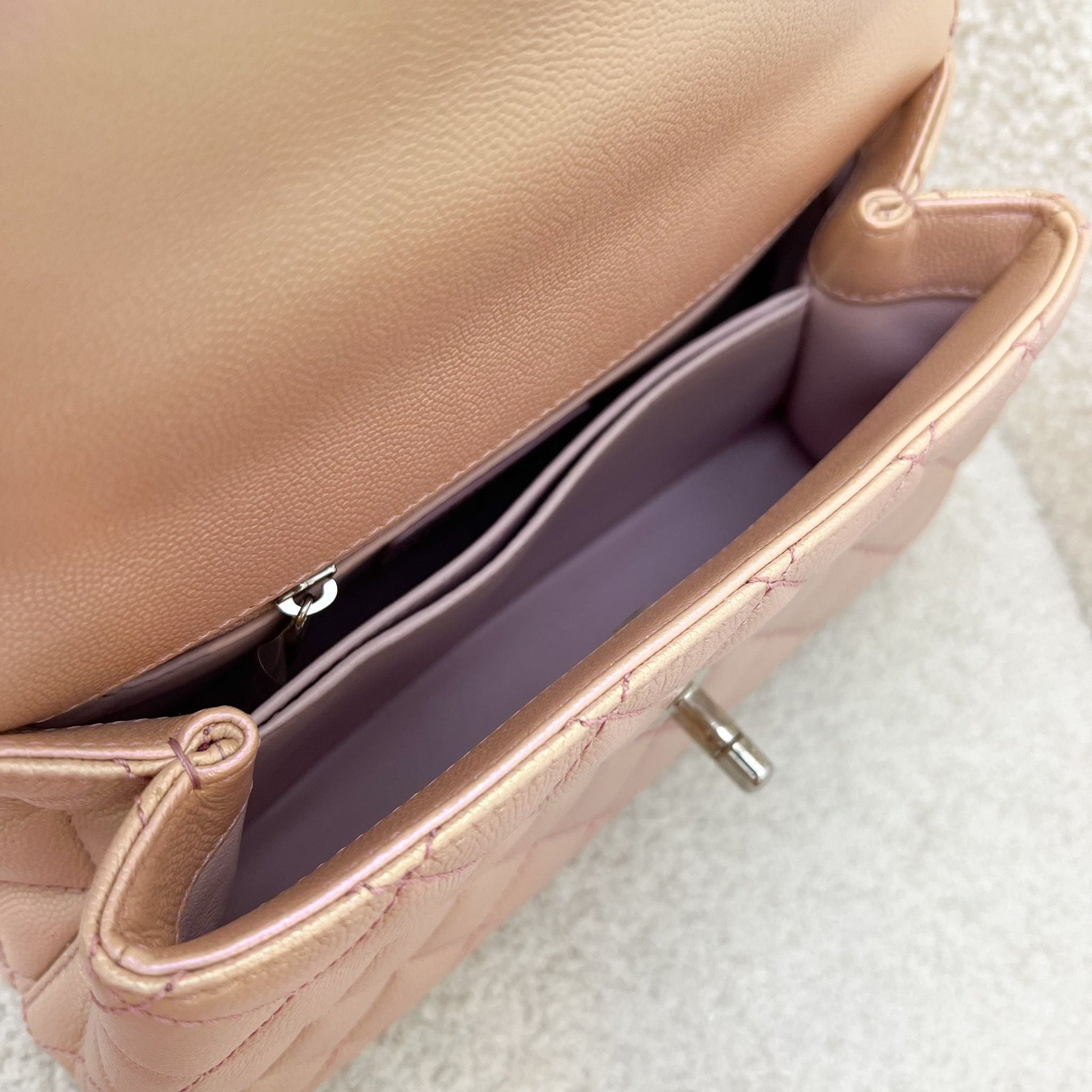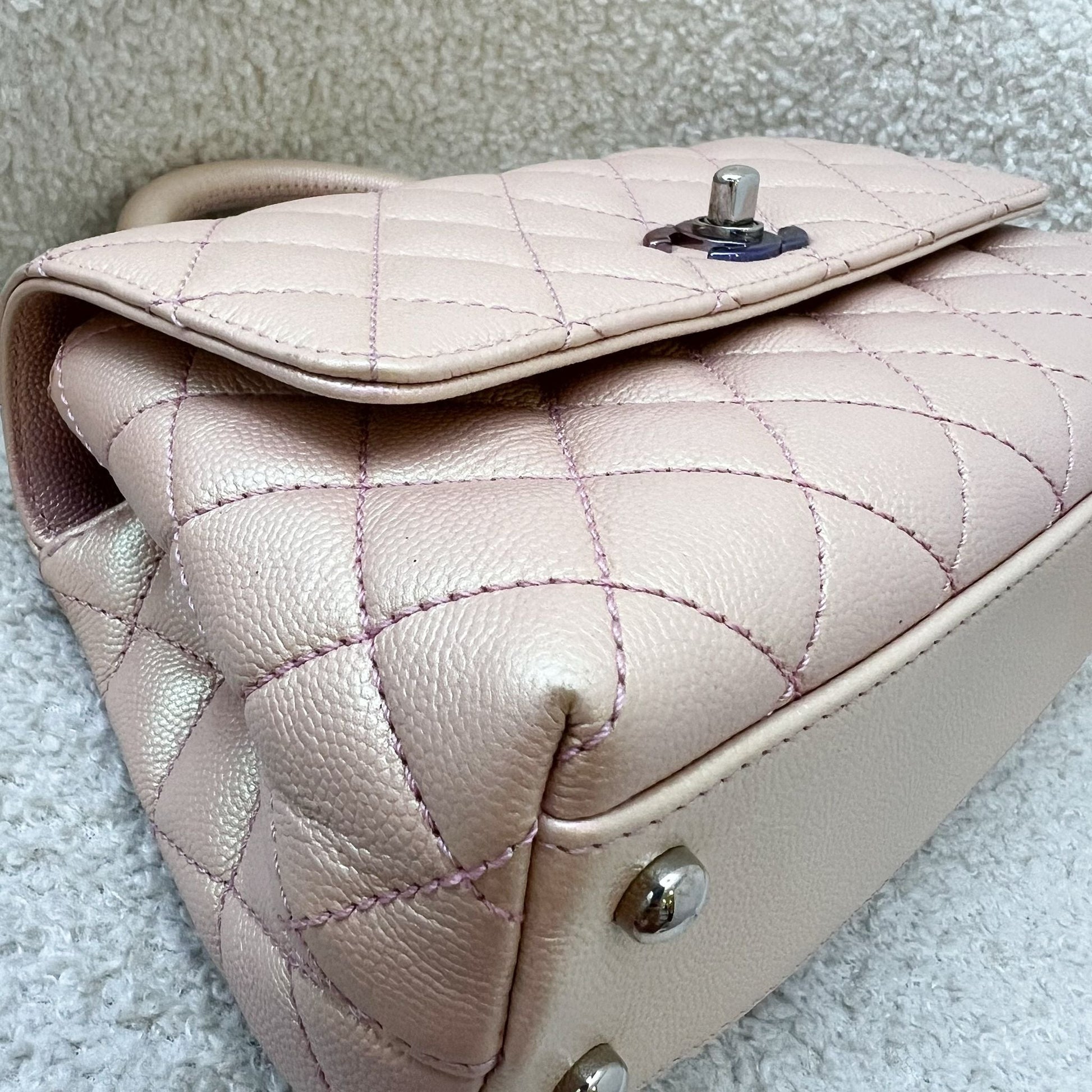 Chanel Small 24cm Coco Handle in 21K Iridescent Pink Caviar and Rainbow HW