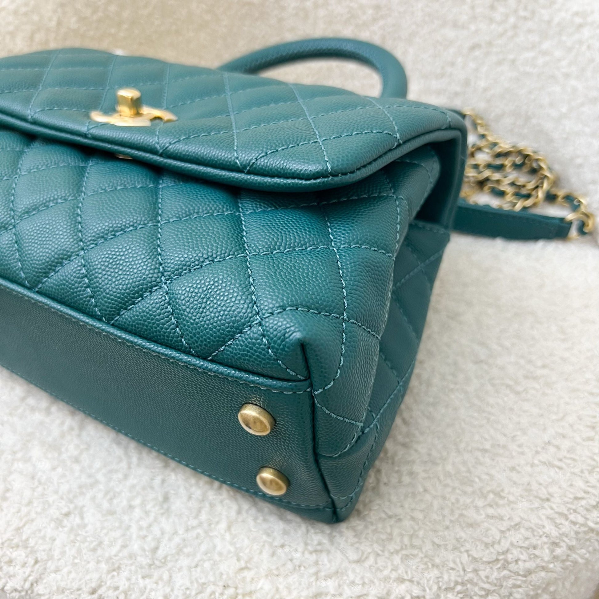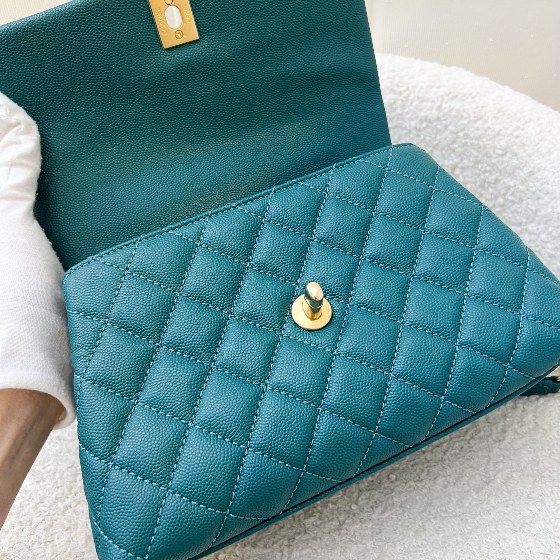 Chanel Small 24cm Coco Handle in 19P Teal Caviar and LGHW (Model: A92990)