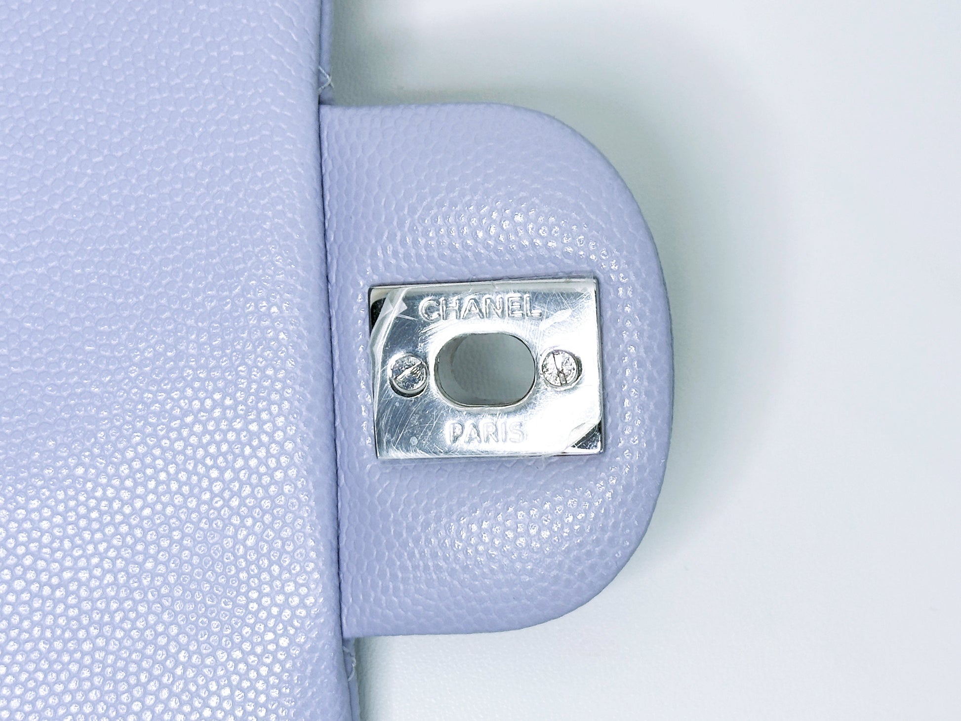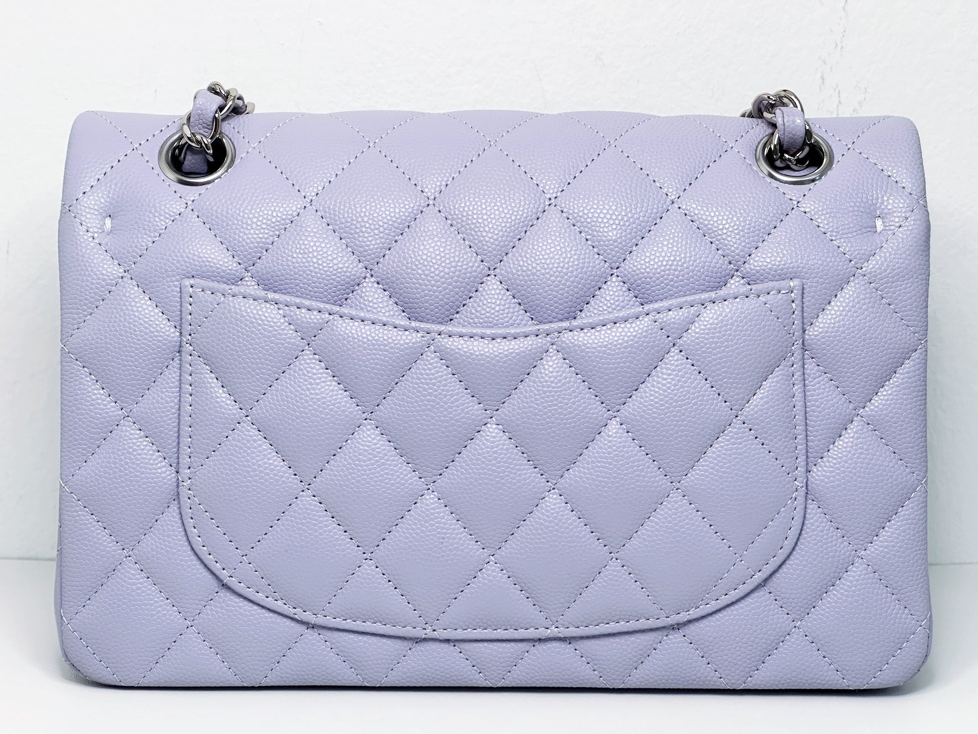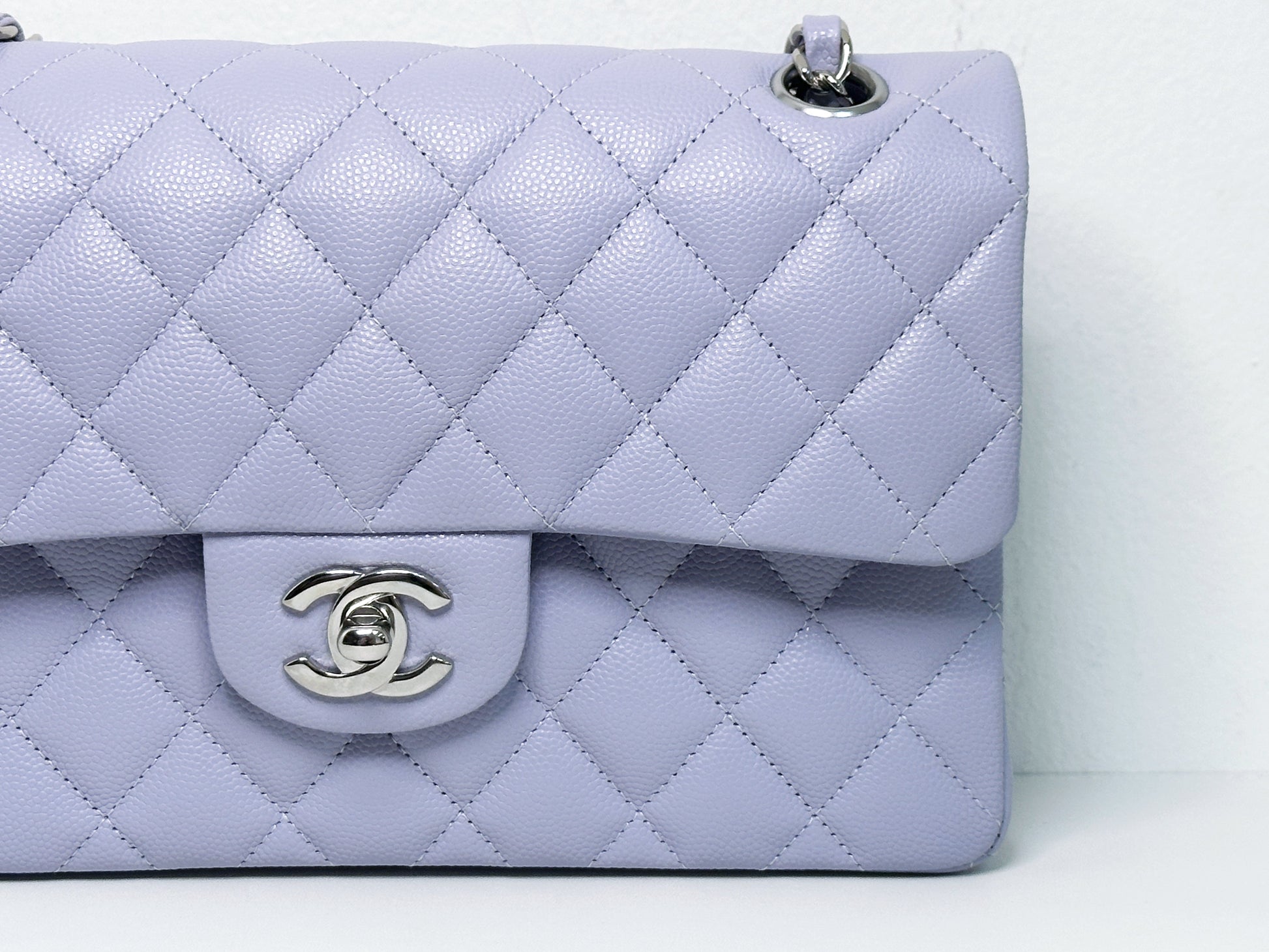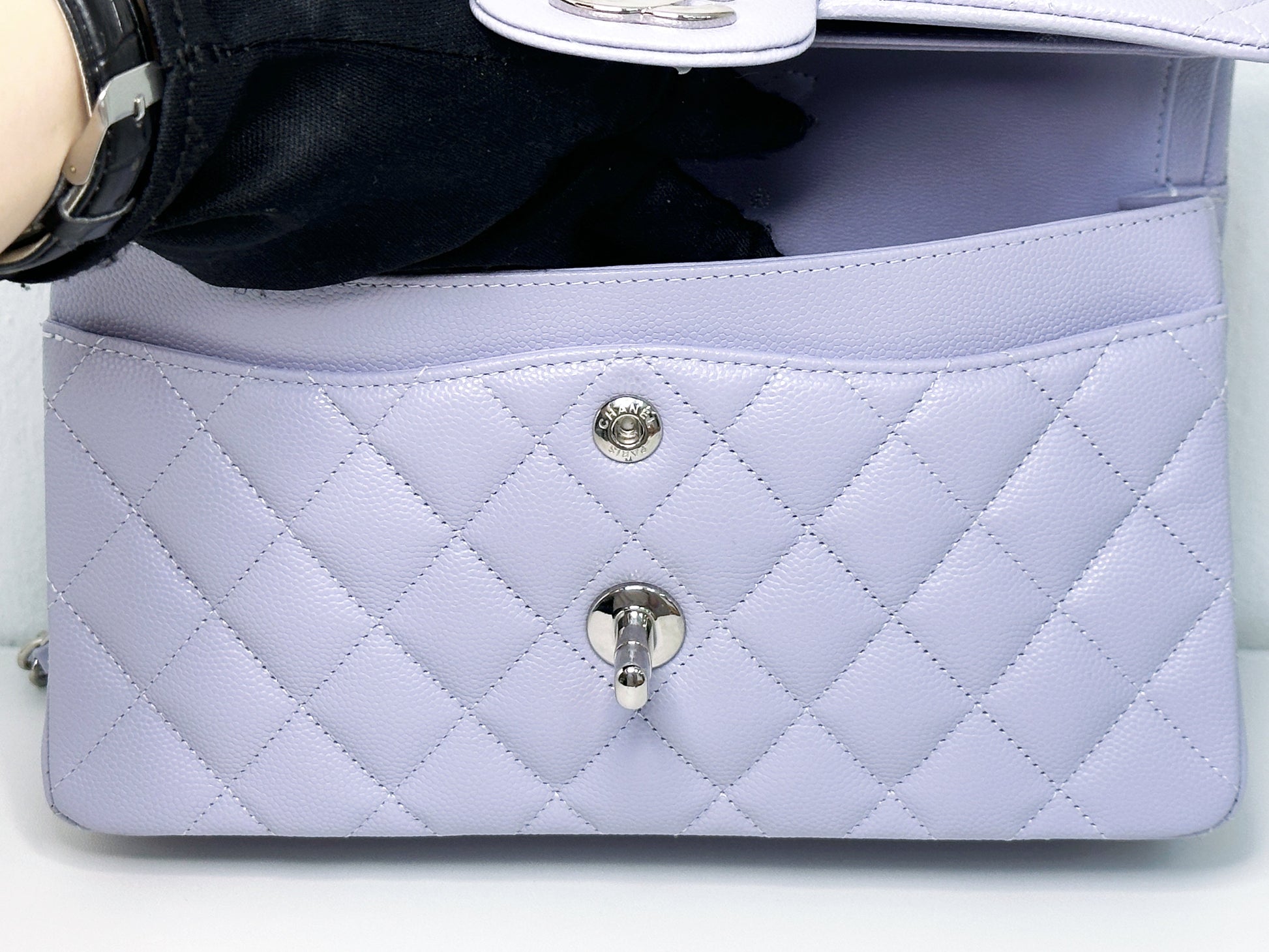 Chanel Small Caviar Quilted Double Flap Lavender 21K SHW UEAA microchip