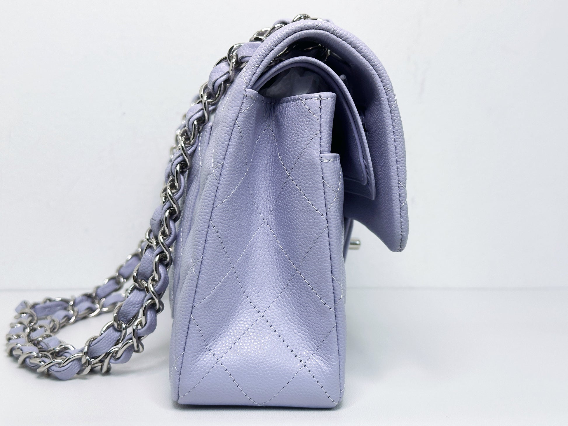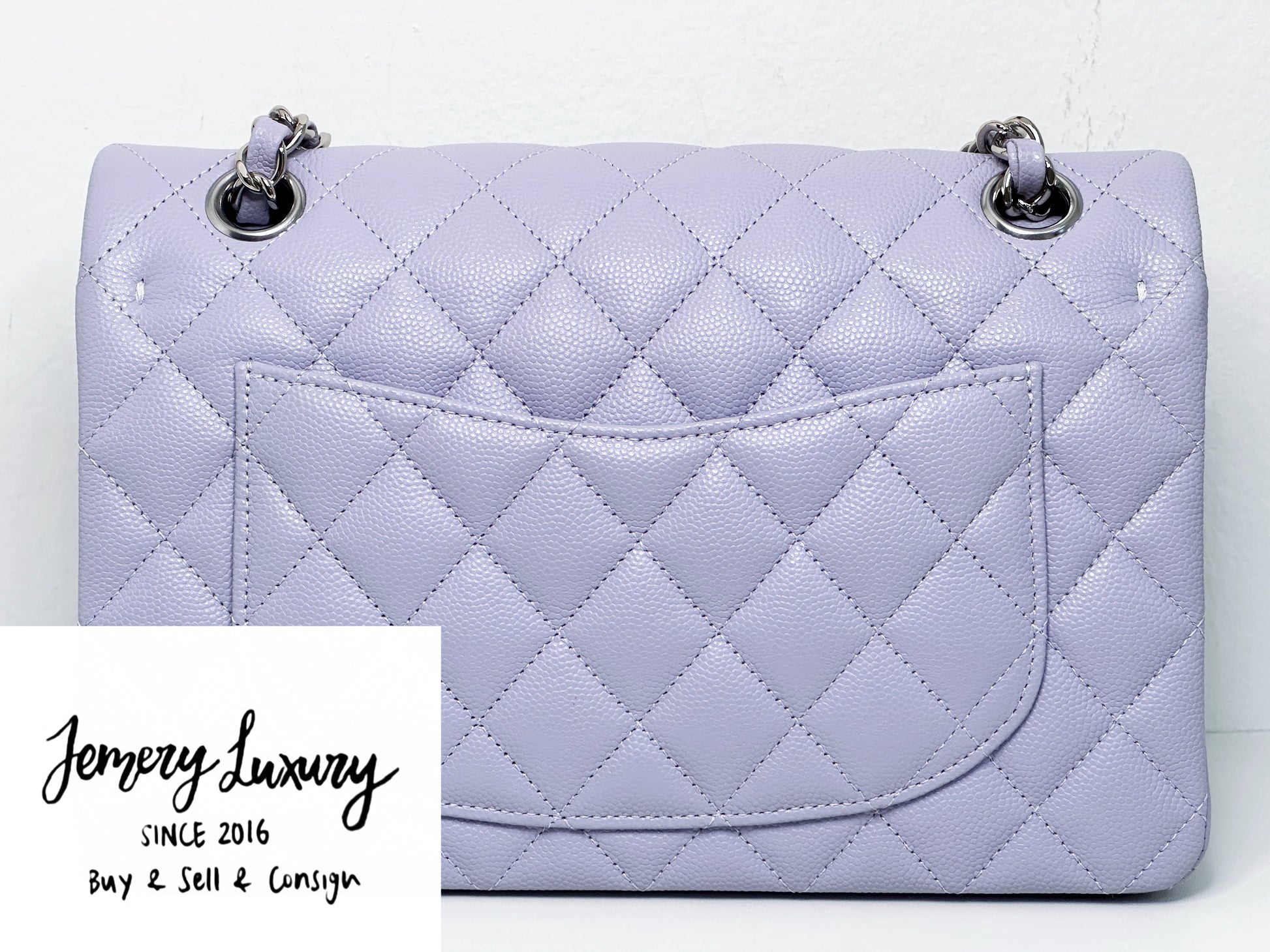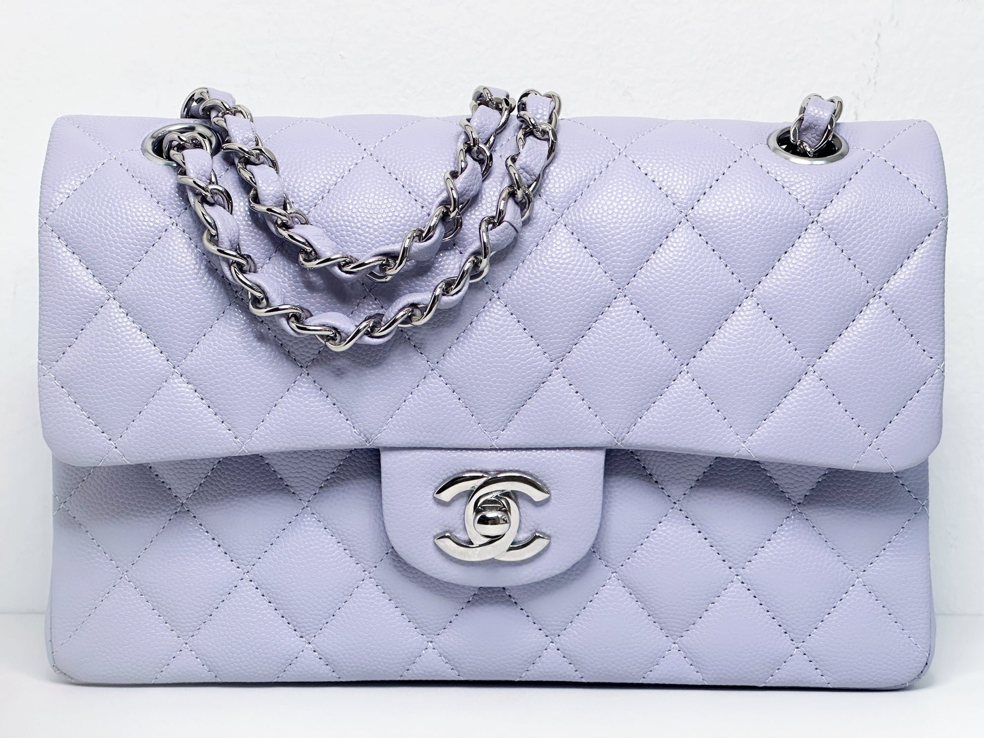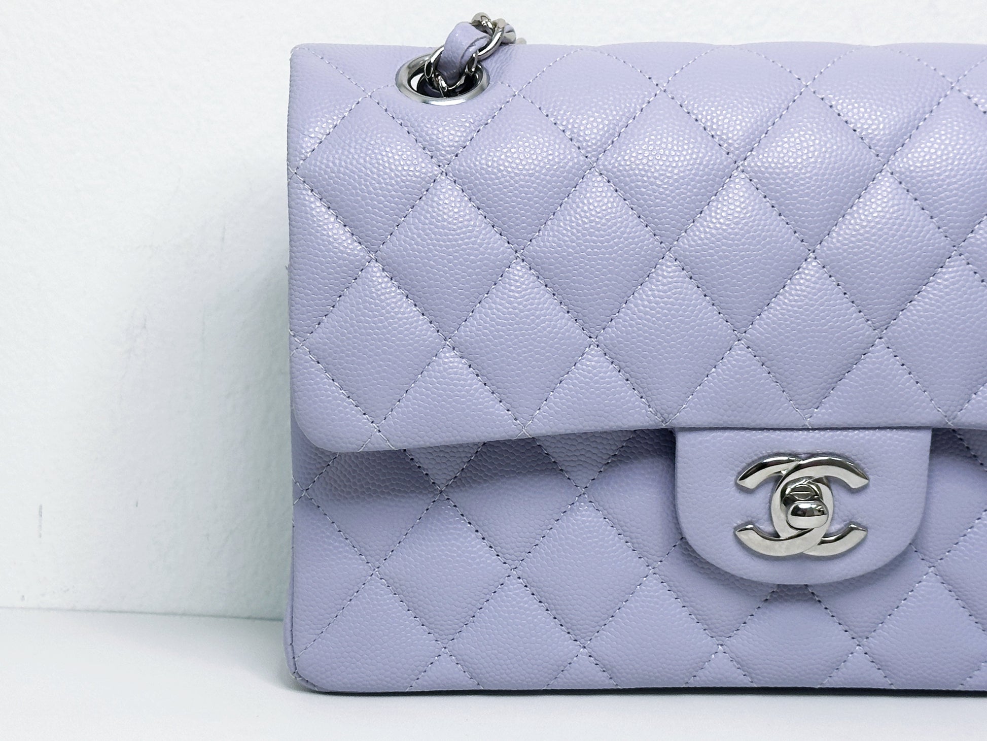 Chanel Small Caviar Quilted Double Flap Lavender 21K SHW UEAA microchip