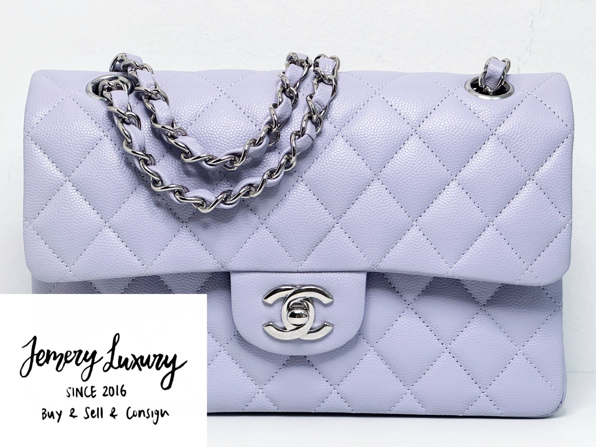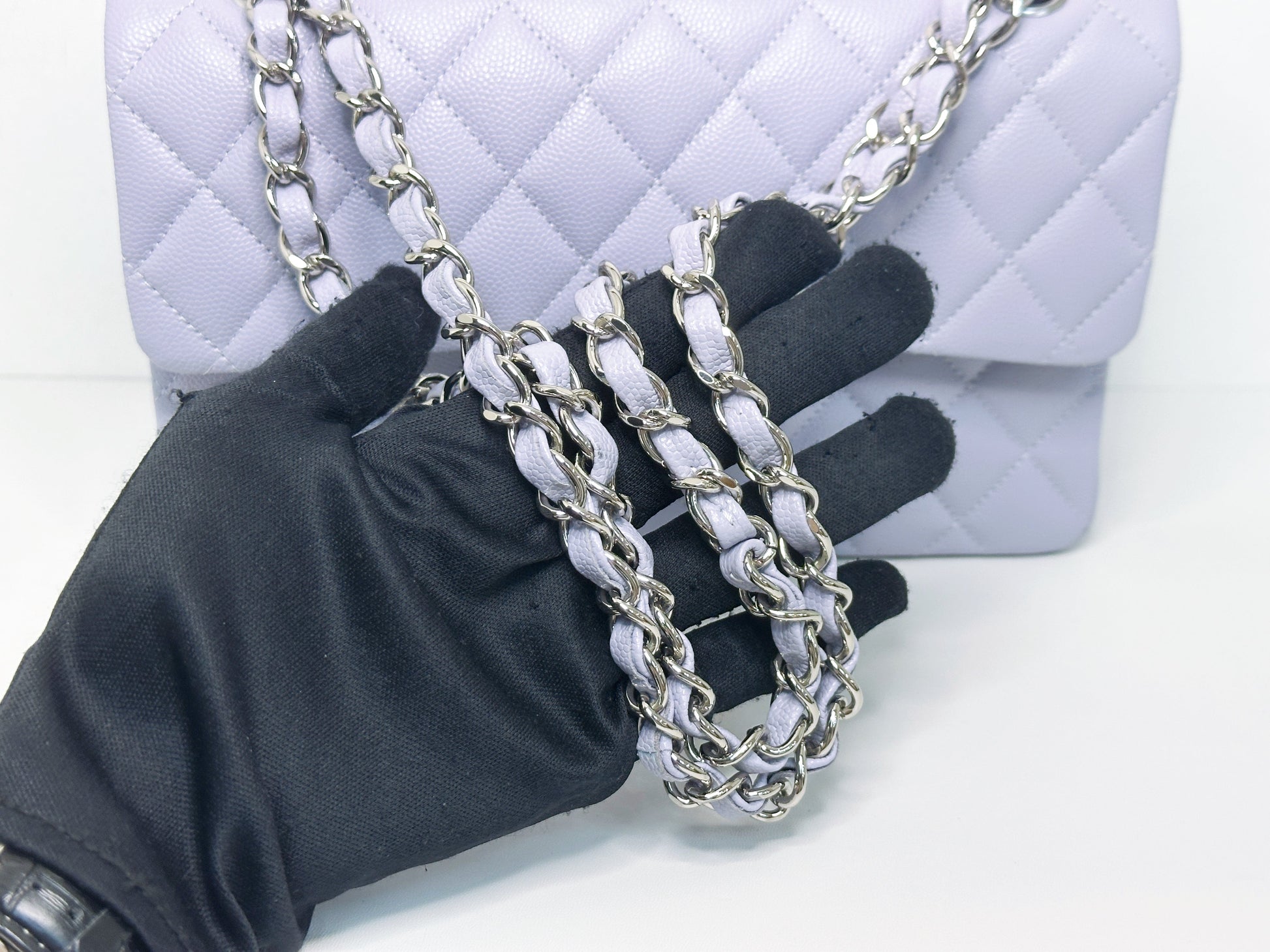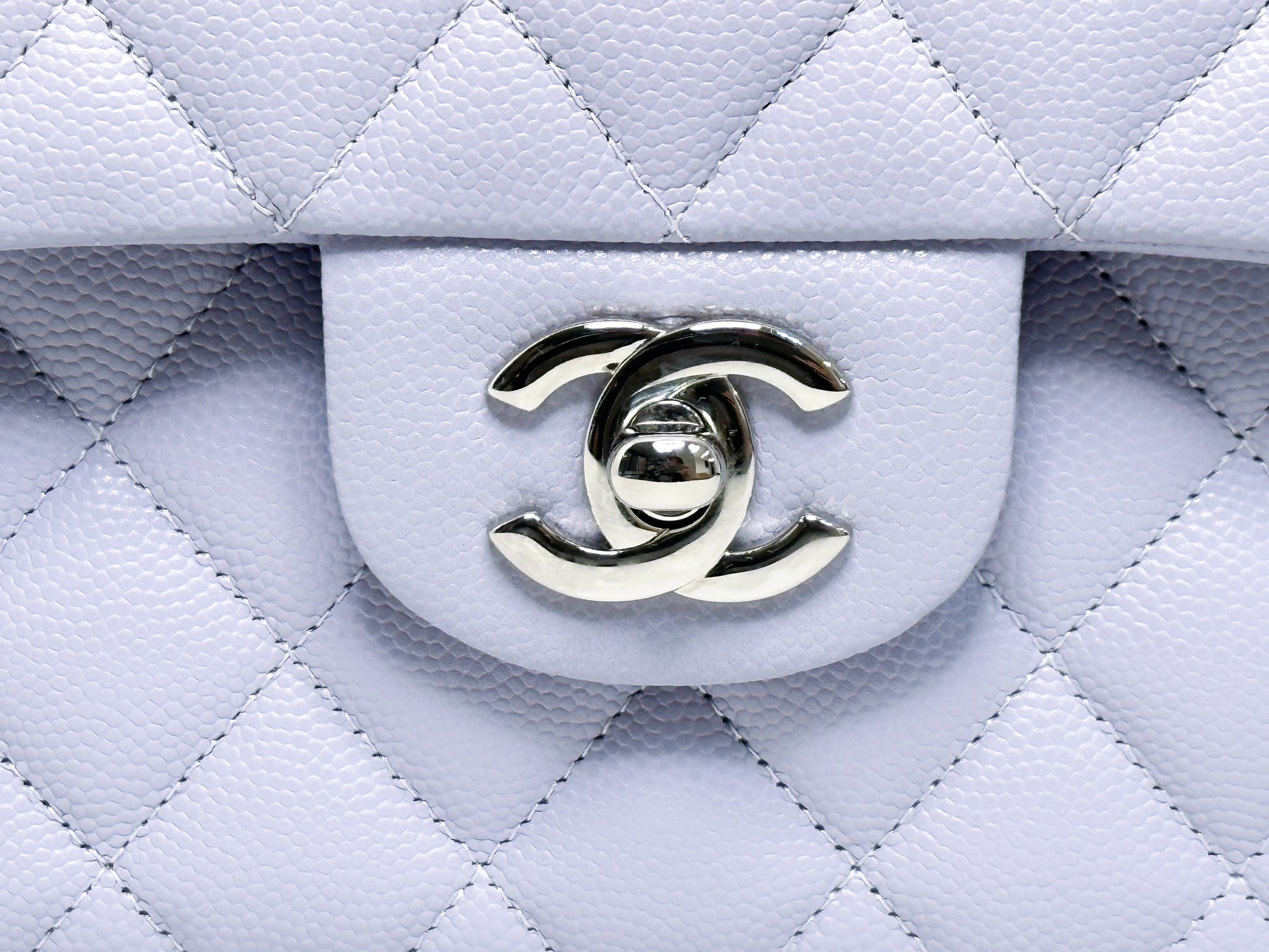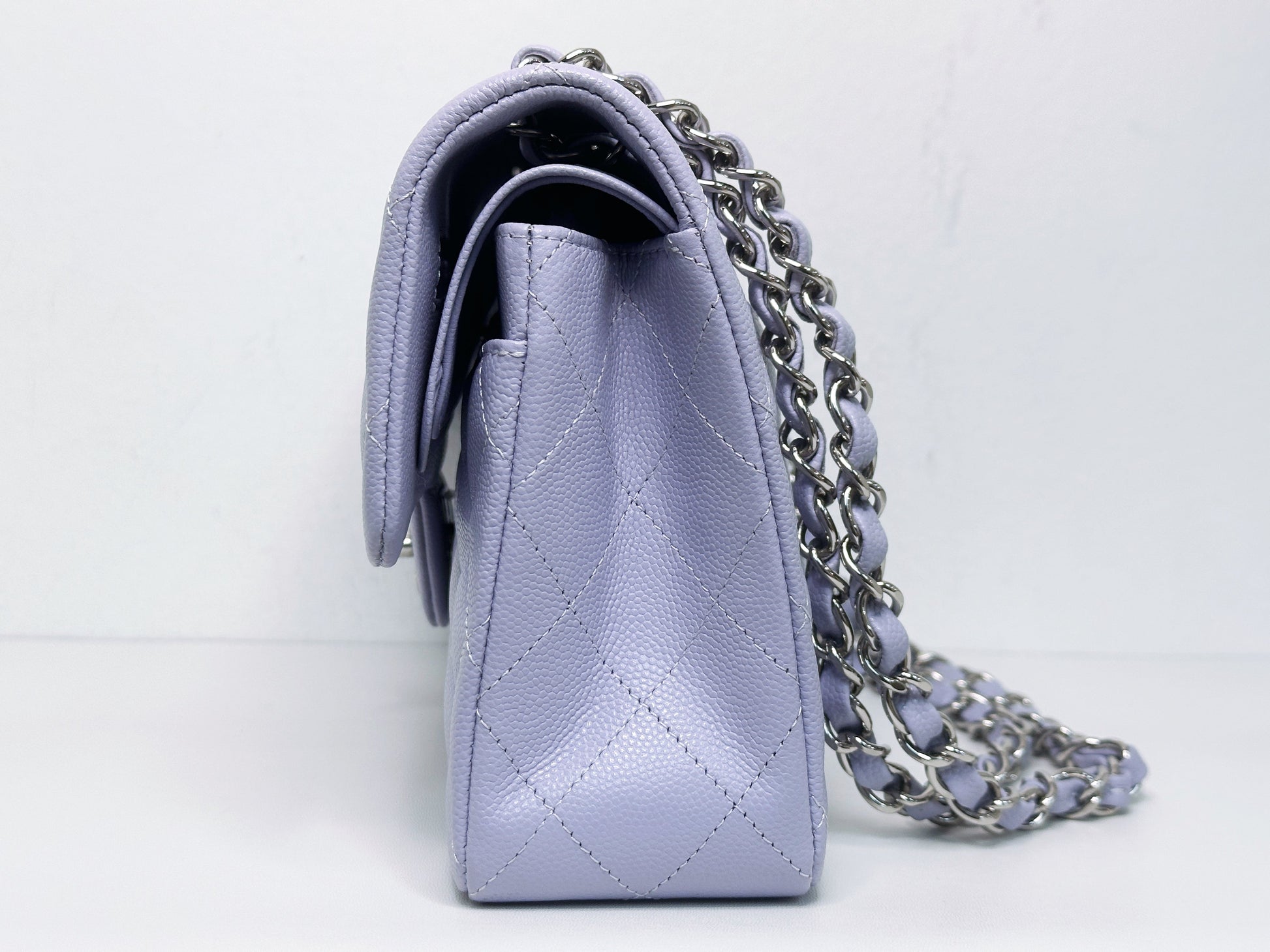Chanel Small Caviar Quilted Double Flap Lavender 21K SHW UEAA microchip