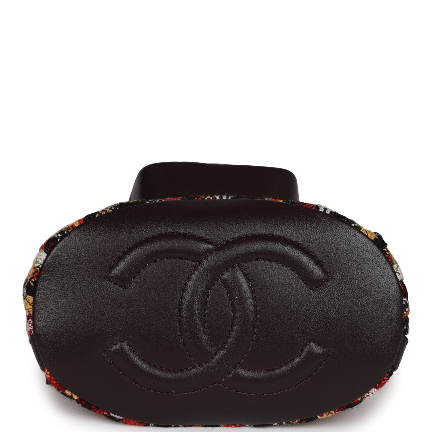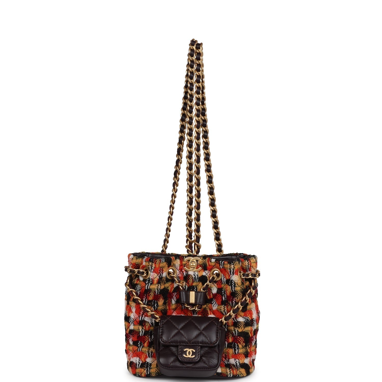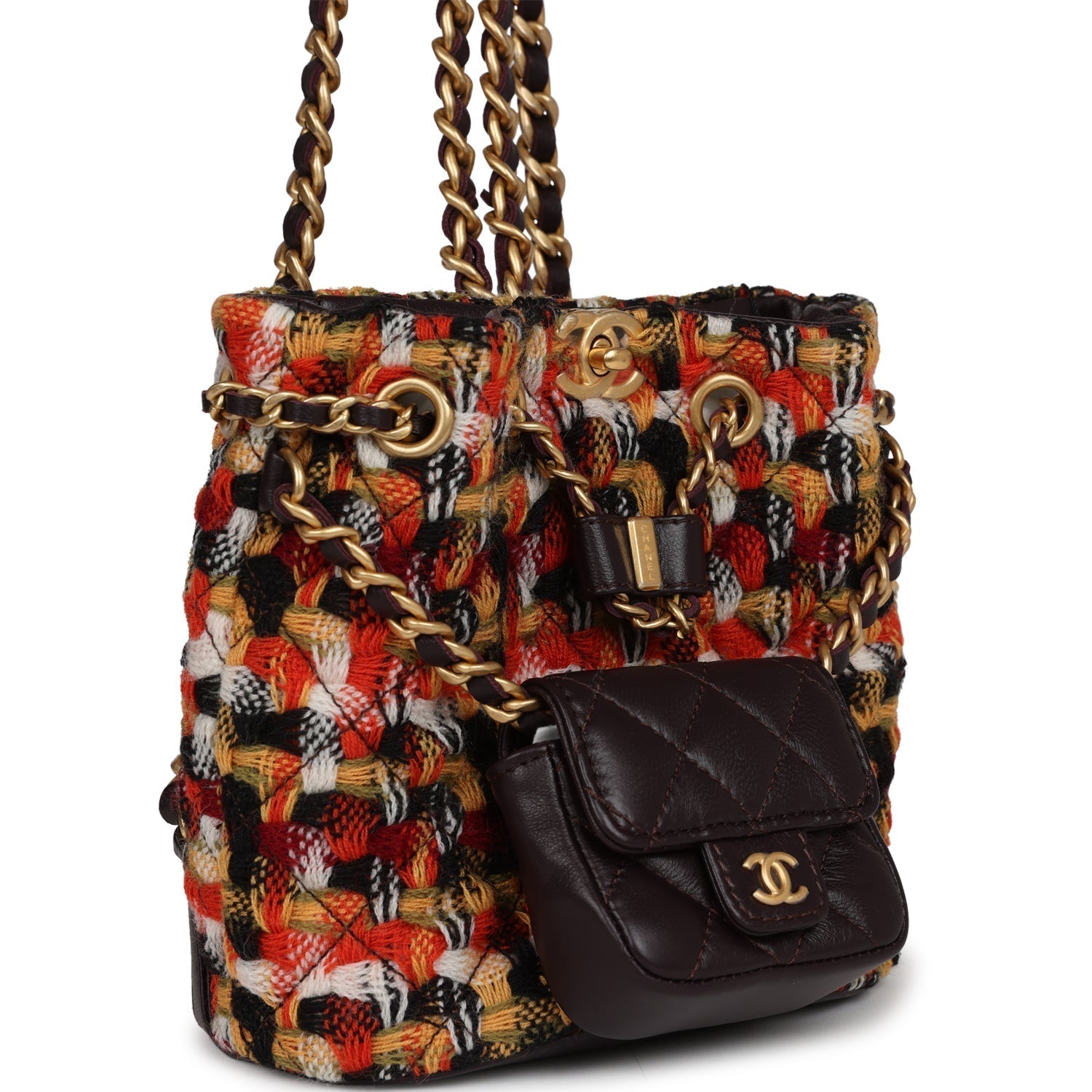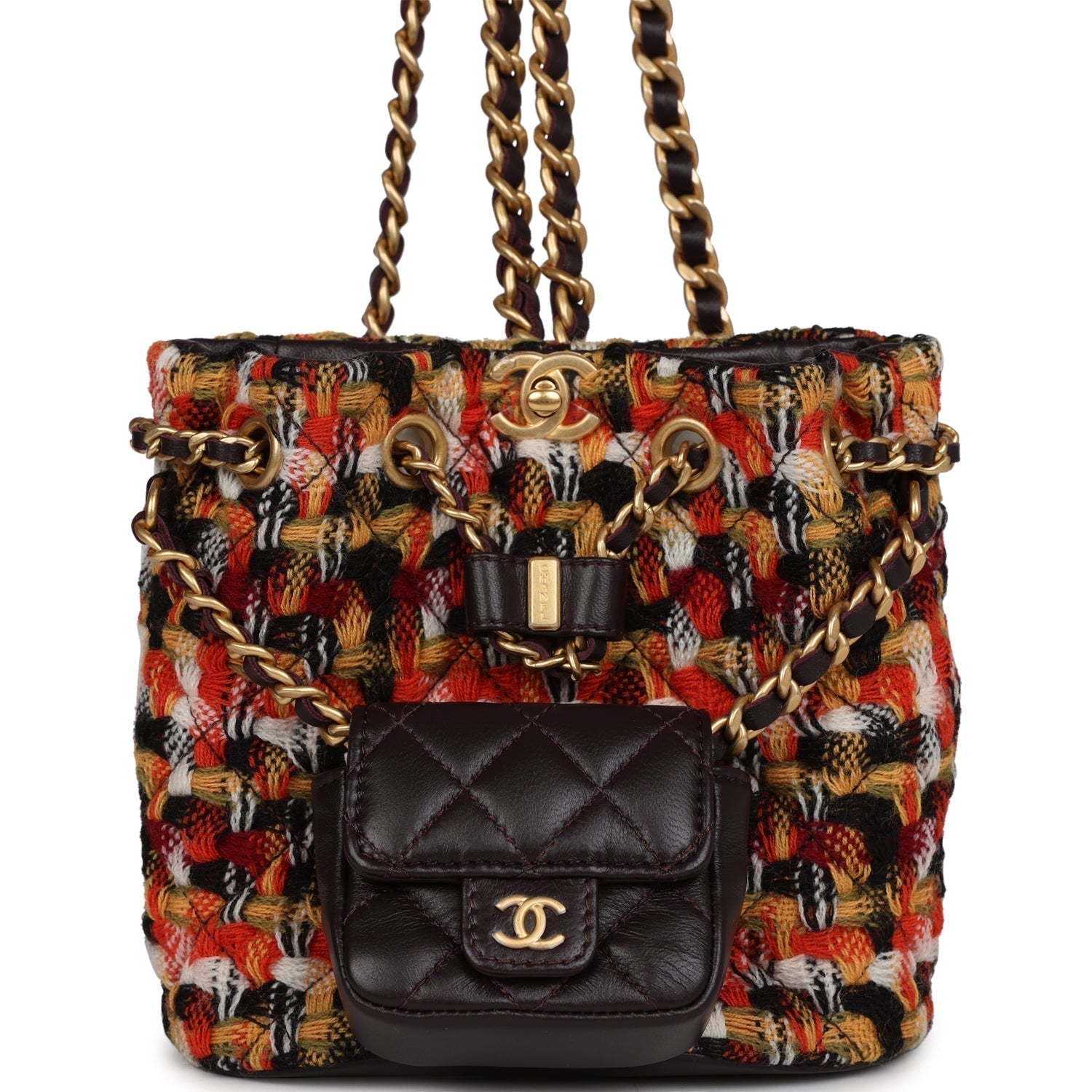 Chanel Small Drawstring Backpack Multicolored Tweed Antique Gold Hardware