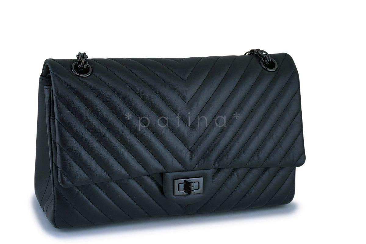Chanel So Black 226 Medium Chevron Reissue 2.55 Classic Double Flap Bag