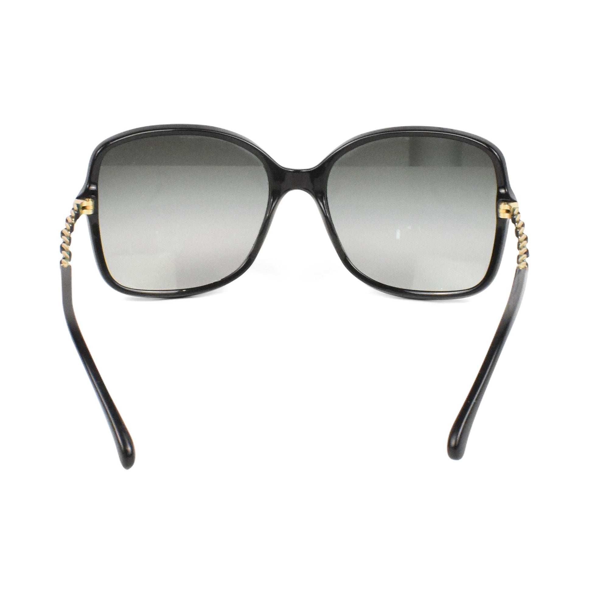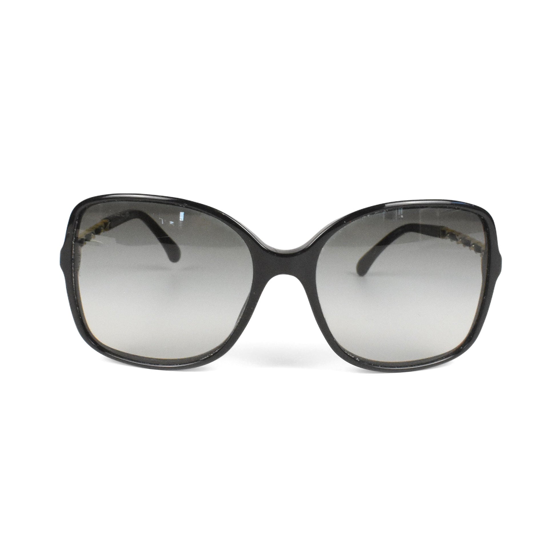 Chanel oversized sunglasses in black acetate with large square lenses and a signature chain link detail on the arms in gold hardware.