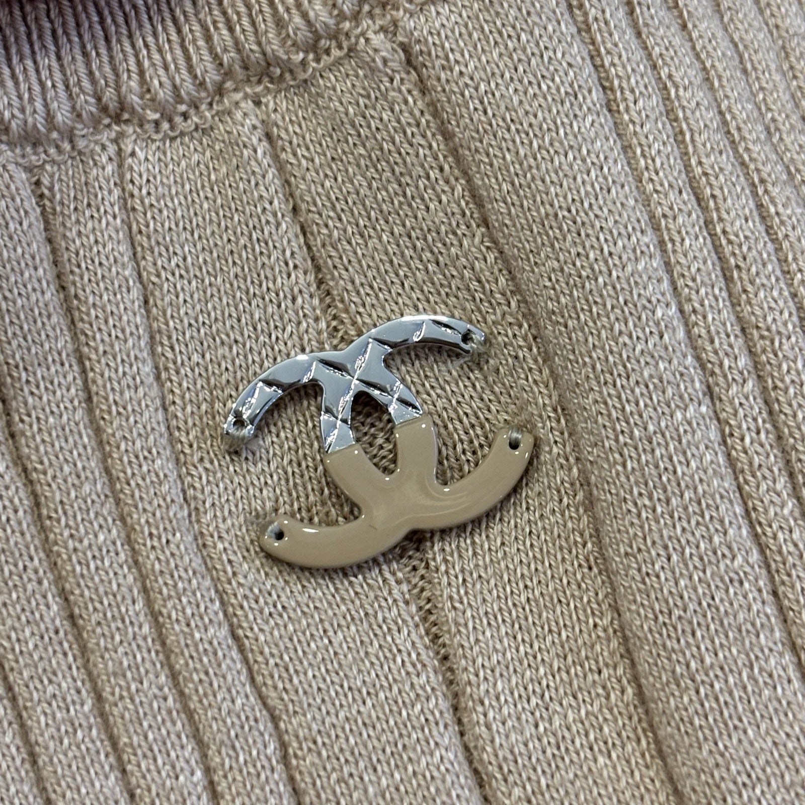 Chanel 25P Tank Top with CC Logo in Dark Beige Cotton Sz 40