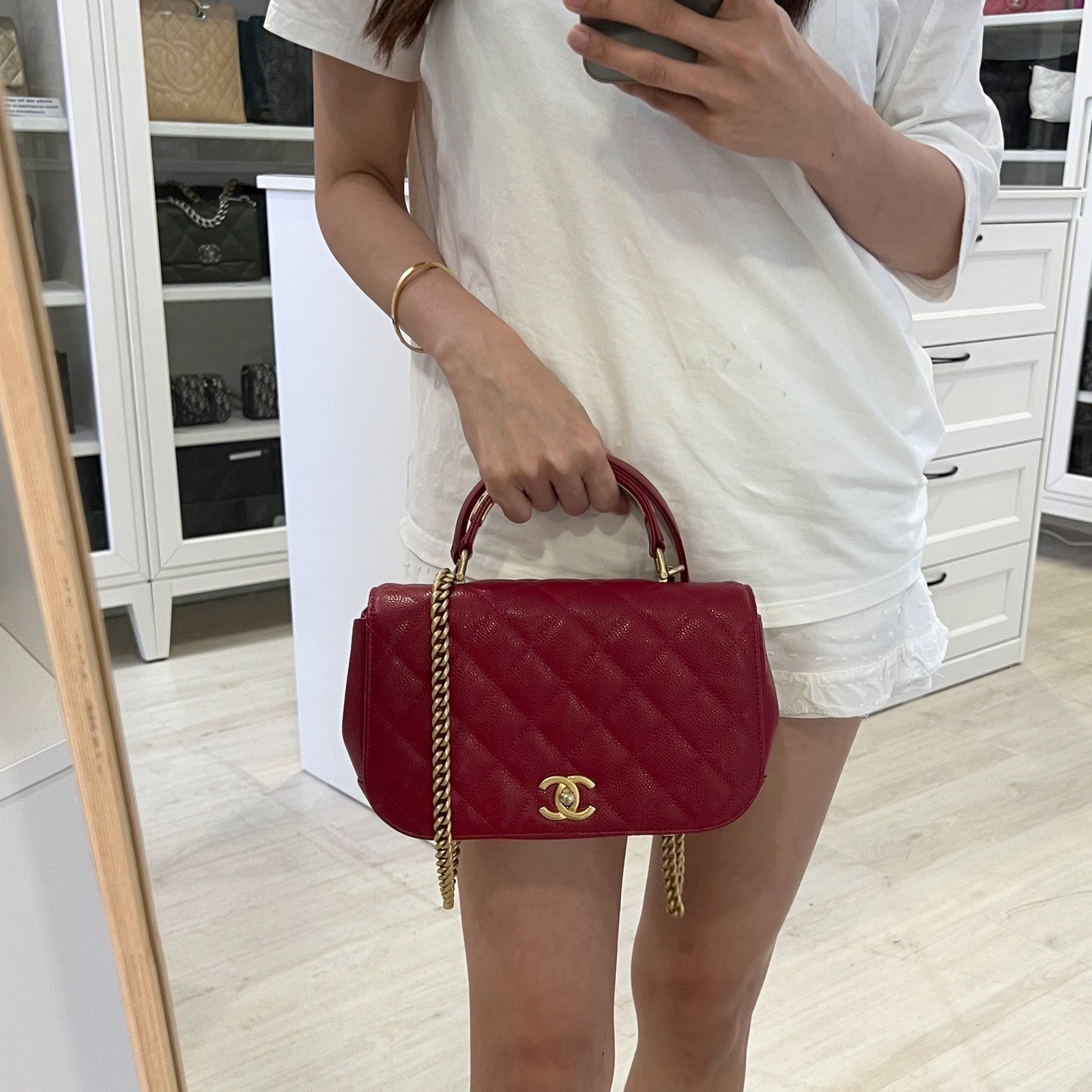 Chanel Top Handle Flap Bag in Raspberry Red Caviar AGHW